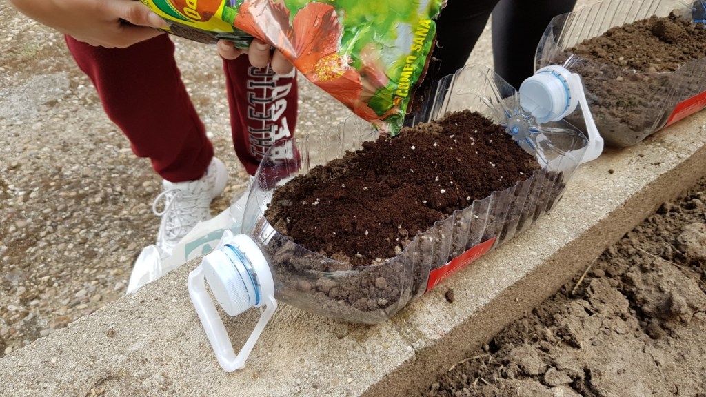 Otro grupo de alumnos recolectamos y plantamos algunas flores para atraer a los insectos, especialmente a las mariposas. Conseguimos todos los materiales necesarios para poder realizarlo como tierra, semillas de flores y macetas recicladas.