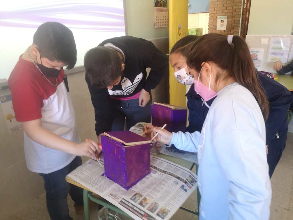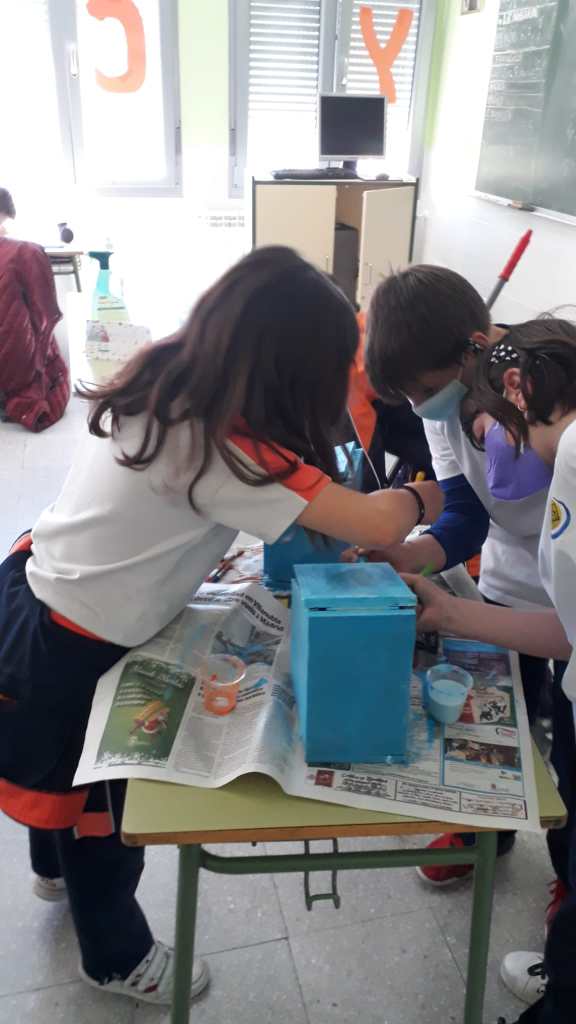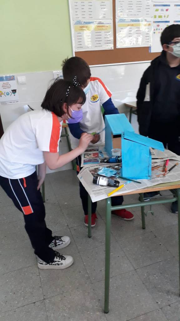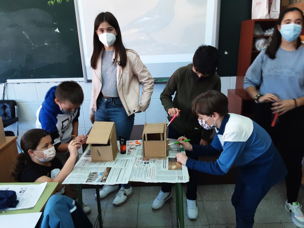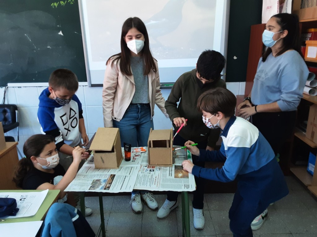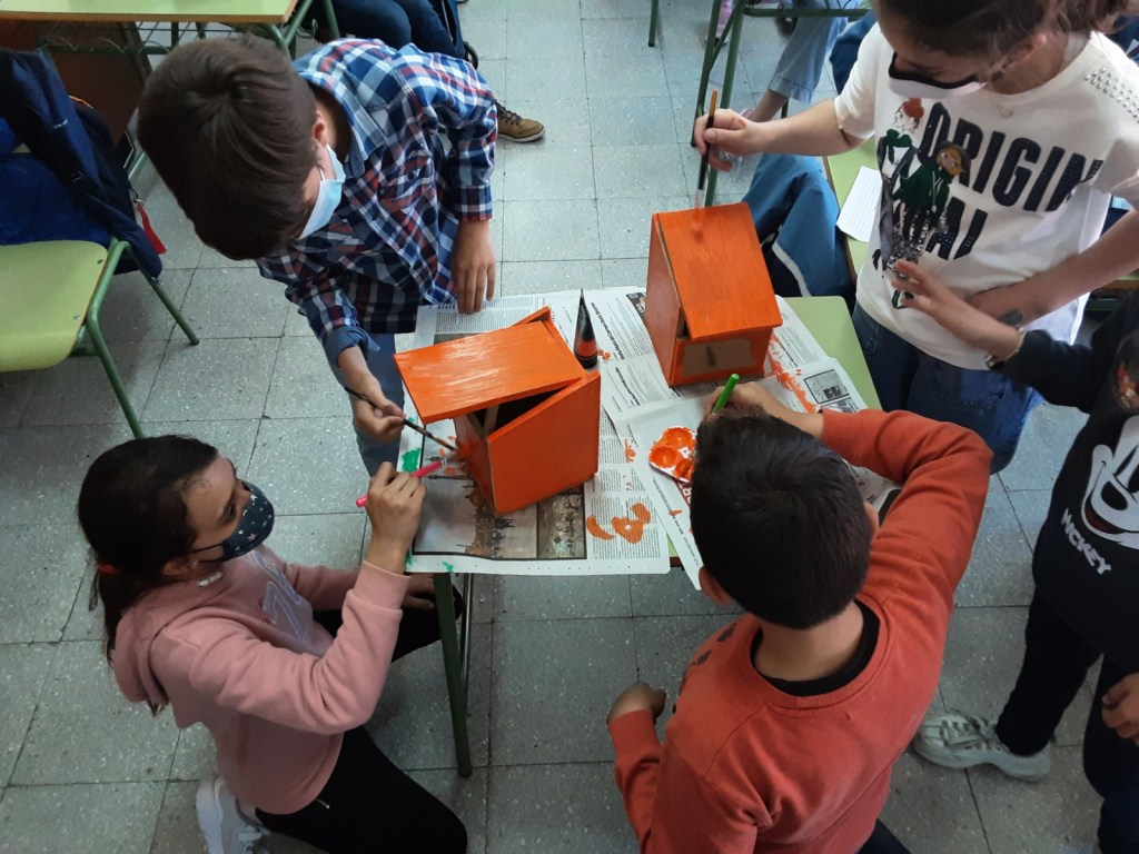 Los alumnos acudieron con las pajareras a Educación Primaria para informar de este problema ambiental a los más pequeños permitiendo que las decorasen a su gusto.