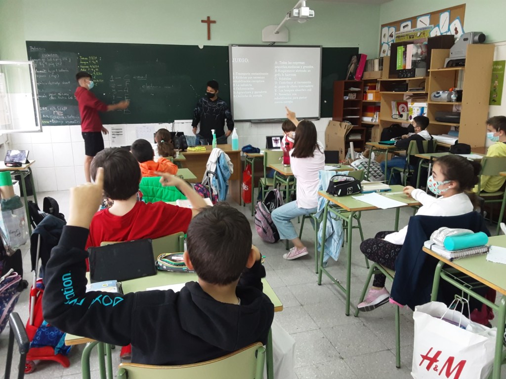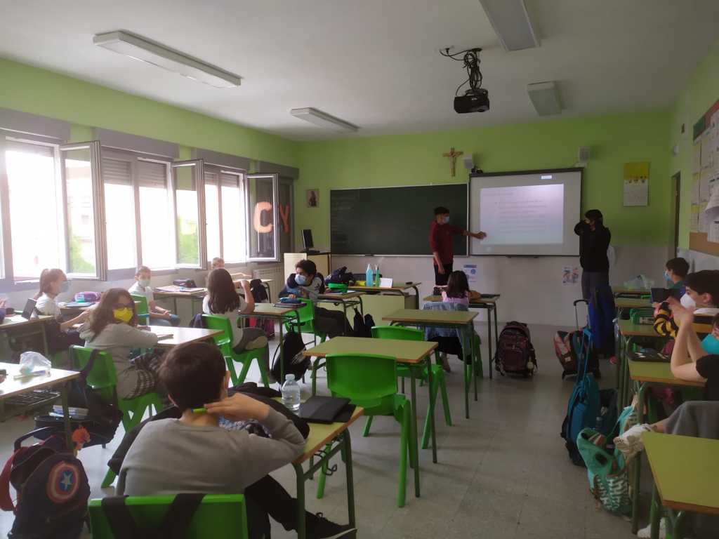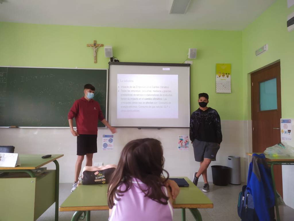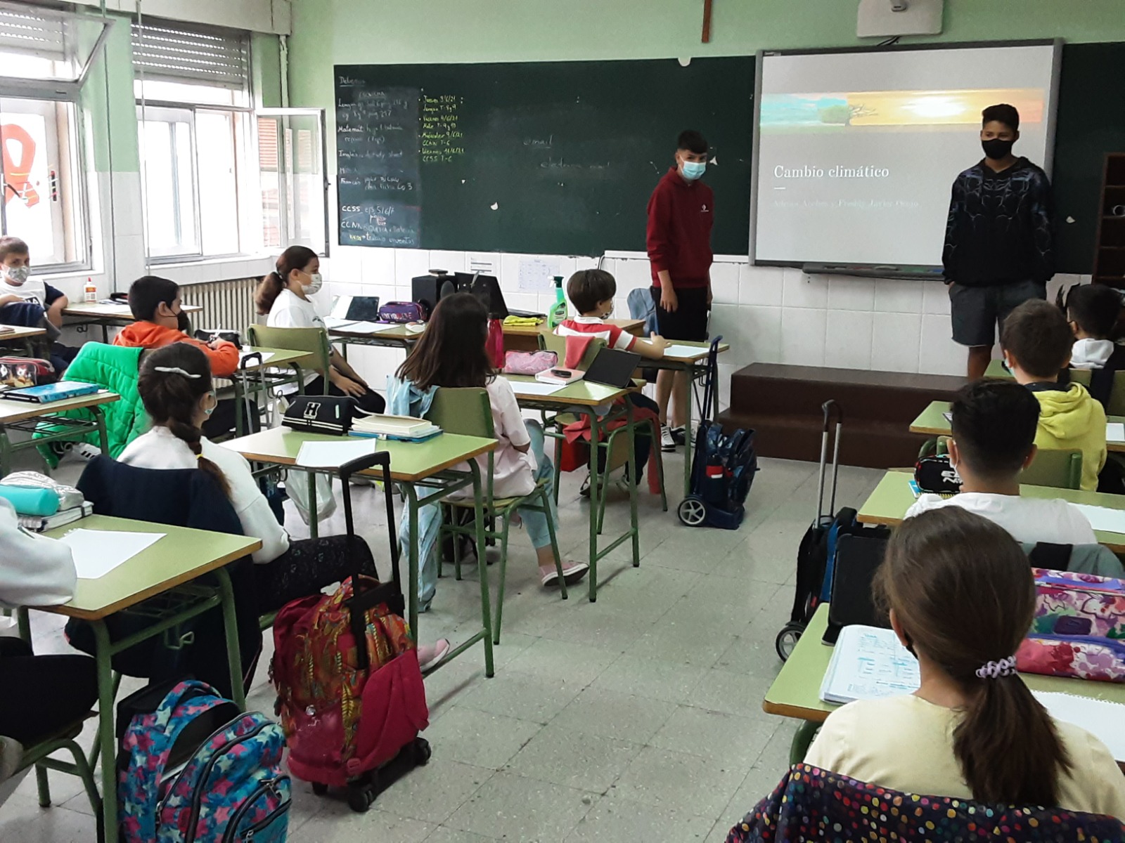 Alumnos de 4º ESO también estuvieron dando charlas a los alumnos de Educación Primaria sobre el Cambio Climático. Con los conceptos aprendidos en clase de Cultura Científica intentaron concienciar a los niños pequeños para que se vayan dando cuenta de las graves causas que pueden suceder sino cuidan y cuidamos nuestro entorno. La charla ha estado adaptada a cada uno de los niveles educativos.