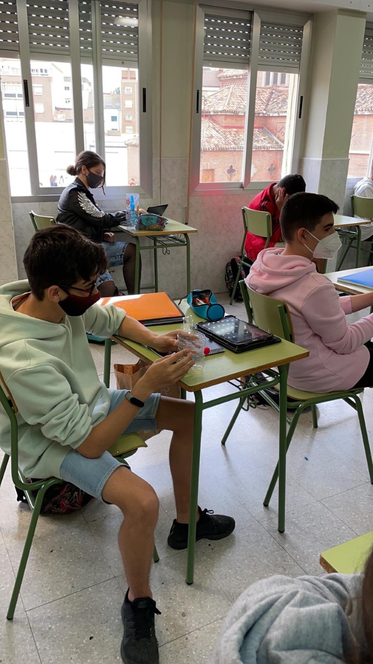 Los alumnos con varios profesores han bajado a ver la exposición reflexionando sobre nuestros hábitos de consumo u como estos impactan en el medioambiente.
