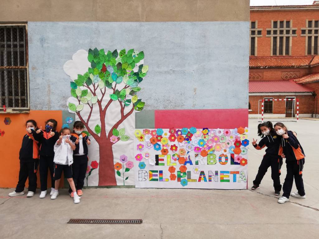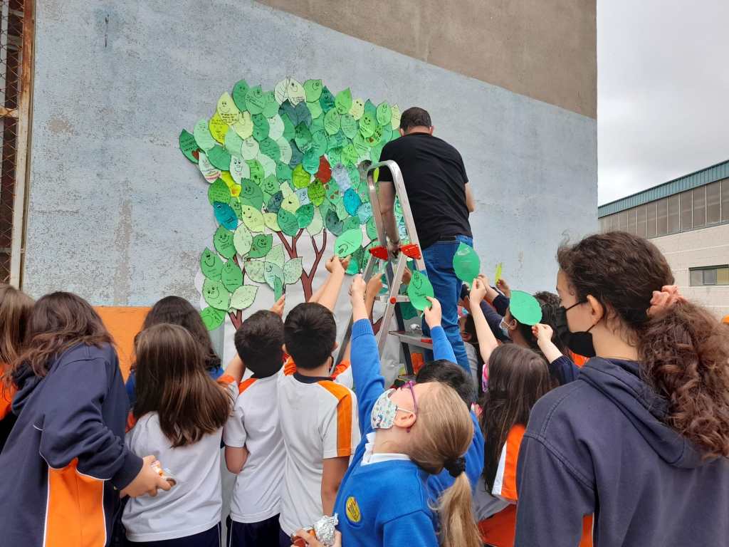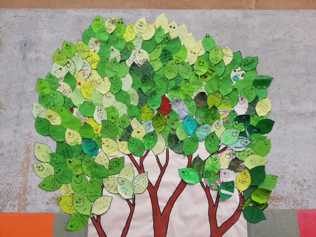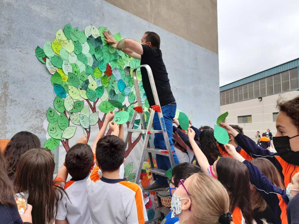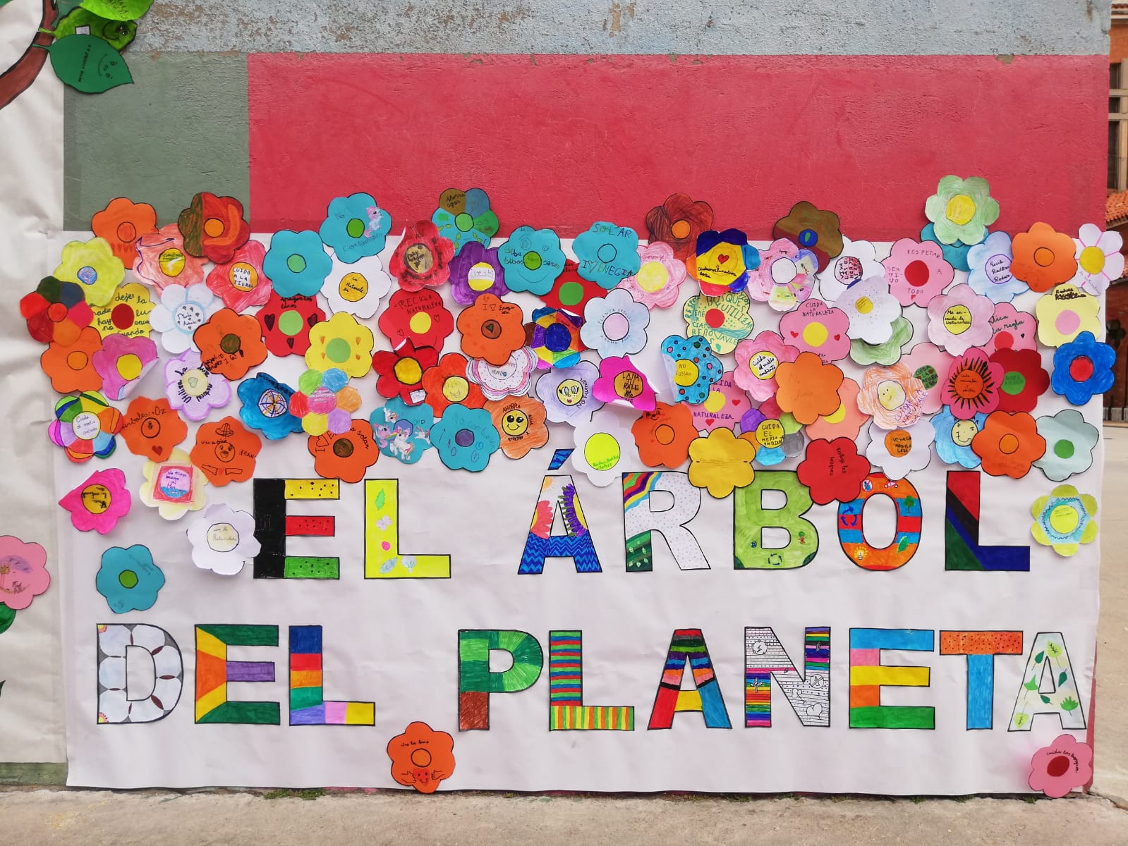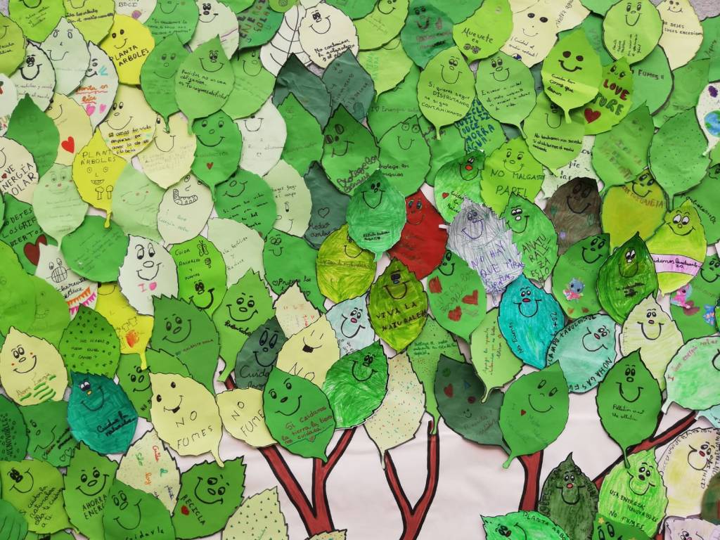 Hemos decorado un gran mural con el dibujo del tronco de un árbol y sus ramas. Los alumnos/as de Educación Infantil y Primaria han colocado en ese árbol los elementos que faltaban para completar el dibujo, las hojas y las flores. Todas las hojas y flores han incluido un mensaje, deseo, frase o dibujo que hace referencia a la conservación del medio ambiente, la naturaleza y en general del Planeta. Las hojas se han realizado en hojas o cartulinas de color verde. Las flores en cualquier color. Cada tutor en su clase, han preparado la actividad con los niños/as en el aula. Se han pegado las hojas en el mural cuando los niños han bajado al recreo, de manera que el árbol ha quedado cubierto de hojas y flores con nuestros mejores deseos medioambientales.