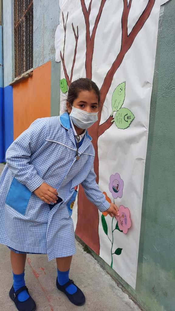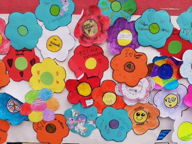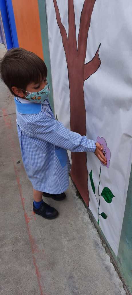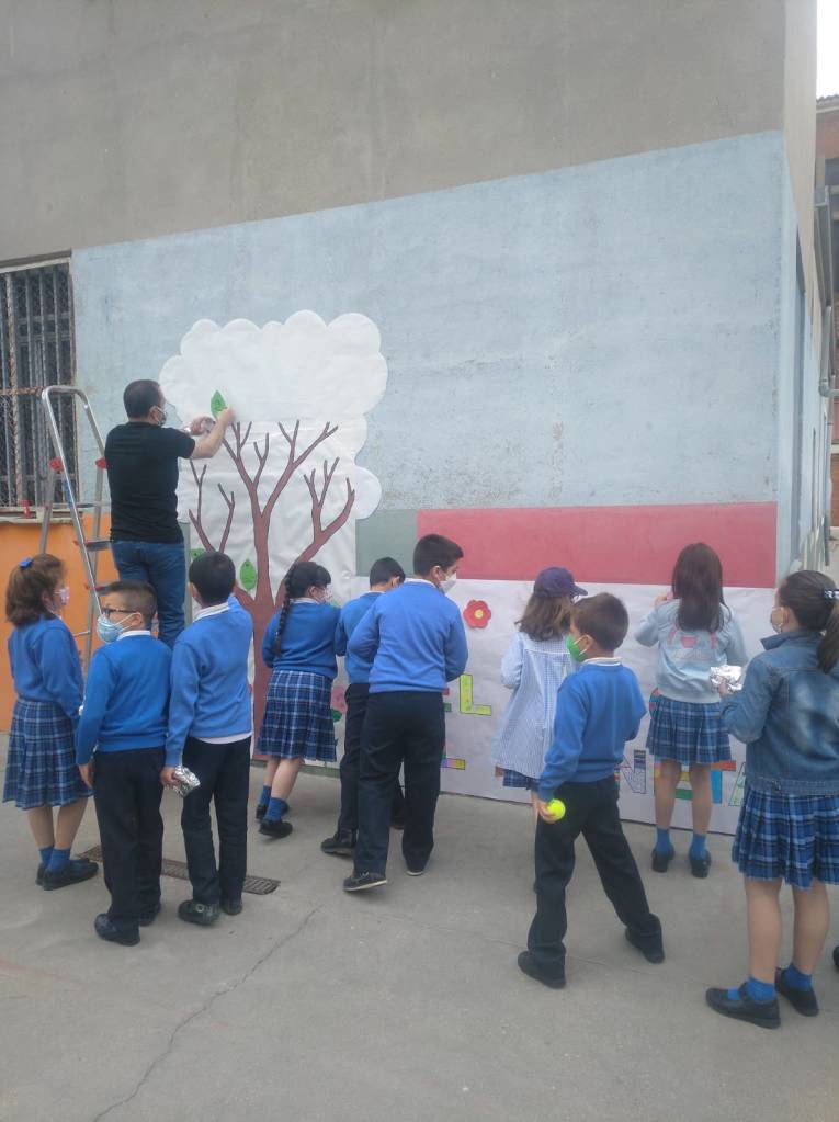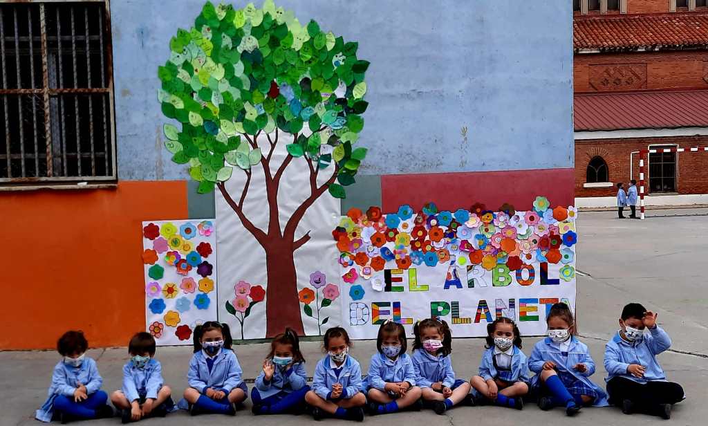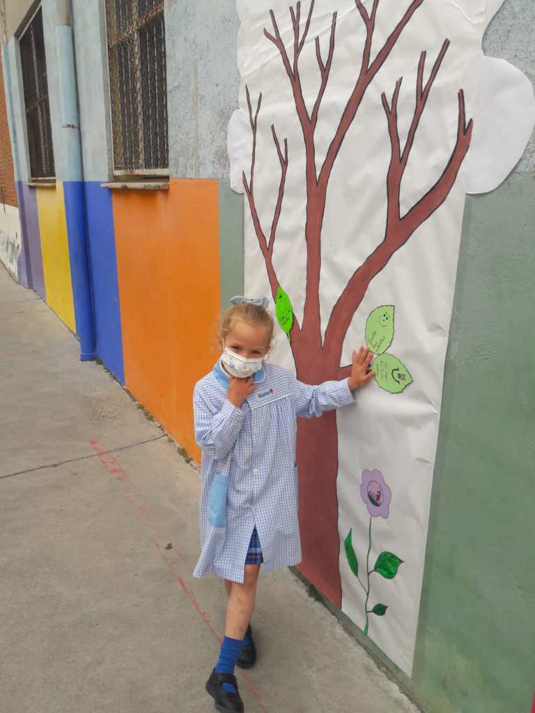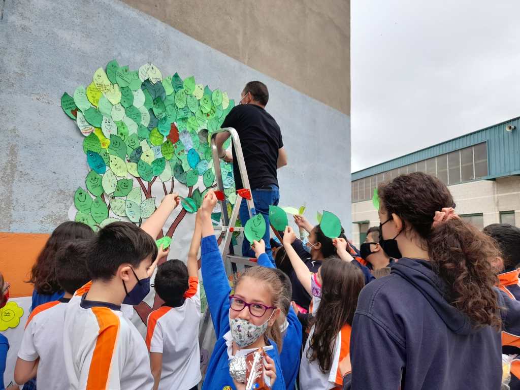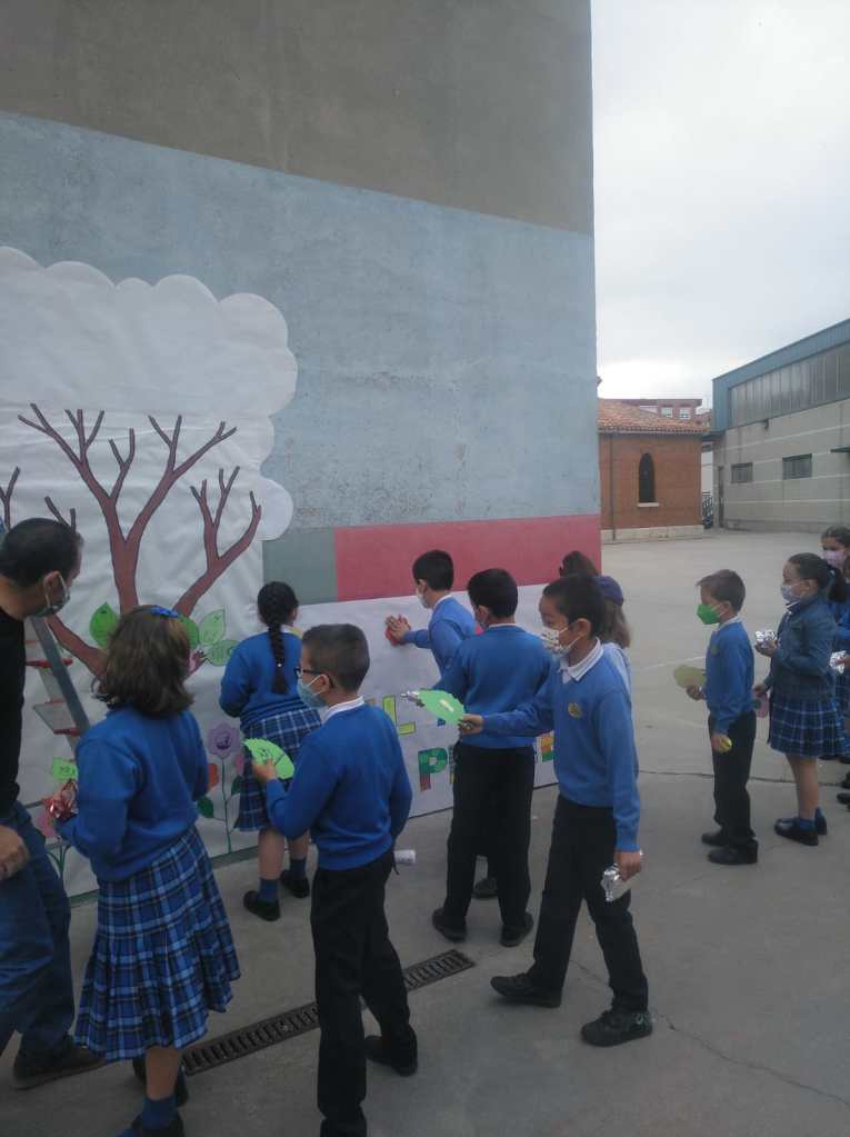 Hemos decorado un gran mural con el dibujo del tronco de un árbol y sus ramas. Los alumnos/as de Educación Infantil y Primaria han colocado en ese árbol los elementos que faltaban para completar el dibujo, las hojas y las flores. Todas las hojas y flores han incluido un mensaje, deseo, frase o dibujo que hace referencia a la conservación del medio ambiente, la naturaleza y en general del Planeta. Las hojas se han realizado en hojas o cartulinas de color verde. Las flores en cualquier color. Cada tutor en su clase, han preparado la actividad con los niños/as en el aula. Se han pegado las hojas en el mural cuando los niños han bajado al recreo, de manera que el árbol ha quedado cubierto de hojas y flores con nuestros mejores deseos medioambientales.