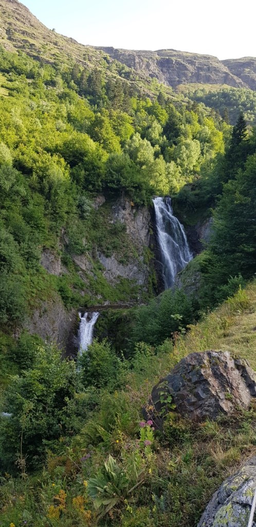 Después de ver la cascada comenzamos a andar por una senda a media ladera dejando el rio a nuestra derecha. El camino es muy corto y sencillo y nos llevará a otro salto agua de menor tamaño.