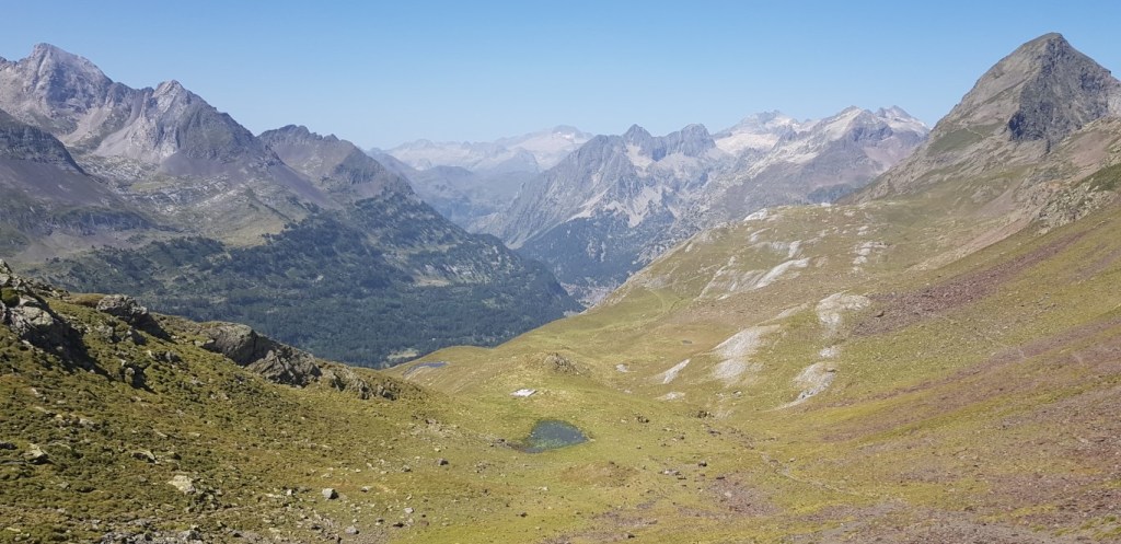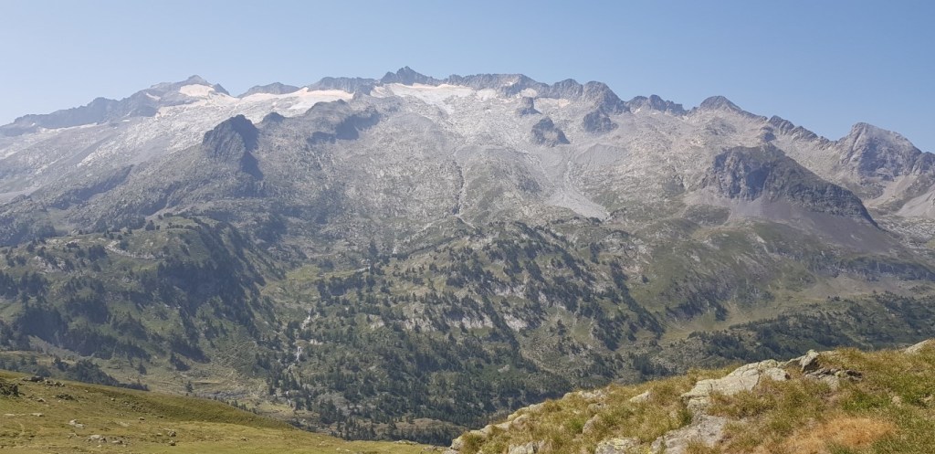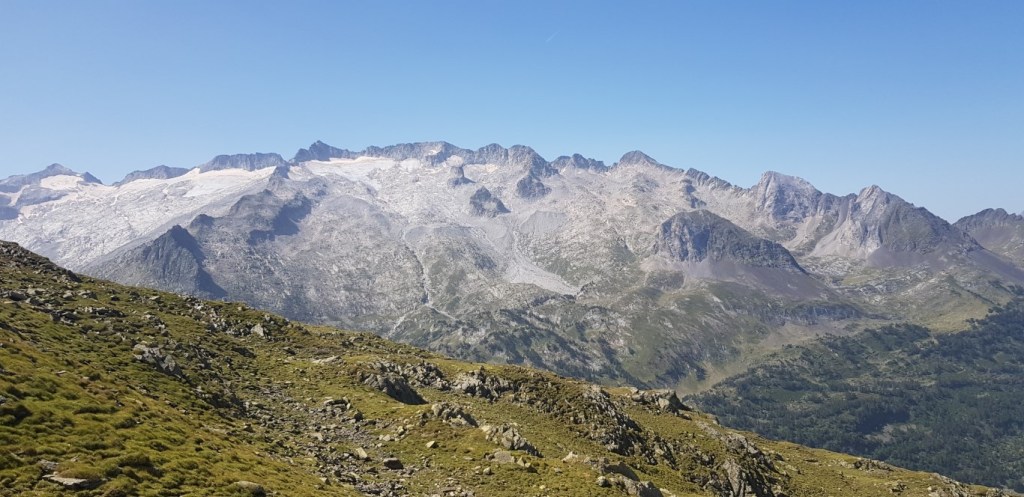 Desde arriba las vistas del Valle de Benasque y el Macizo de la Malaqueta, con el espectacular Pico Aneto, además de numerosas cimas alrededor son indescriptibles. Todo lo sufrido en la subida se compensa con creces en este lugar.