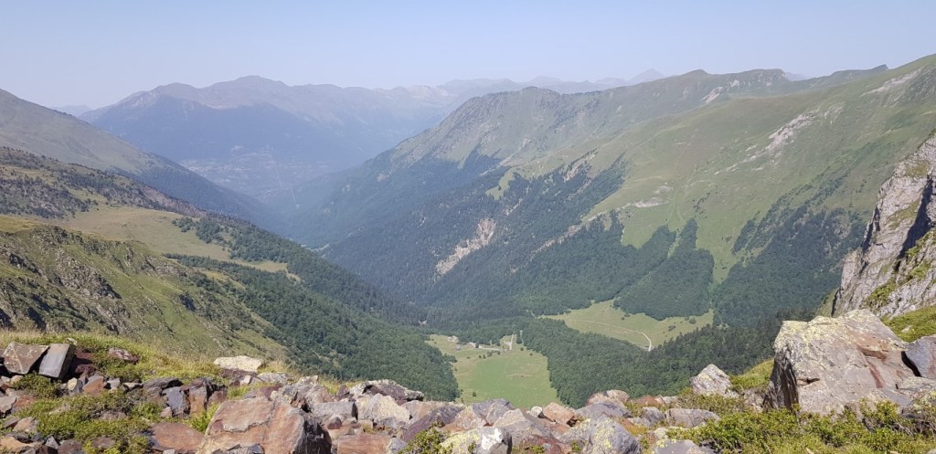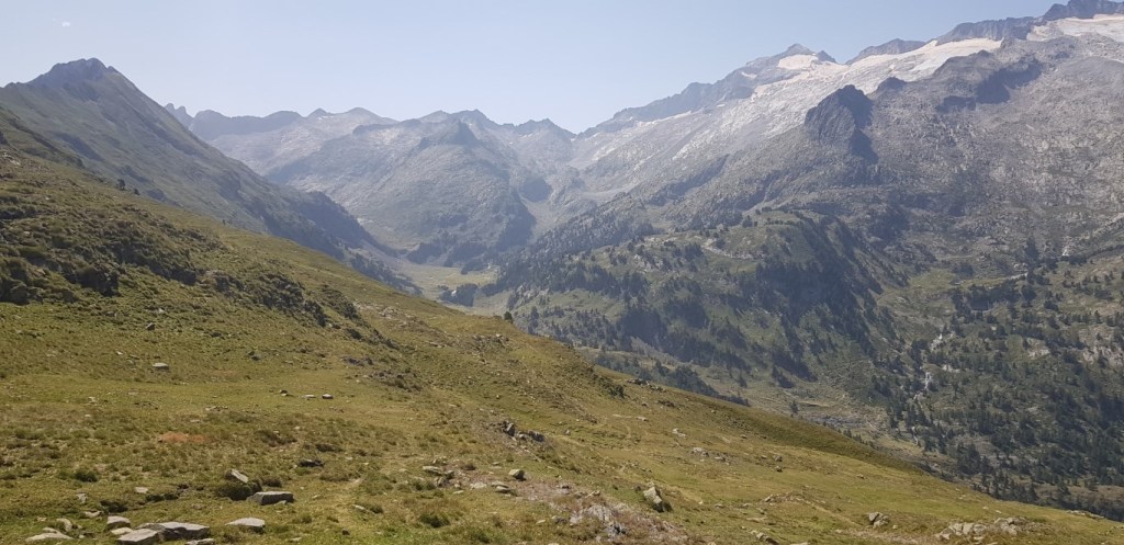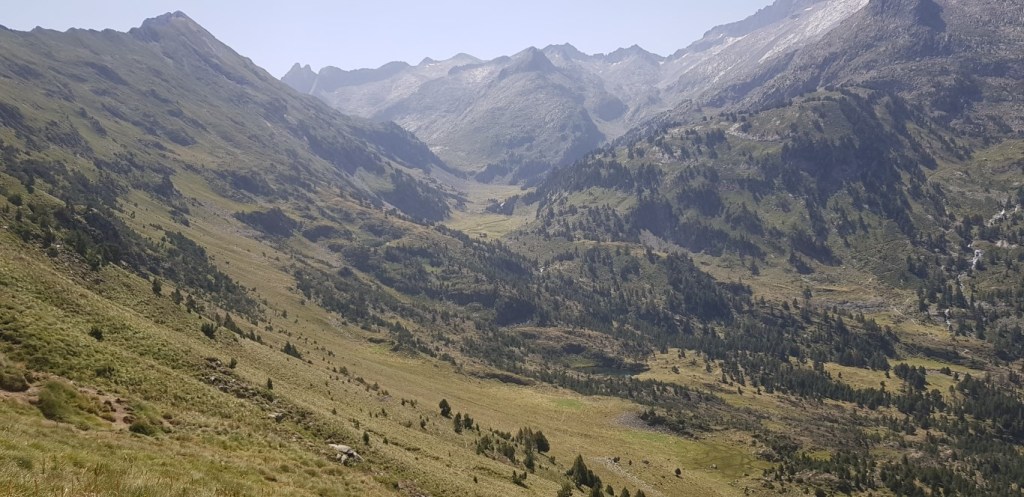 A medida que ascendemos, la vegetación va desapareciendo. Cuando llegamos a la cima podemos contemplar las diferencias evidentes entre la parte mediterránea del Valle de Benasque y la parte atlántica del Valle de Arán.