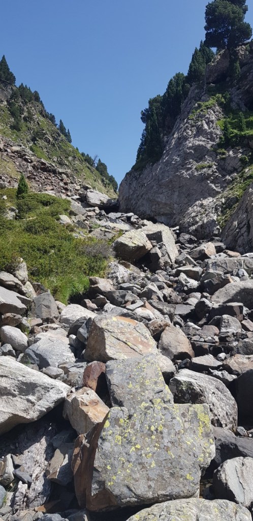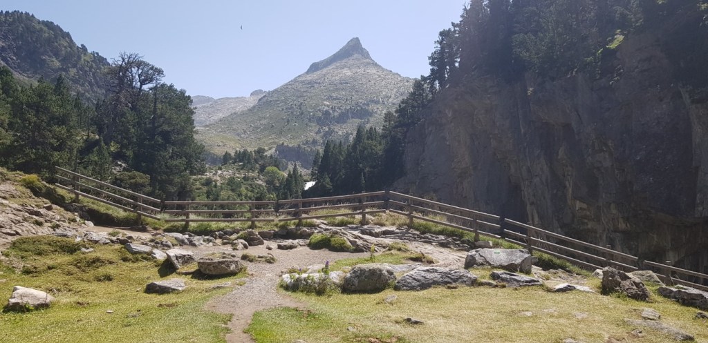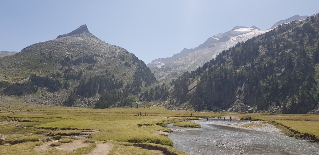 En este punto la cantidad de personas aumenta considerablemente para visitar el Forau de Aiguallut, lugar donde se produce la filtración de las aguas del glaciar del Macizo de Maladeta para aparecer más adelante con una impresionante cascada que veremos más tarde en Uelhs de Joeu.