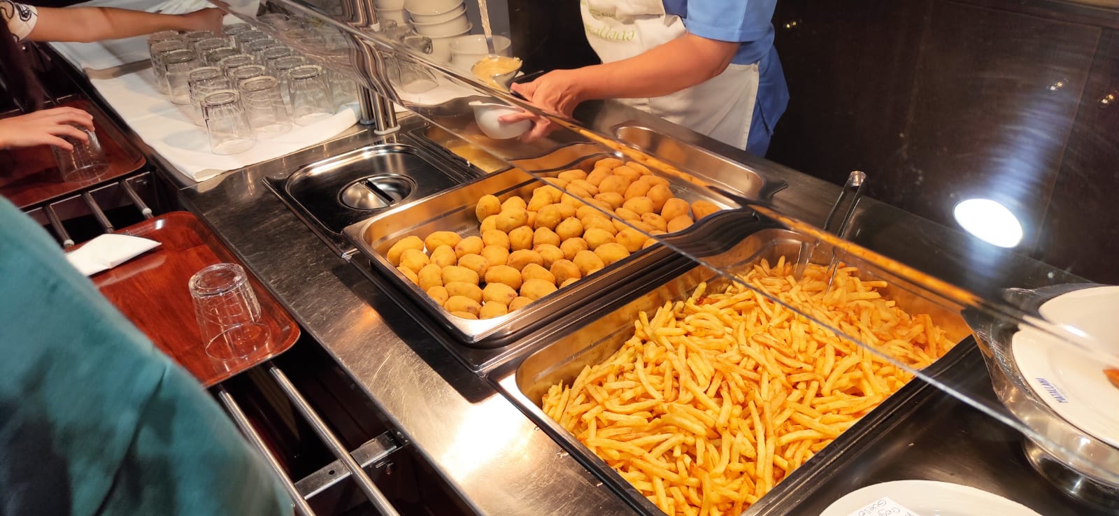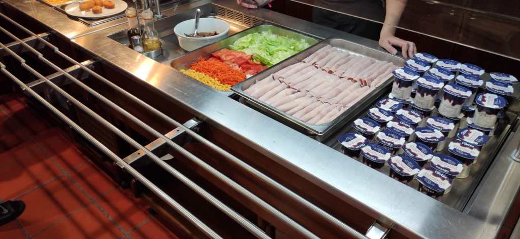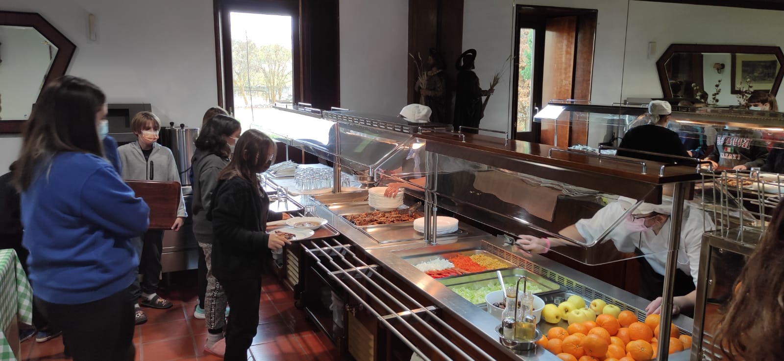 Una vez duchados procedemos a cenar: sopa, croquetas, patatas fritas o ensalada y yogur.