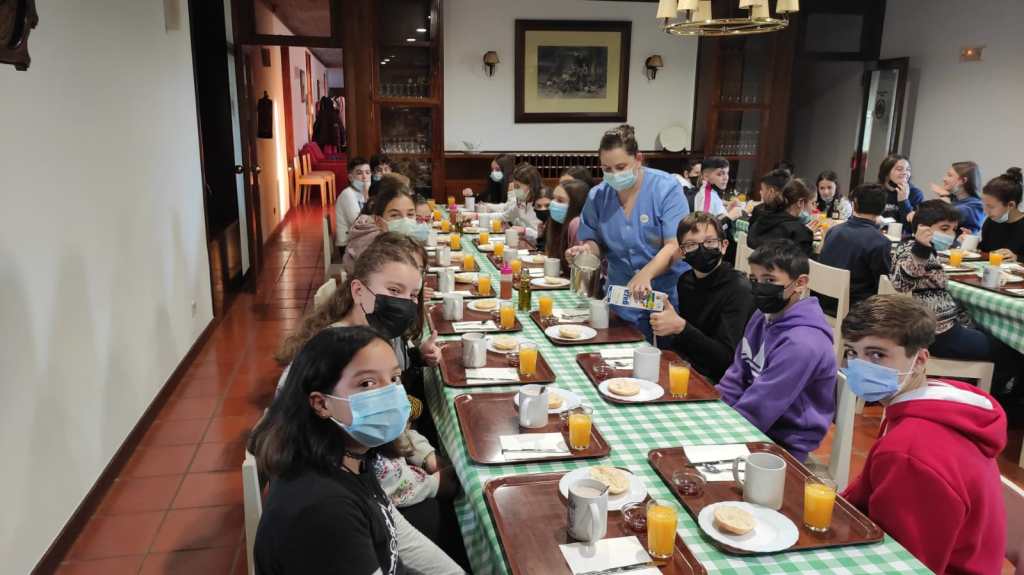 Continuamos en el centro de Interpretación de Matallana. Se acaban de levantar y comenzamos con una charla sobre alimentación saludable.