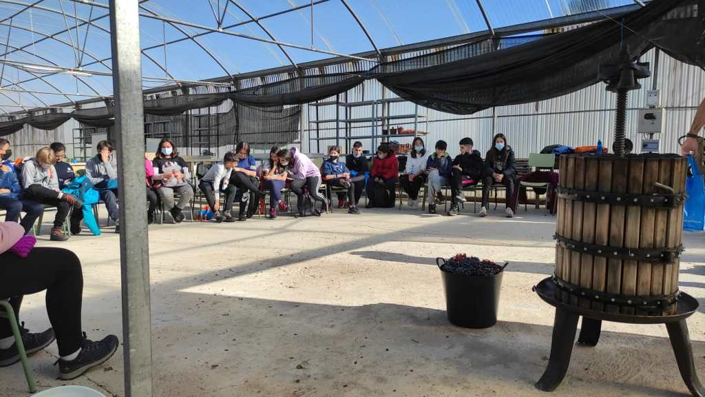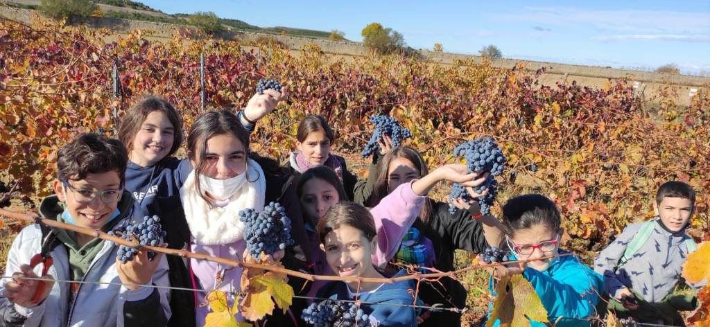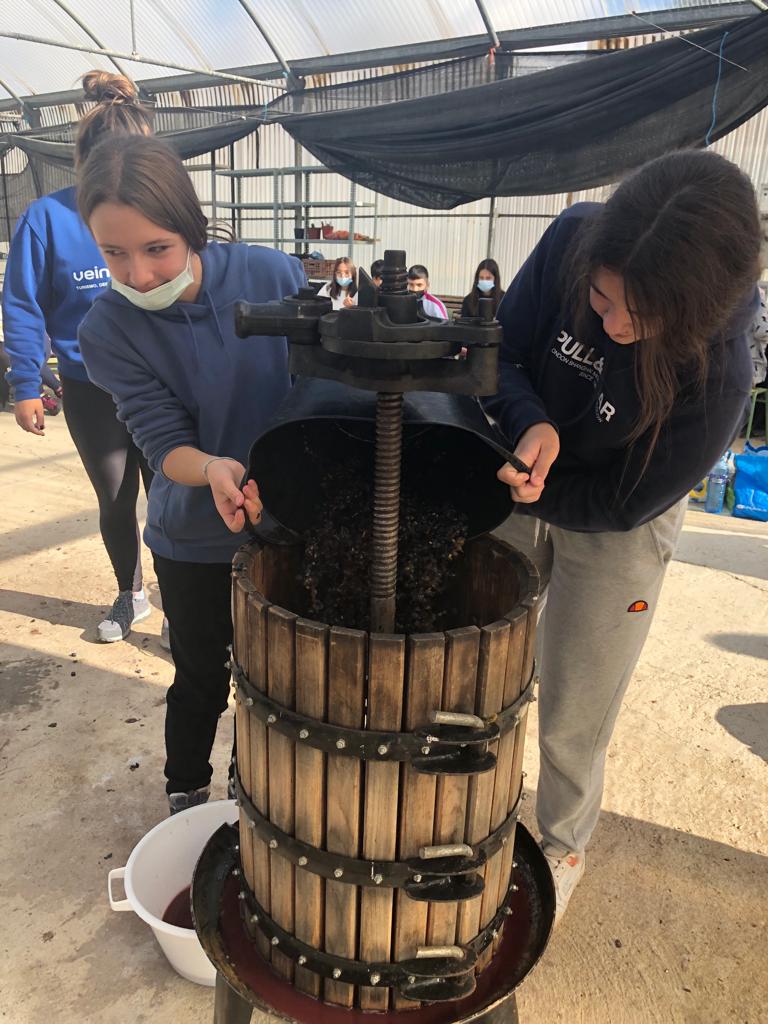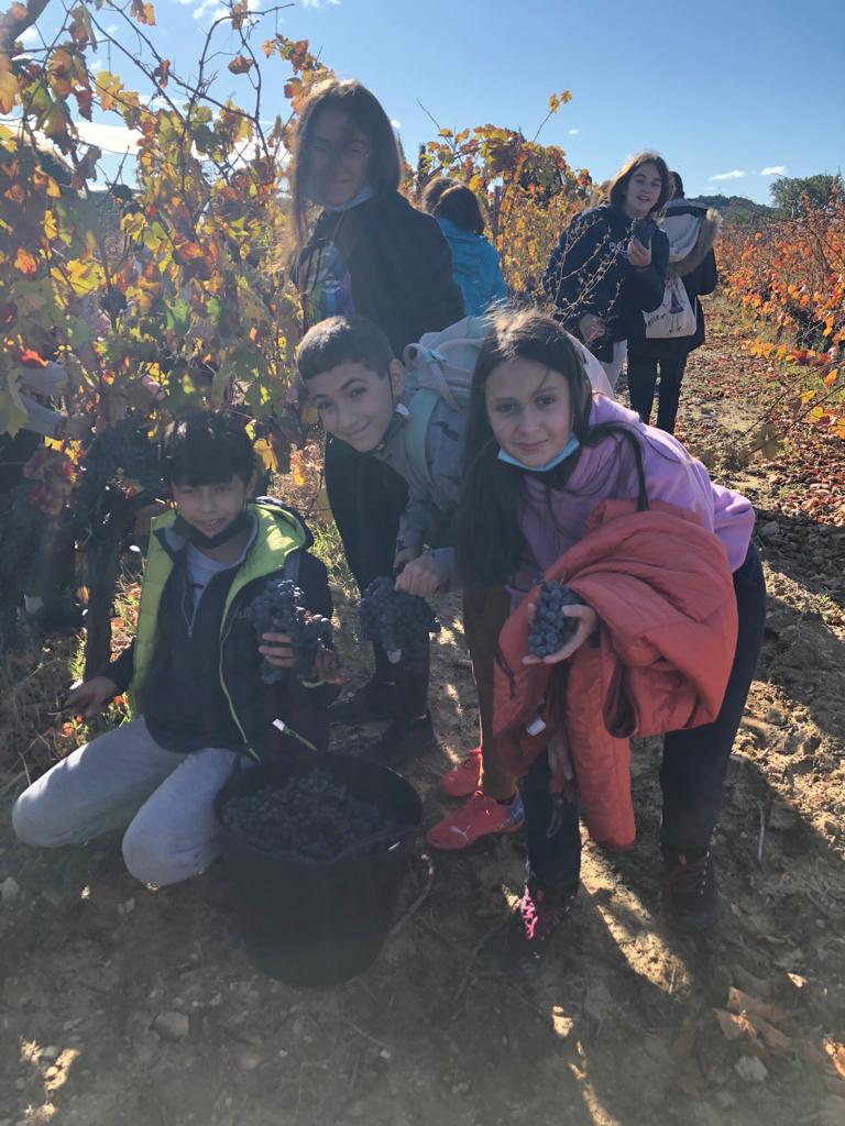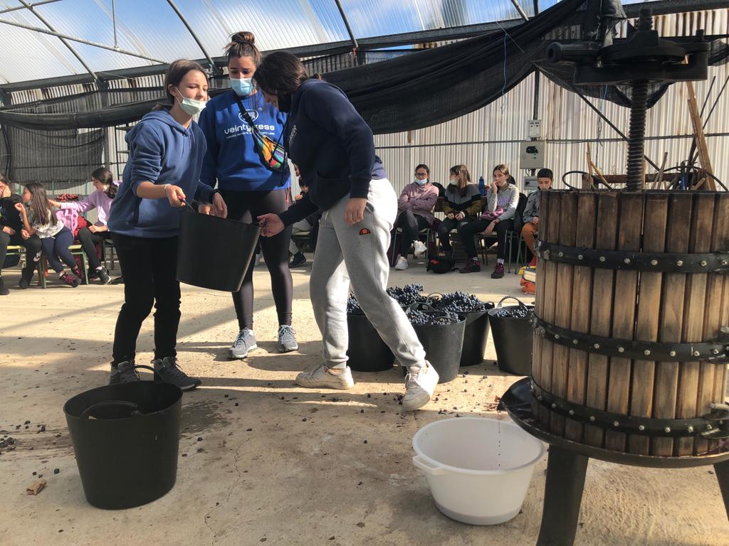 Se les da fenomenal la vendimia. Una vez recogidas las uvas aprendemos a hacer nuestro propio mosto. Ya va saliendo una buena cantidad de mosto. Los chicos lo están dando todo. Si ayer durmieron bien hoy van a caer rendidos. Cada día es como una semana.