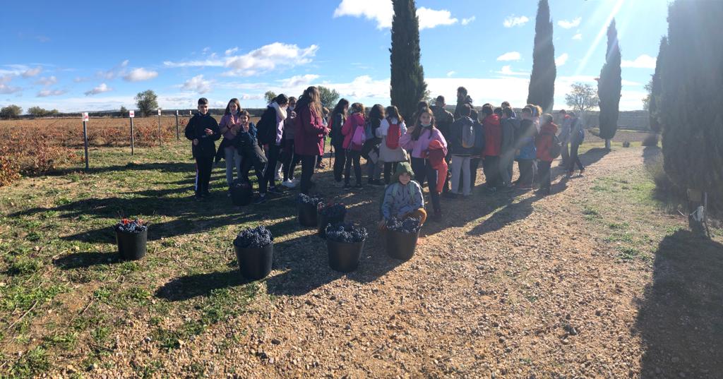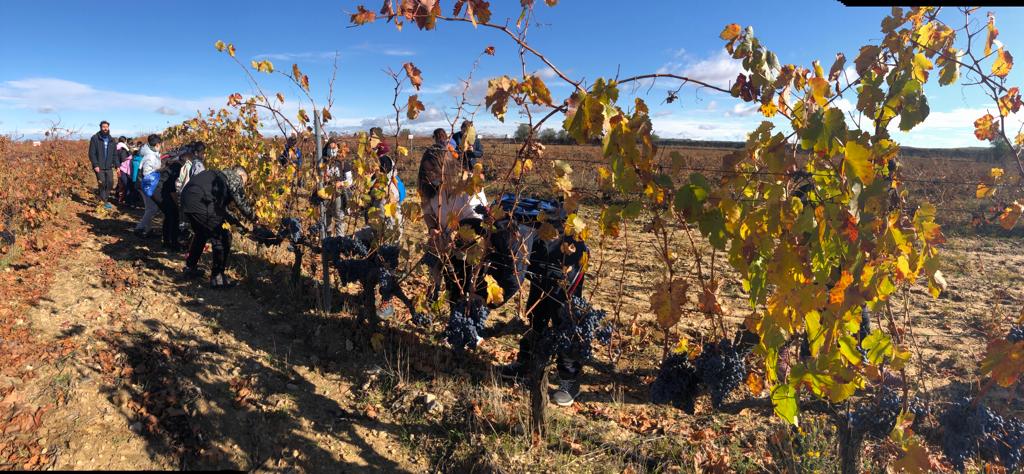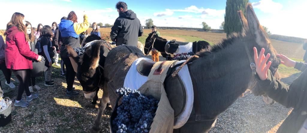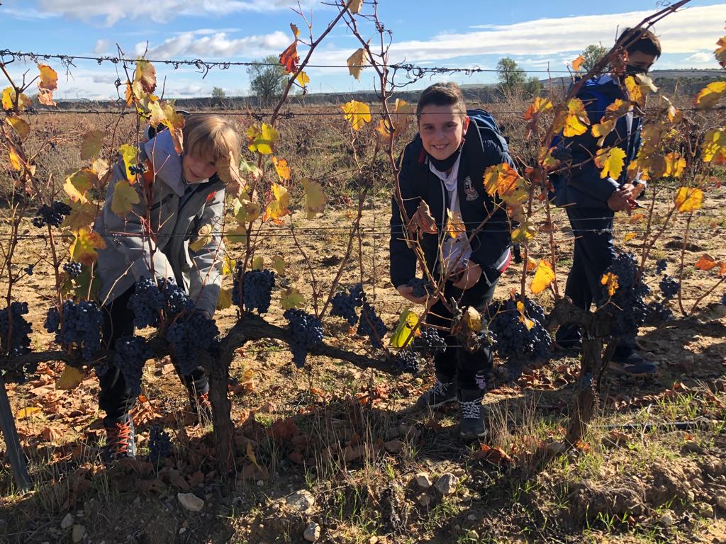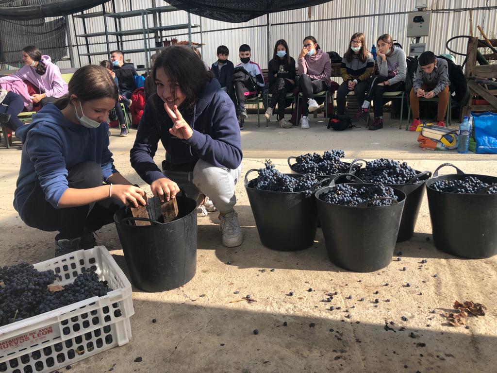 Se les da fenomenal la vendimia. Una vez recogidas las uvas aprendemos a hacer nuestro propio mosto. Ya va saliendo una buena cantidad de mosto. Los chicos lo están dando todo. Si ayer durmieron bien hoy van a caer rendidos. Cada día es como una semana.