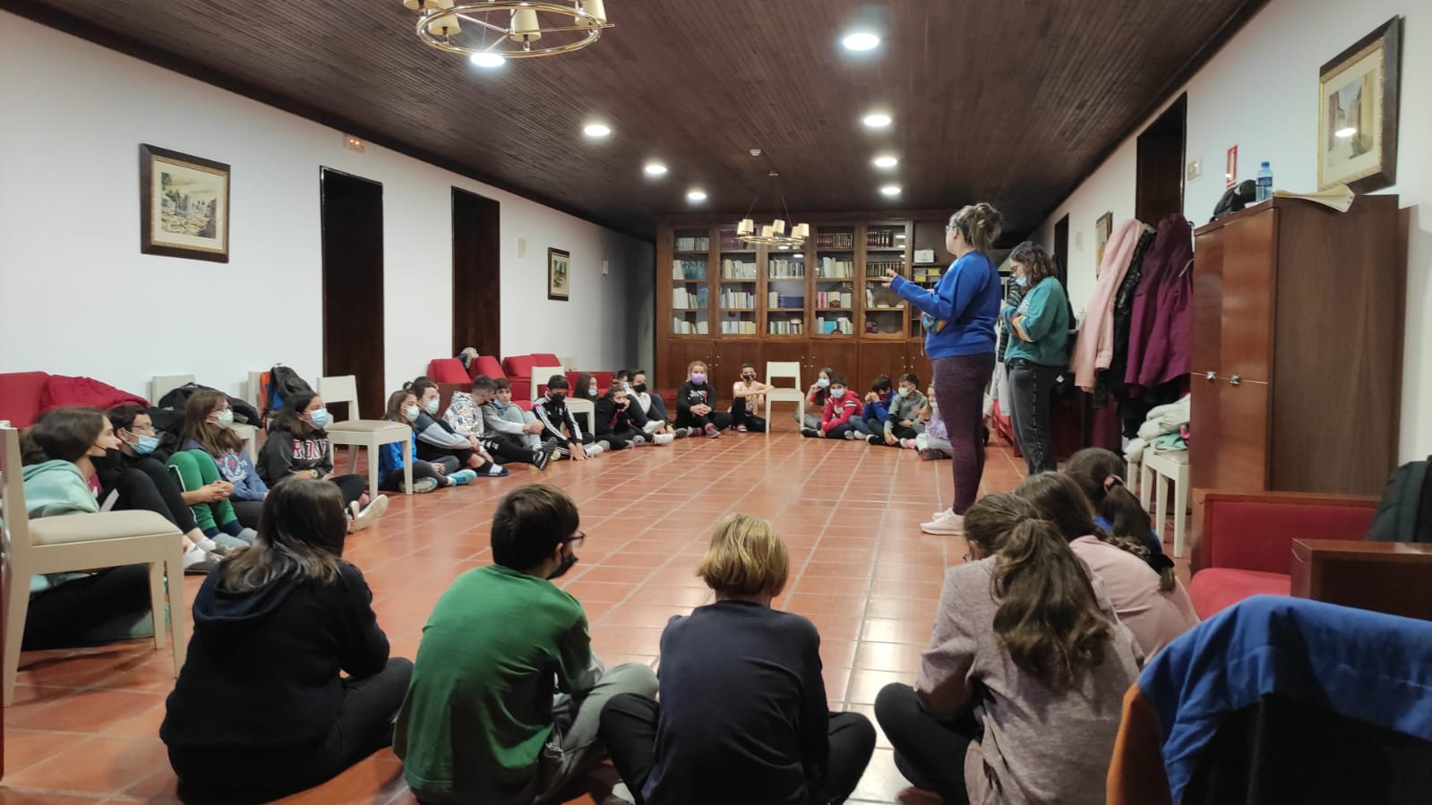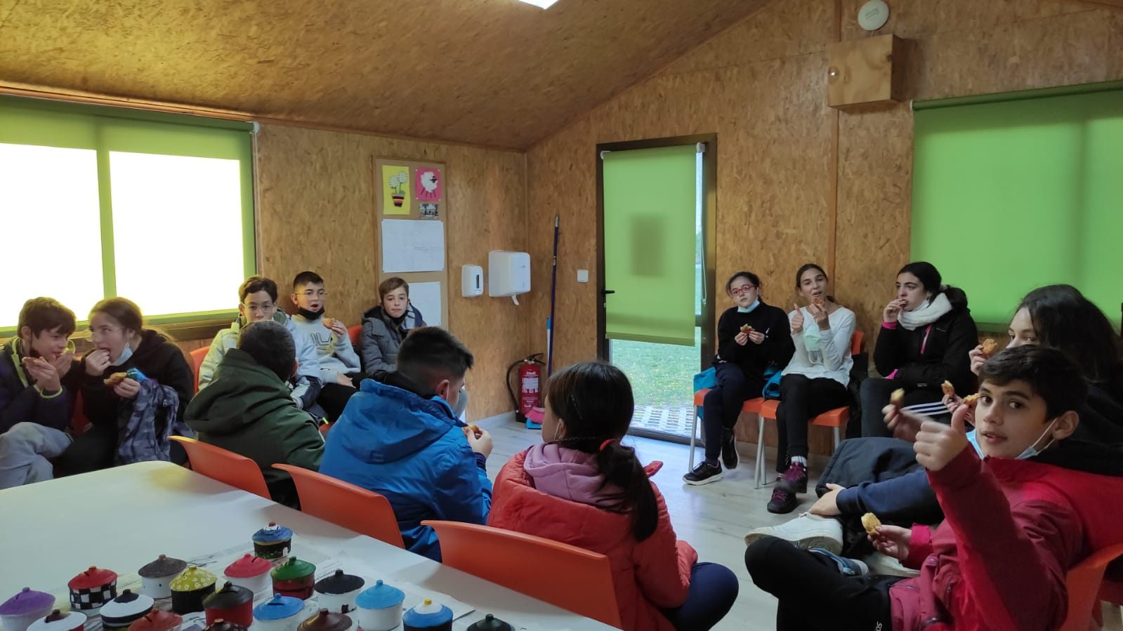 Continuamos en el centro de Interpretación de Matallana. Se acaban de levantar y comenzamos con una charla sobre alimentación saludable.