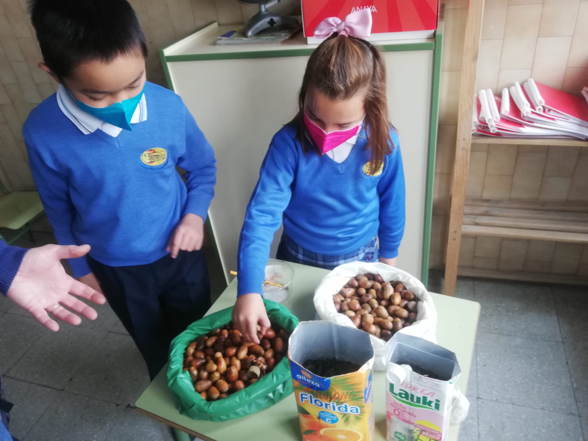 Durante todo el mes de noviembre los alumnos/as llevaron a clase sus tetrabriks llenos de tierra y aprendieron lo barato y sencillo que es plantar “fábricas de oxígeno”. A la vez que sembraban las bellotas, se les contó la importancia de los árboles como reguladores del clima, como elementos de sujeción del suelo frente a la desertificación y como productores de alimentos para los seres vivos que habitan un ecosistema.