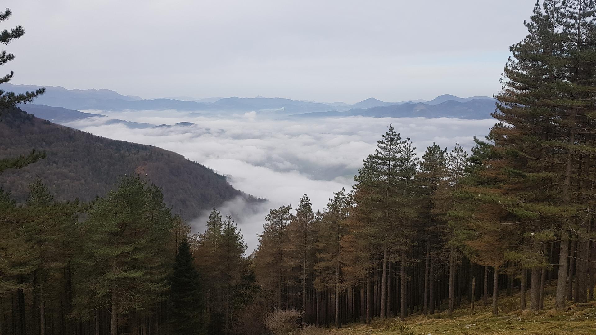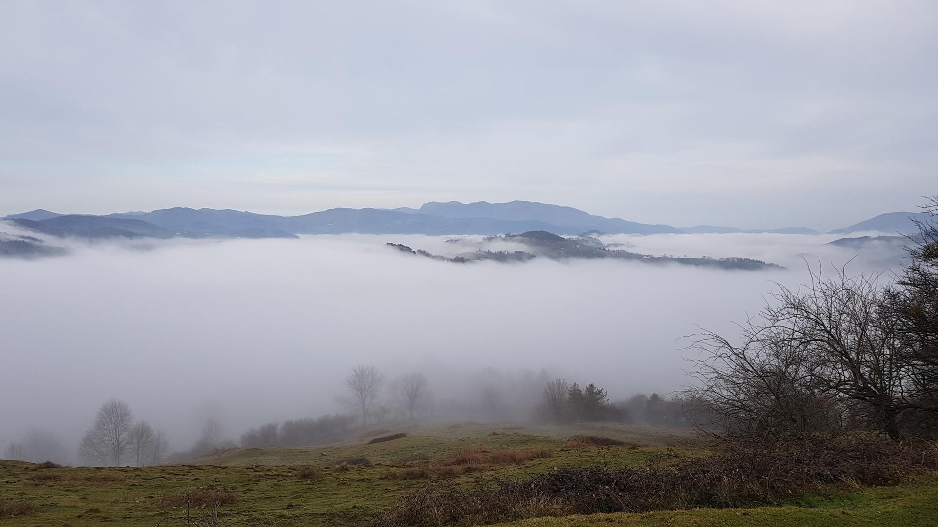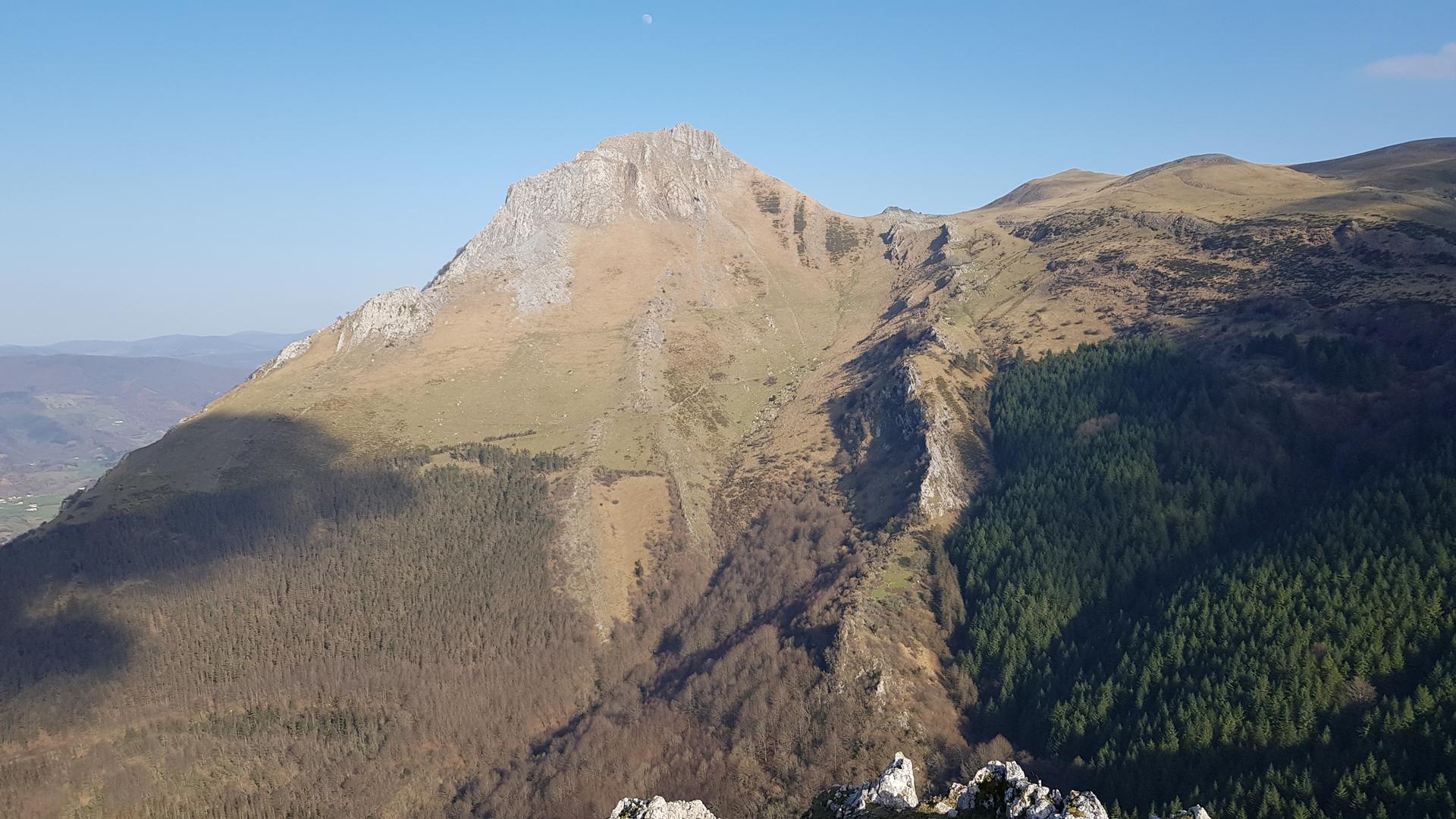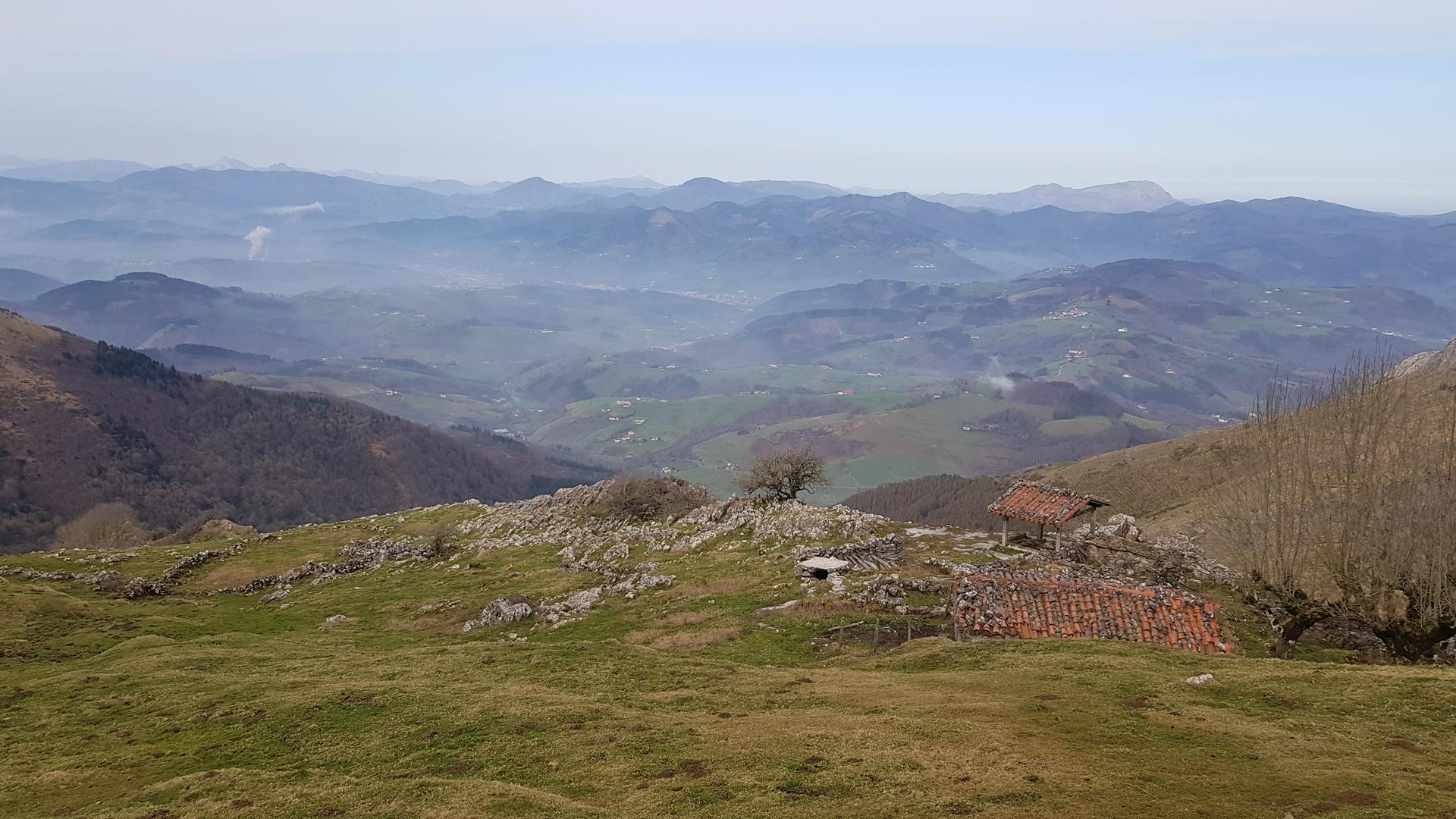 El cielo ha despejado y podemos contemplar unas vistas espectaculares: toda la zona del Goierri, el embalse de Ibiur, la bahía de San Sebastián al fondo, las sierras de Hernio, Udalatx, Anboto, Aratz, Aizkorri o Aloña entre otras, y por supuesto, las primeras cimas del enorme y espectacular paraje de Aralar, con el monte Ganboa como protagonista. ¡Sin palabras!