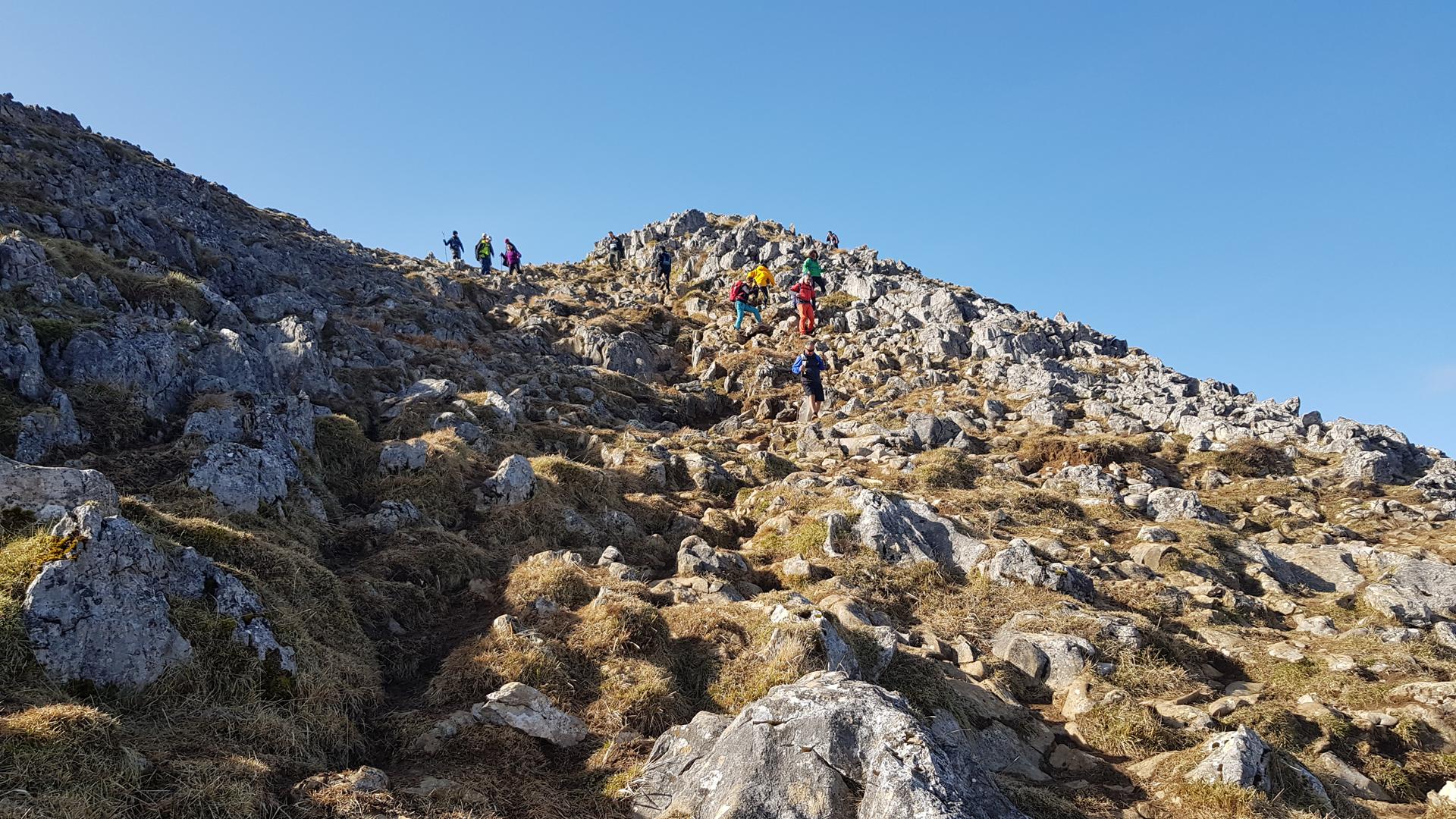 El camino es sencillo, y después de una bajada en zetas llegamos al inicio de la ascensión: el collado Errekonta. Se trata de una subida de aproximadamente 120 metros, con algún tramo duro de roca, pero sin excesiva dificultad. ¡Sólo los más aguerridos se atreven con la ascensión!