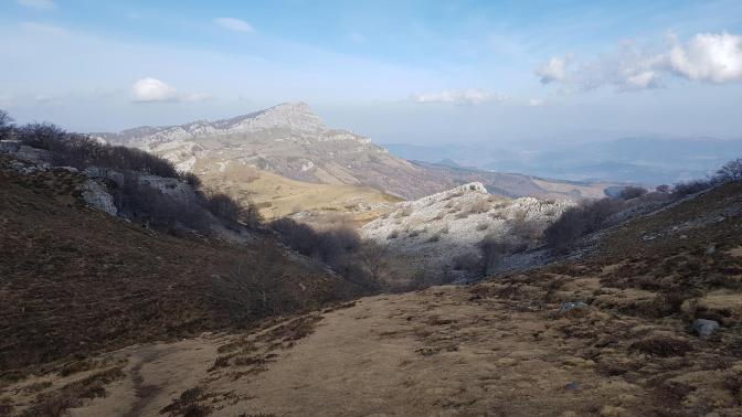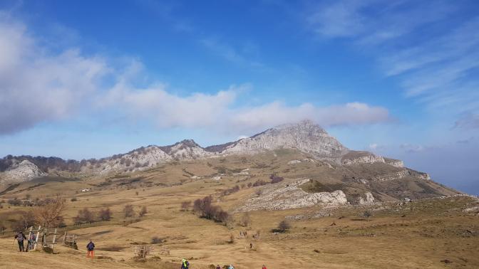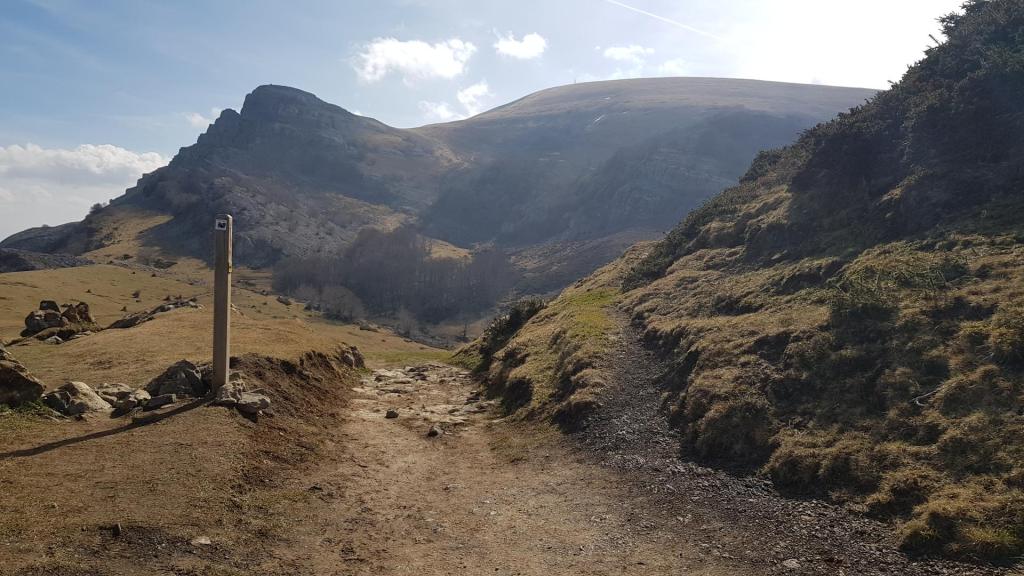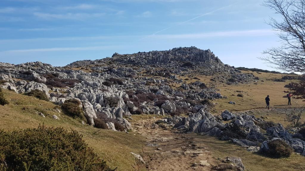 La primera parte de la ruta discurre por una pista de piedras, con increíbles vistas a otros montes vascos, dejando a nuestra derecha el macizo de Itxina.