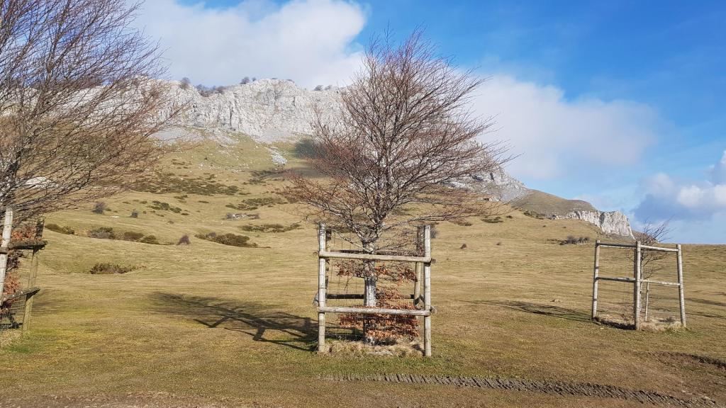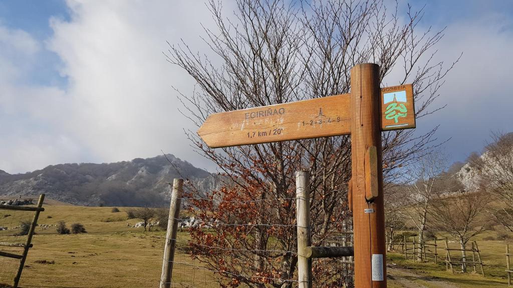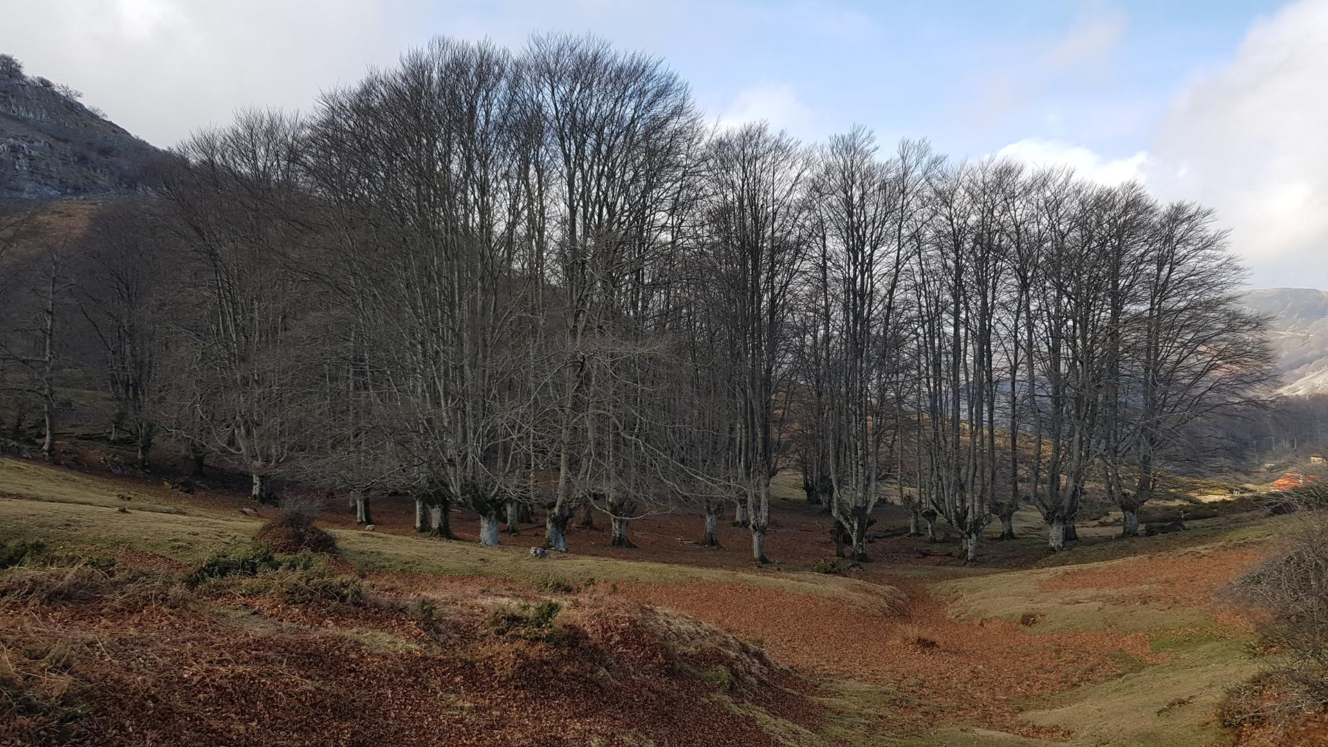 Mas adelante llegamos a un pequeño hayedo, donde se encuentra el refugio de Egiriñao. Esta es la base del monte desde donde comenzaremos las rampas más duras.