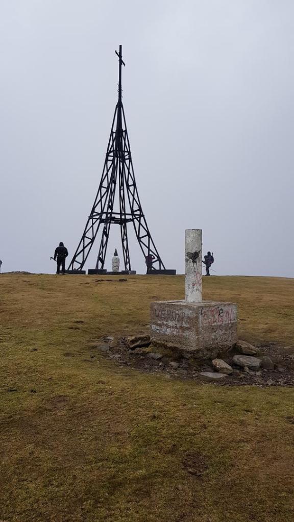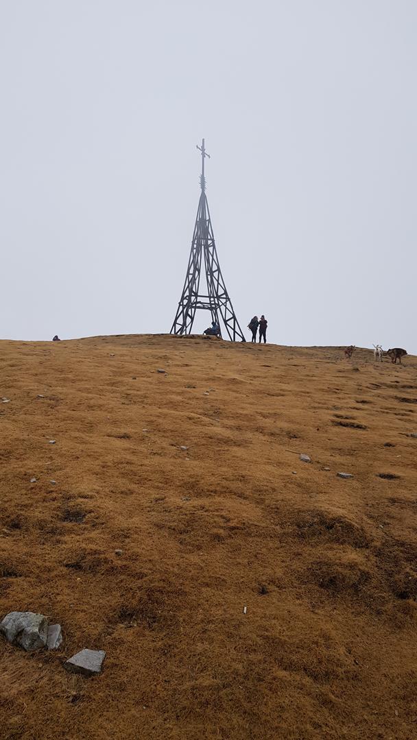Tras un último esfuerzo final llegamos a la cumbre, con una impresionante cruz frente a nosotros que nos recuerda a la Torre Eiffel. ¡Prueba superada! ¡Máquinas!