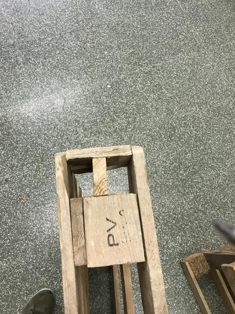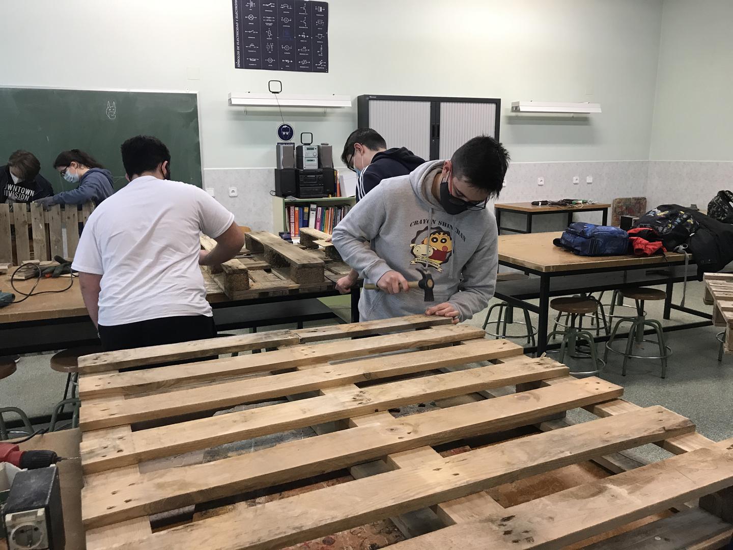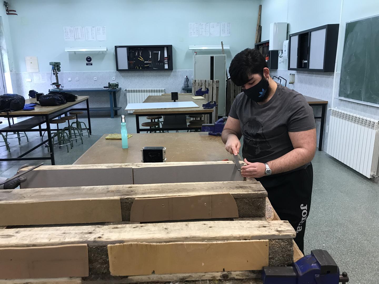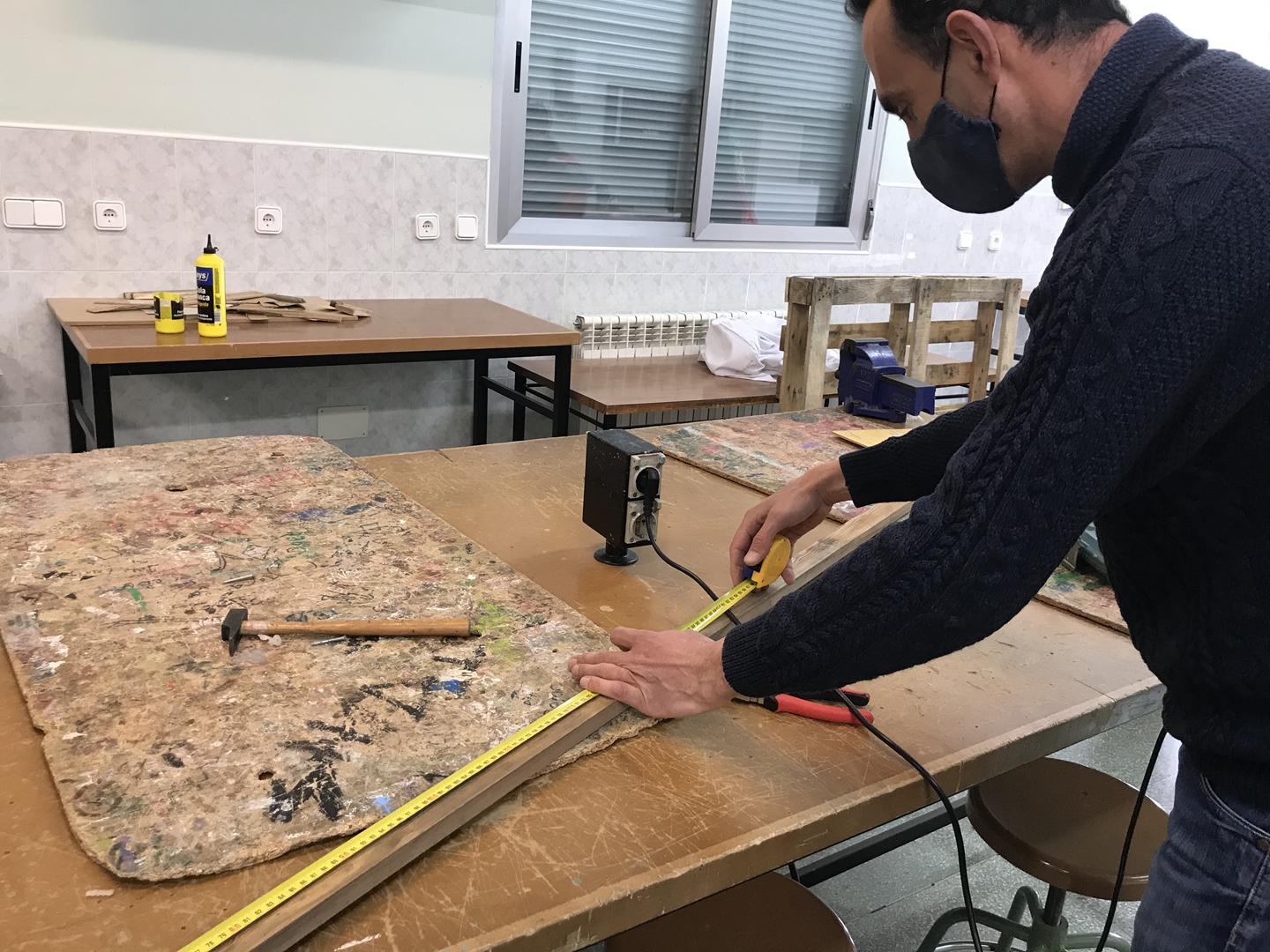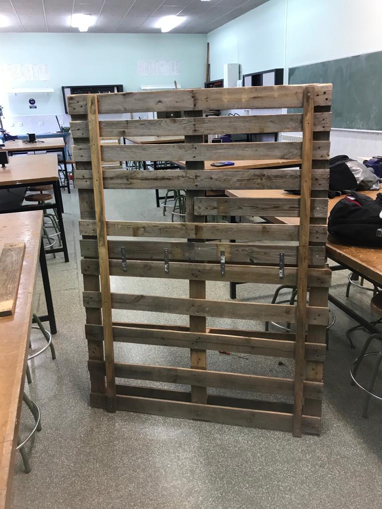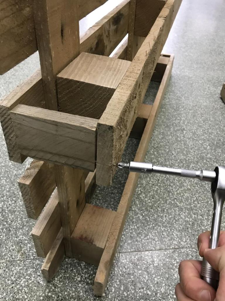 En un palé no coincidían los tacos, nos ha tocado fabricar unos nuevos para poder clavar más adelante la tabla al lateral.