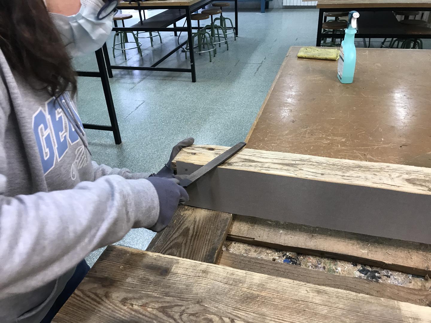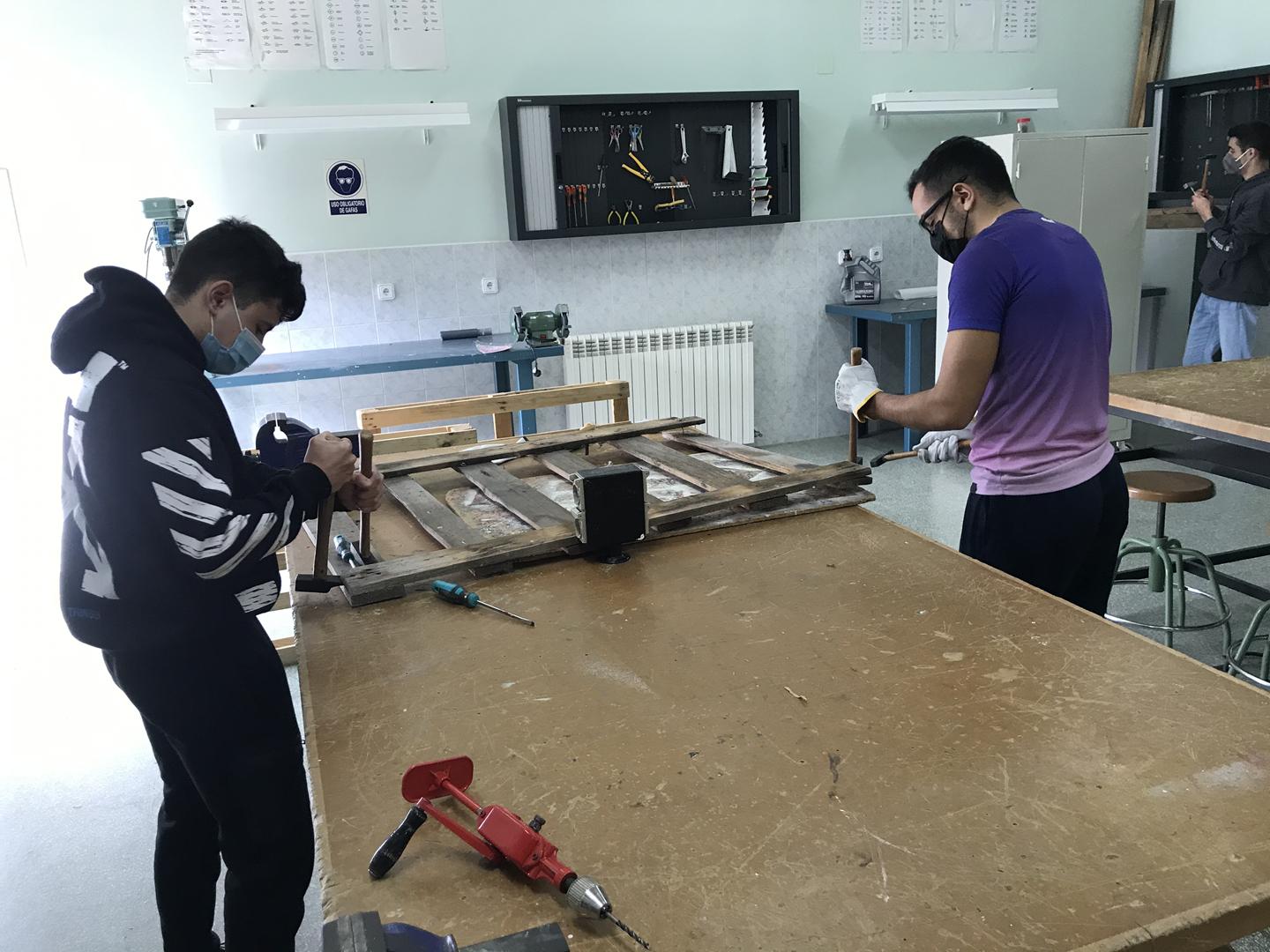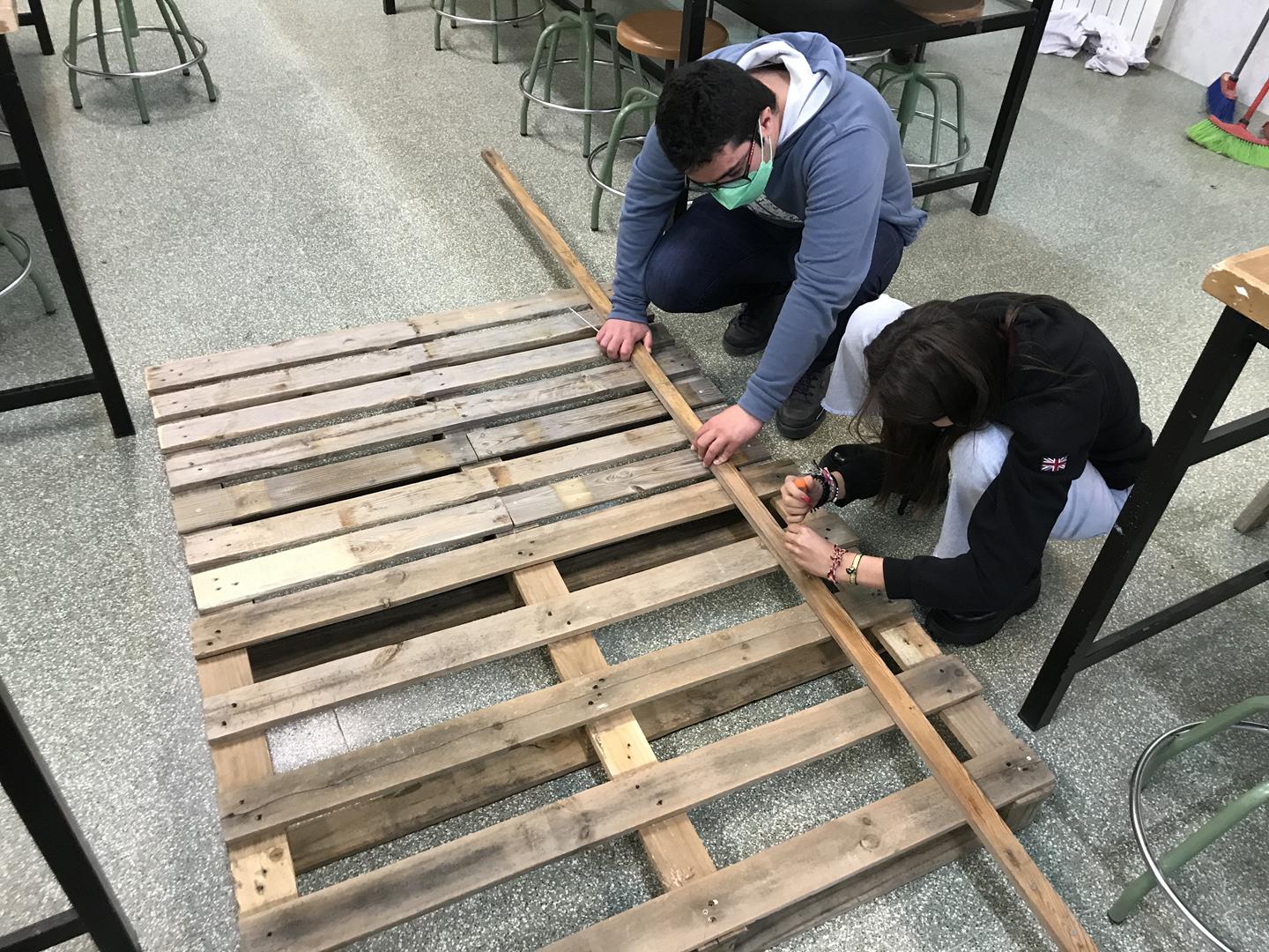 Se lijan los cantos para eliminar astillas, se retiran partes peligrosas como clavos oxidados, se sustituyen tablas estropeadas, se añaden otras que faltan.