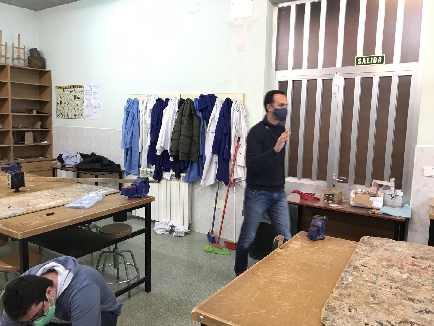 Algunos de los profesores más inquietos se acercan a echarnos una mano.