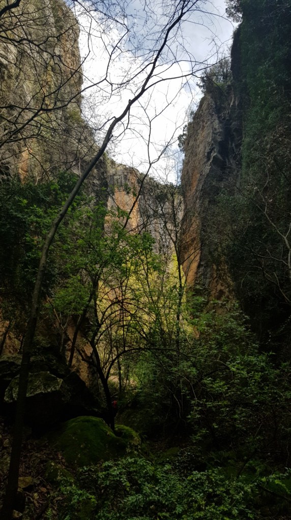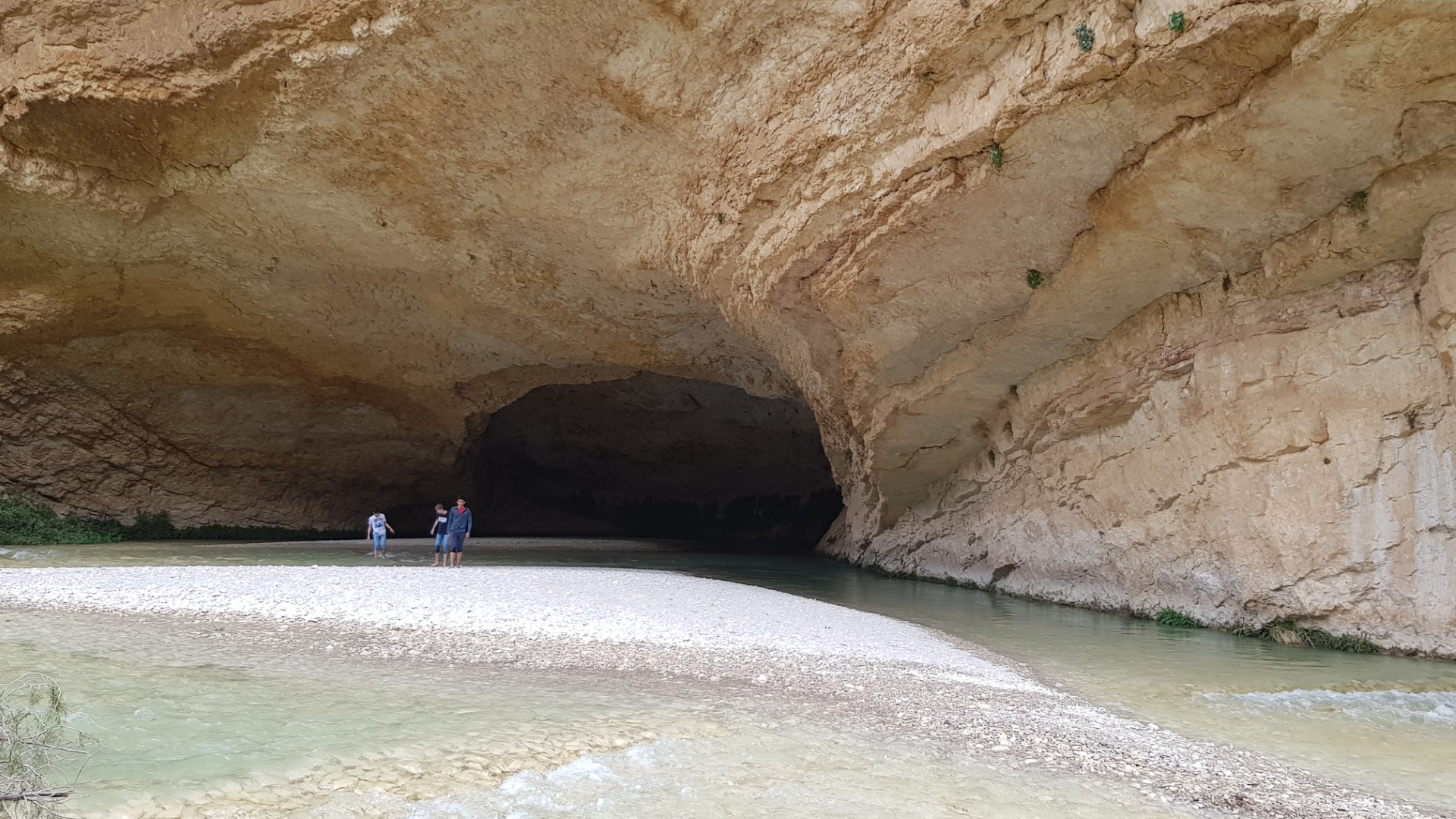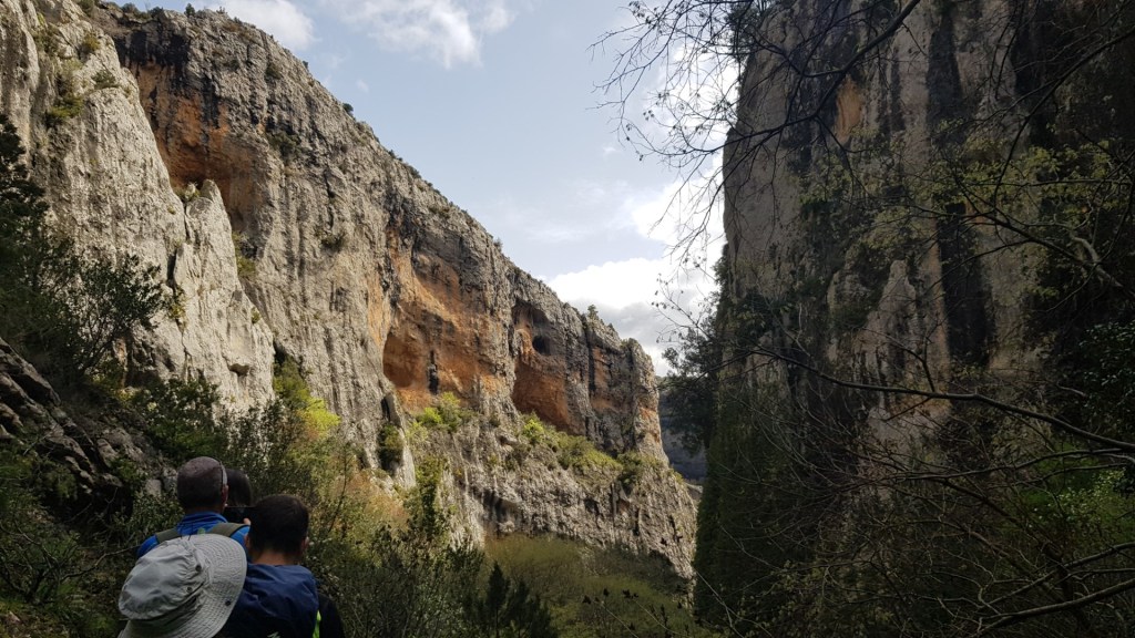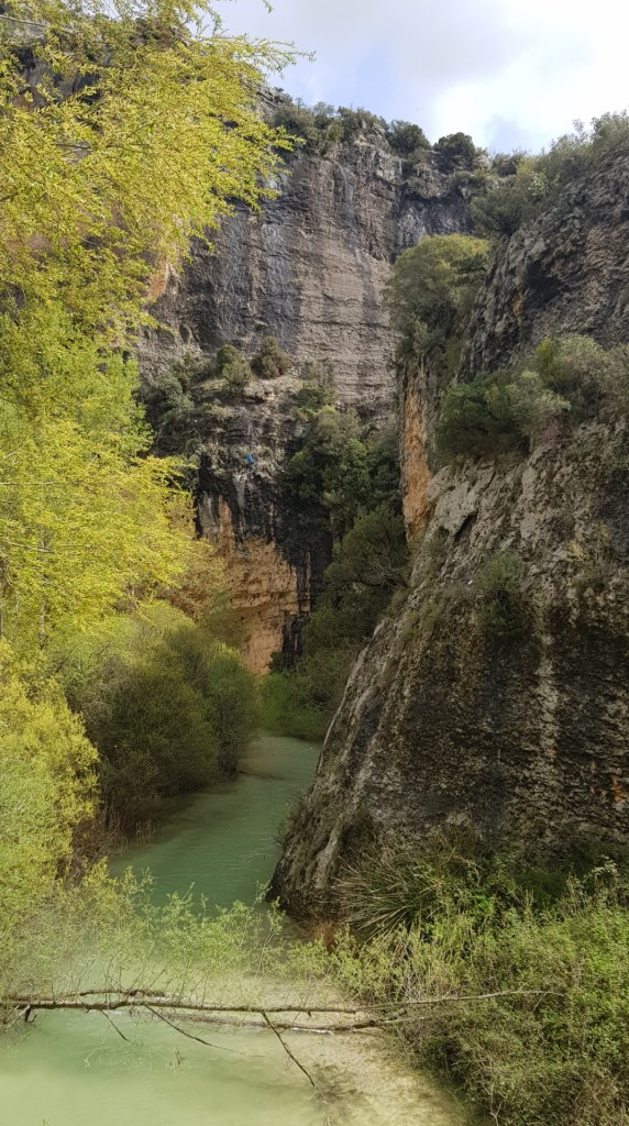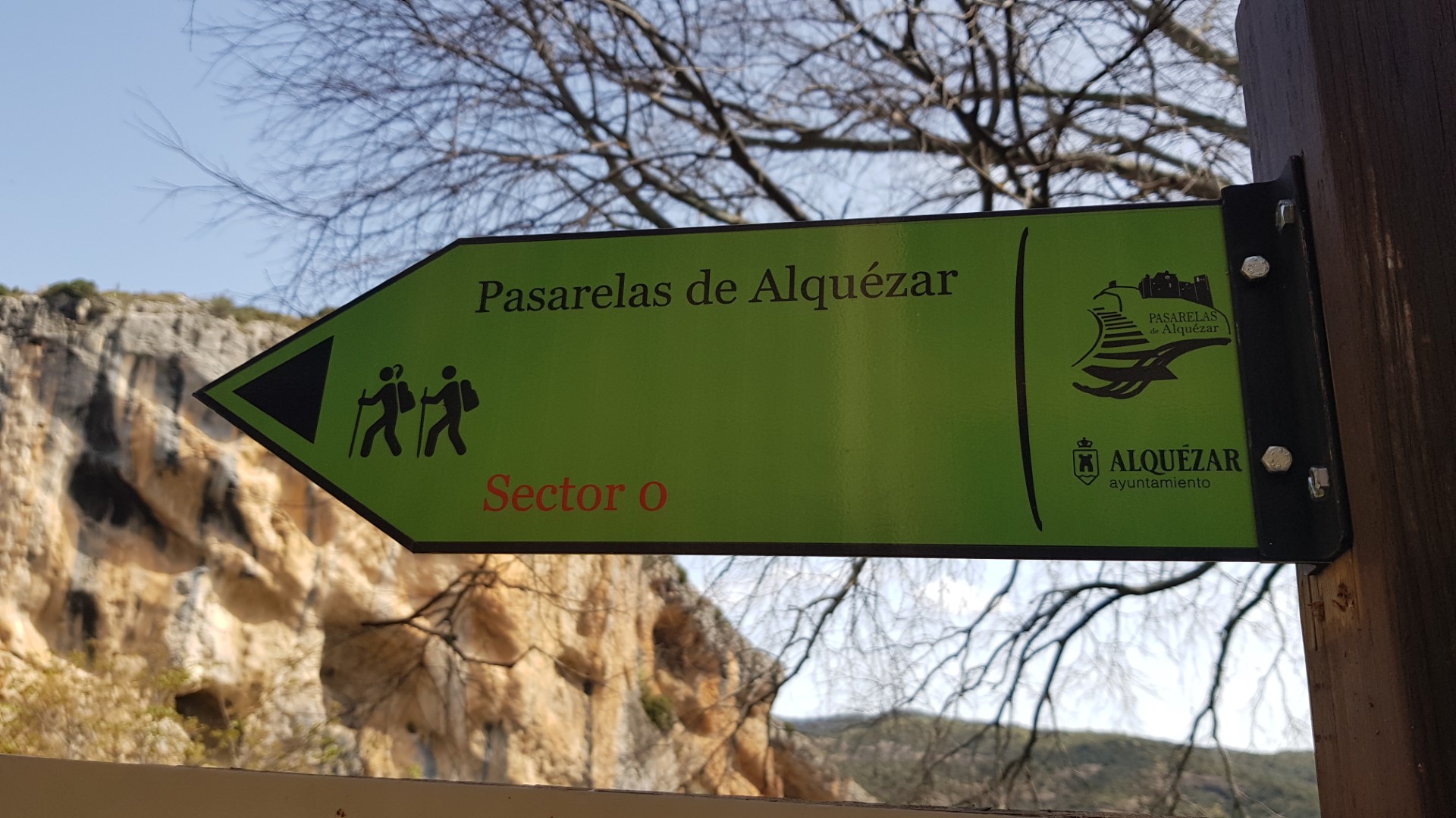 Después de visitar la cueva de Picamartillo, una gran oquedad formada en la roca caliza a la que no podemos acceder por la cantidad de agua que lleva el rio, giramos a nuestra derecha para pasar por las pasarelas metálicas colgadas literalmente de la roca y continuar el camino. En algunas zonas podemos contemplar las antiguas pasarelas. ¡Cuidado los que tengáis vértigo!