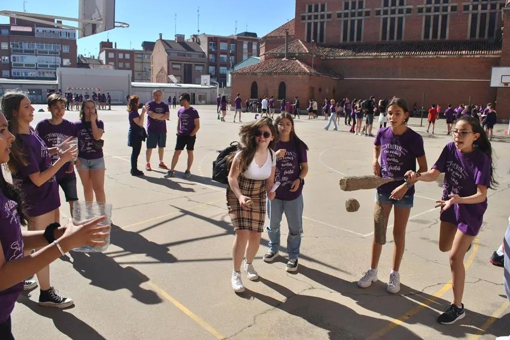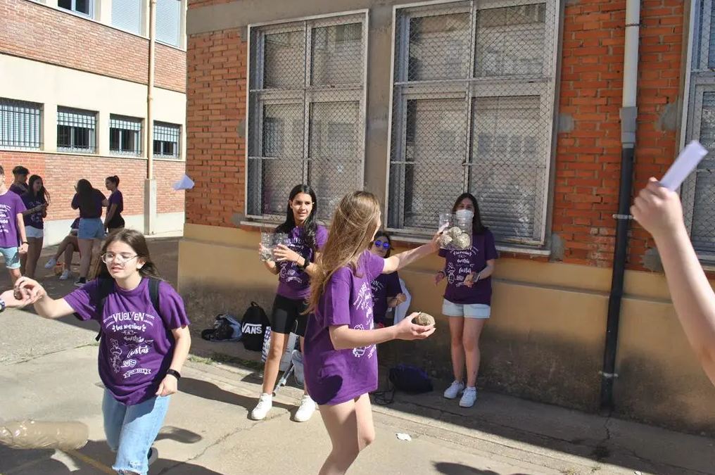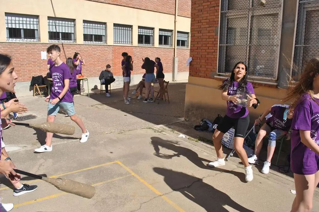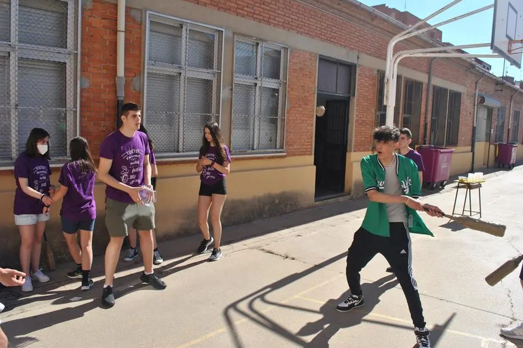 Los días anteriores a las fiestas estuvimos preparando todo. Cortamos una garrafa de agua de 5 litros por la parte de arriba. Eso sería la «cesta». Hicimos unos bates con unas botellas de agua de 1,5 litros en las que pegamos unos palos de escoba y forramos con periódicos y con cinta. También hicimos unas pelotas hechas con papel de periódico y envueltas de cinta.