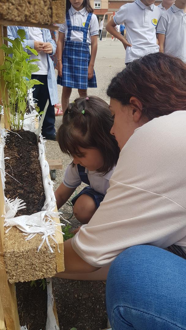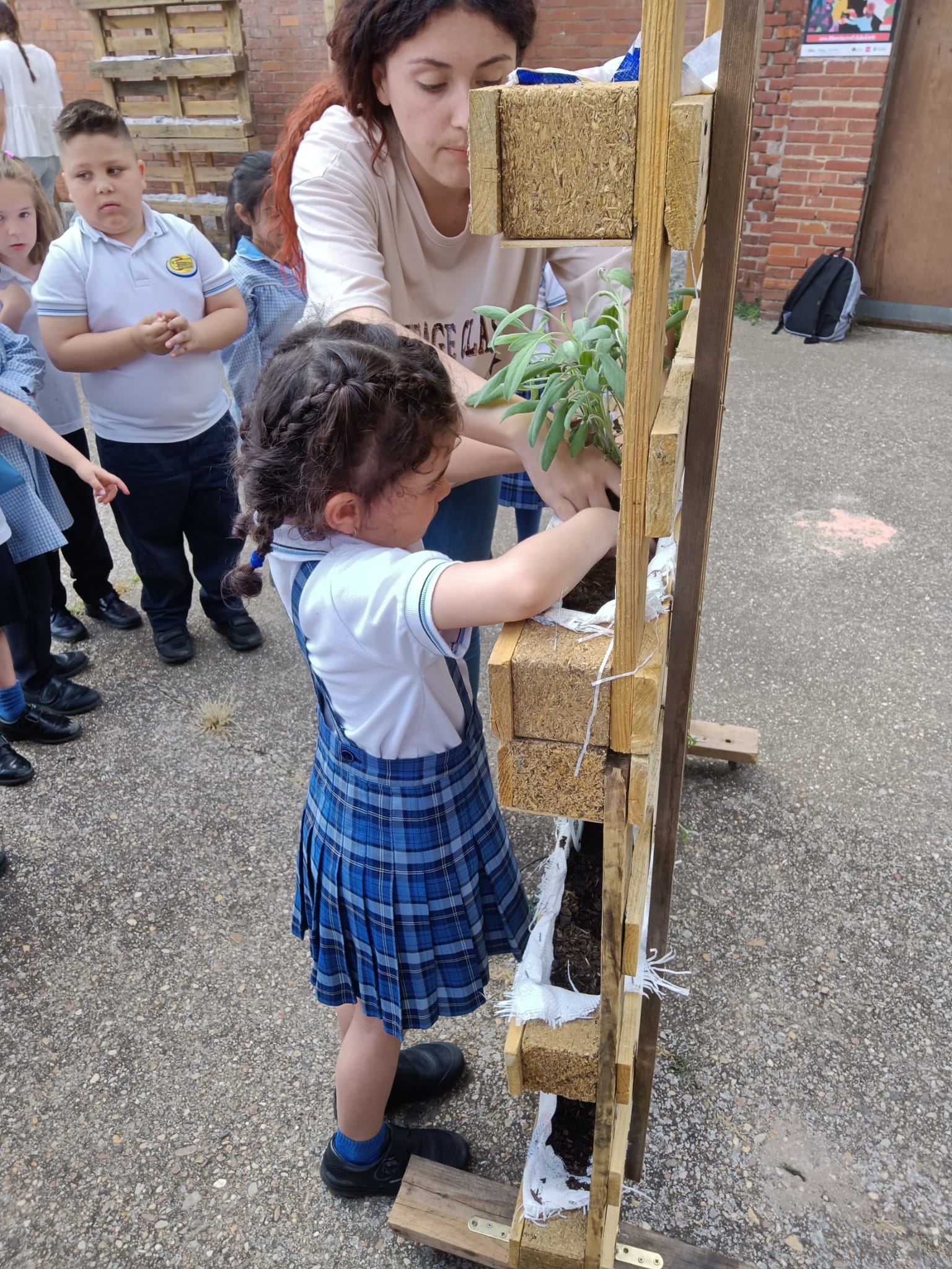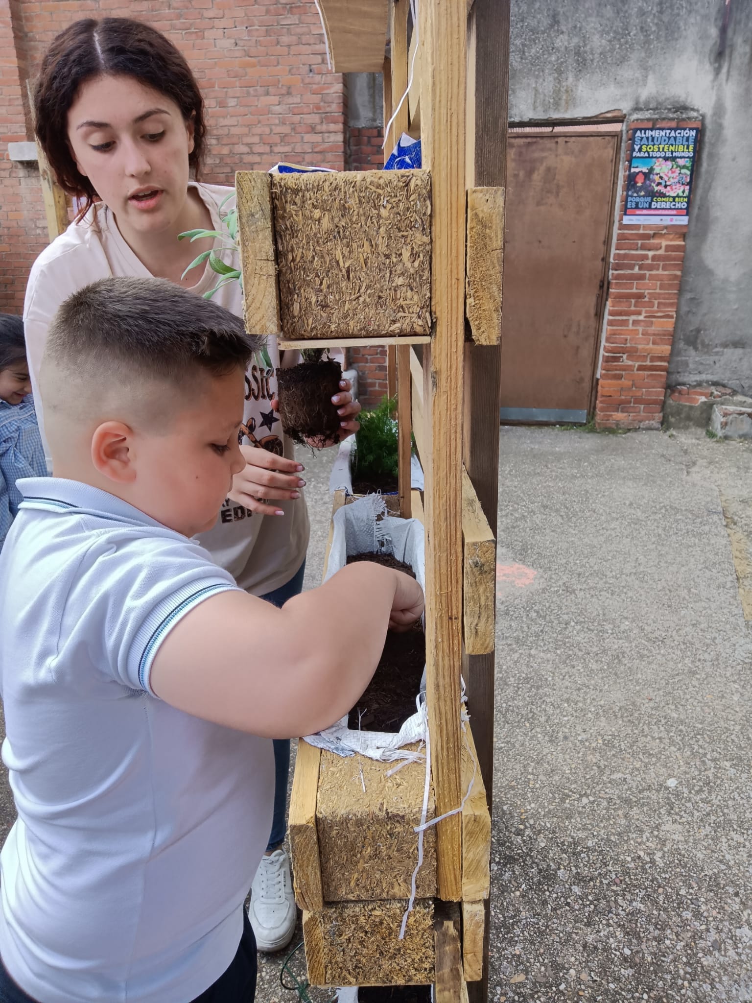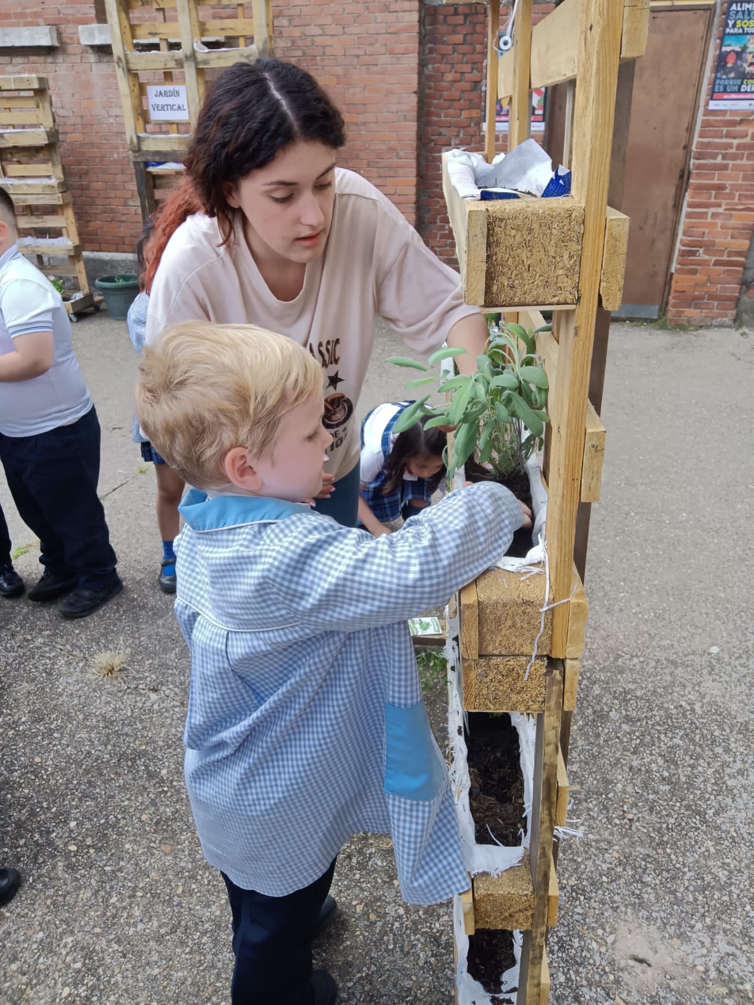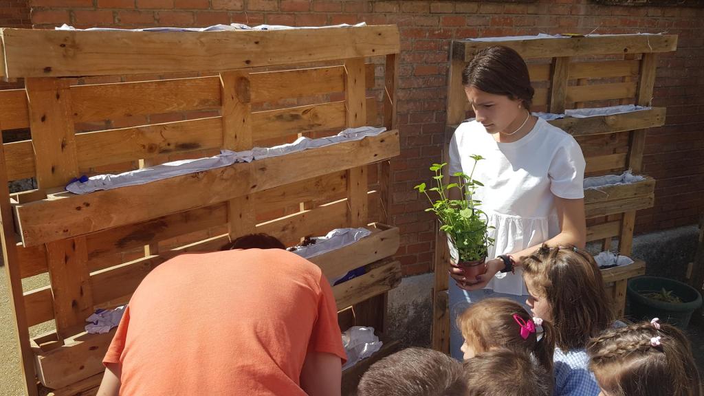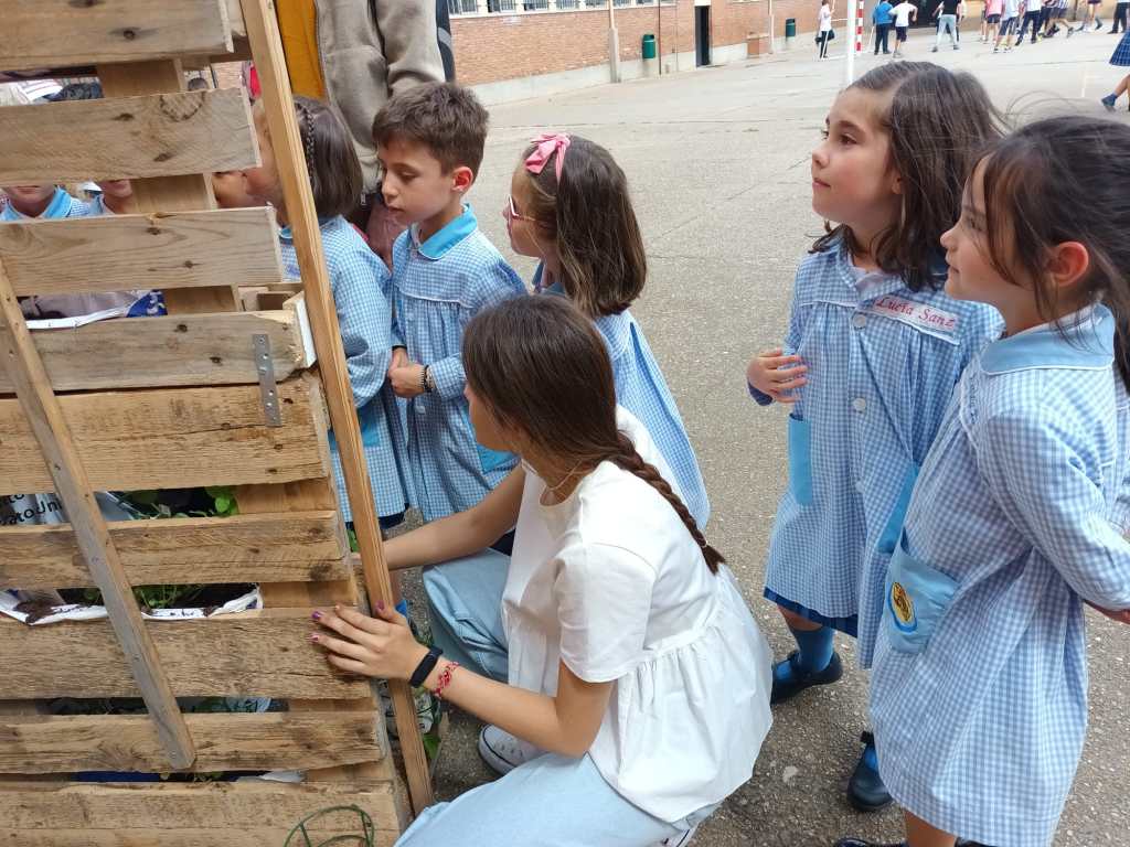 Para concluir, qué mejor imagen que ver a los mayores, alumnos y profesores, explicar a los más pequeños lo que han construido y que con una gran ilusión planten juntos las plantas que dan vida a estos jardines verticales. ¡Sin palabras!