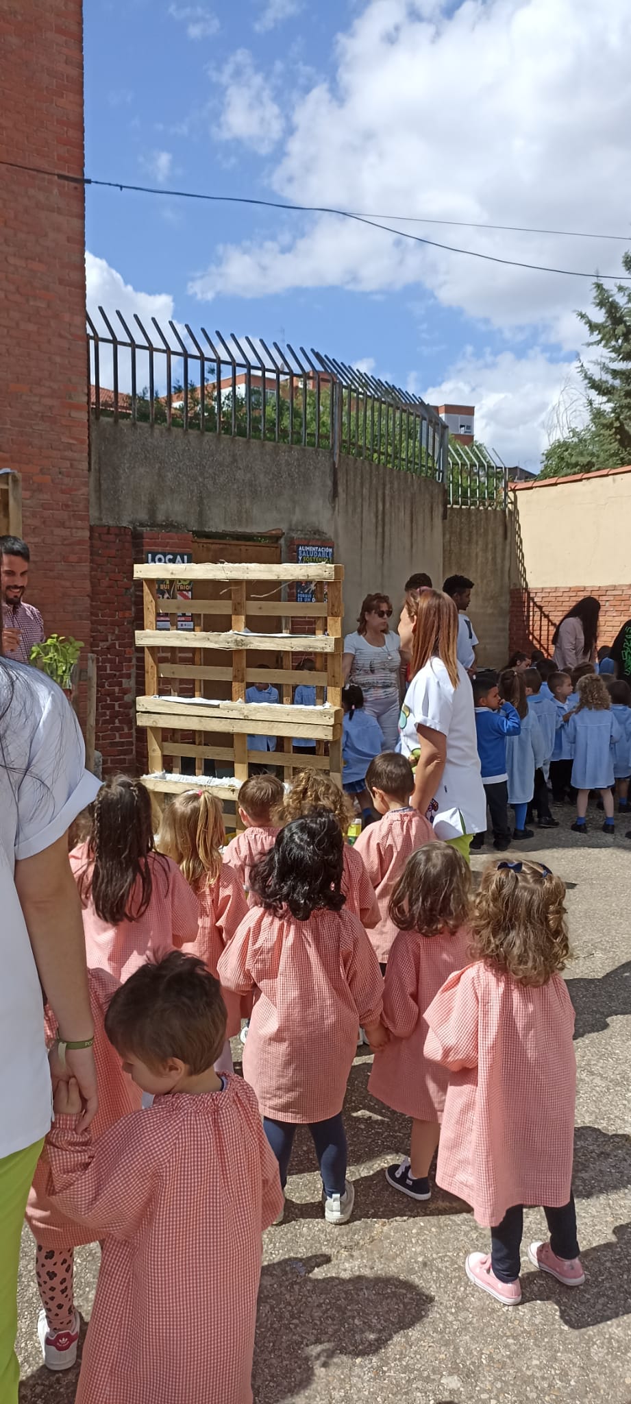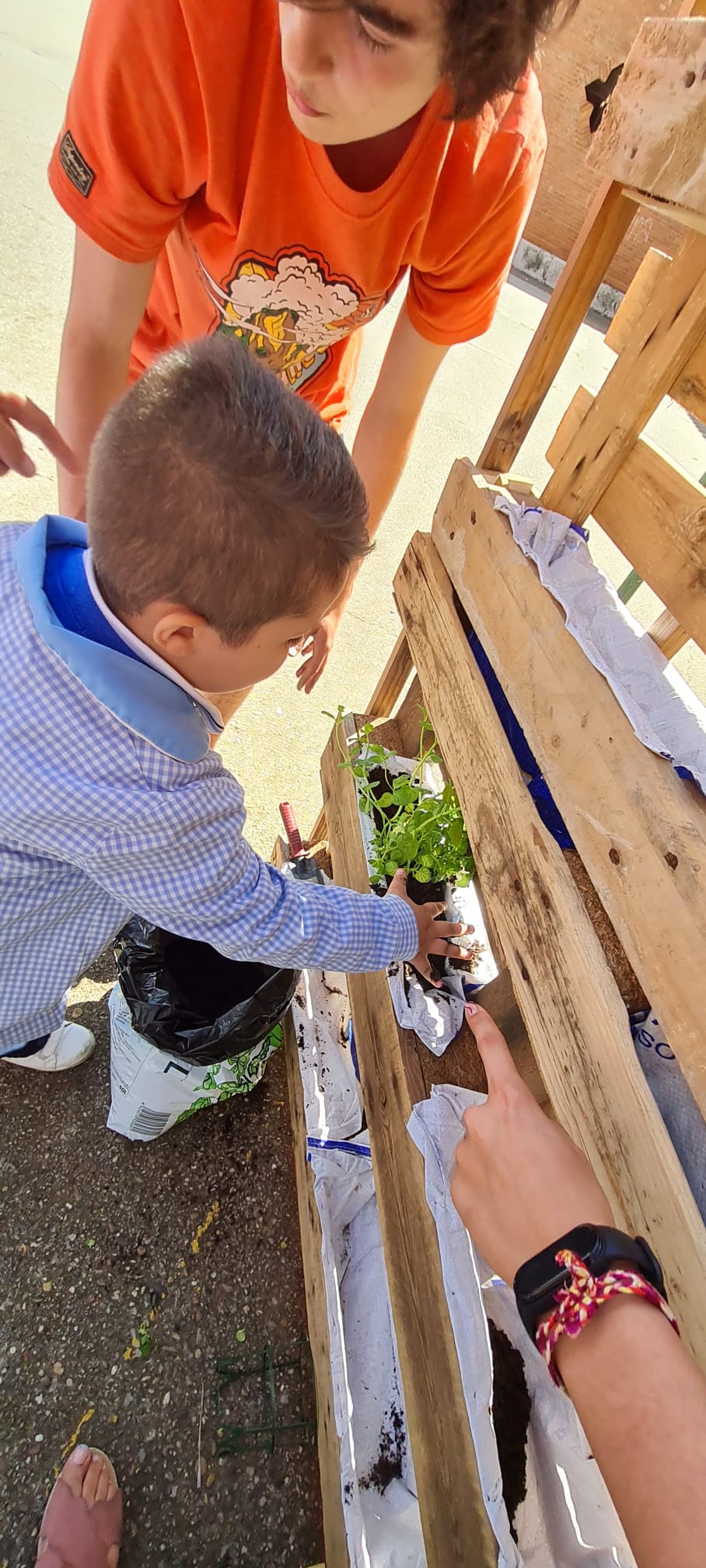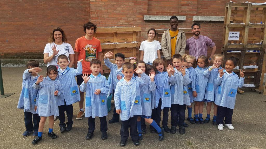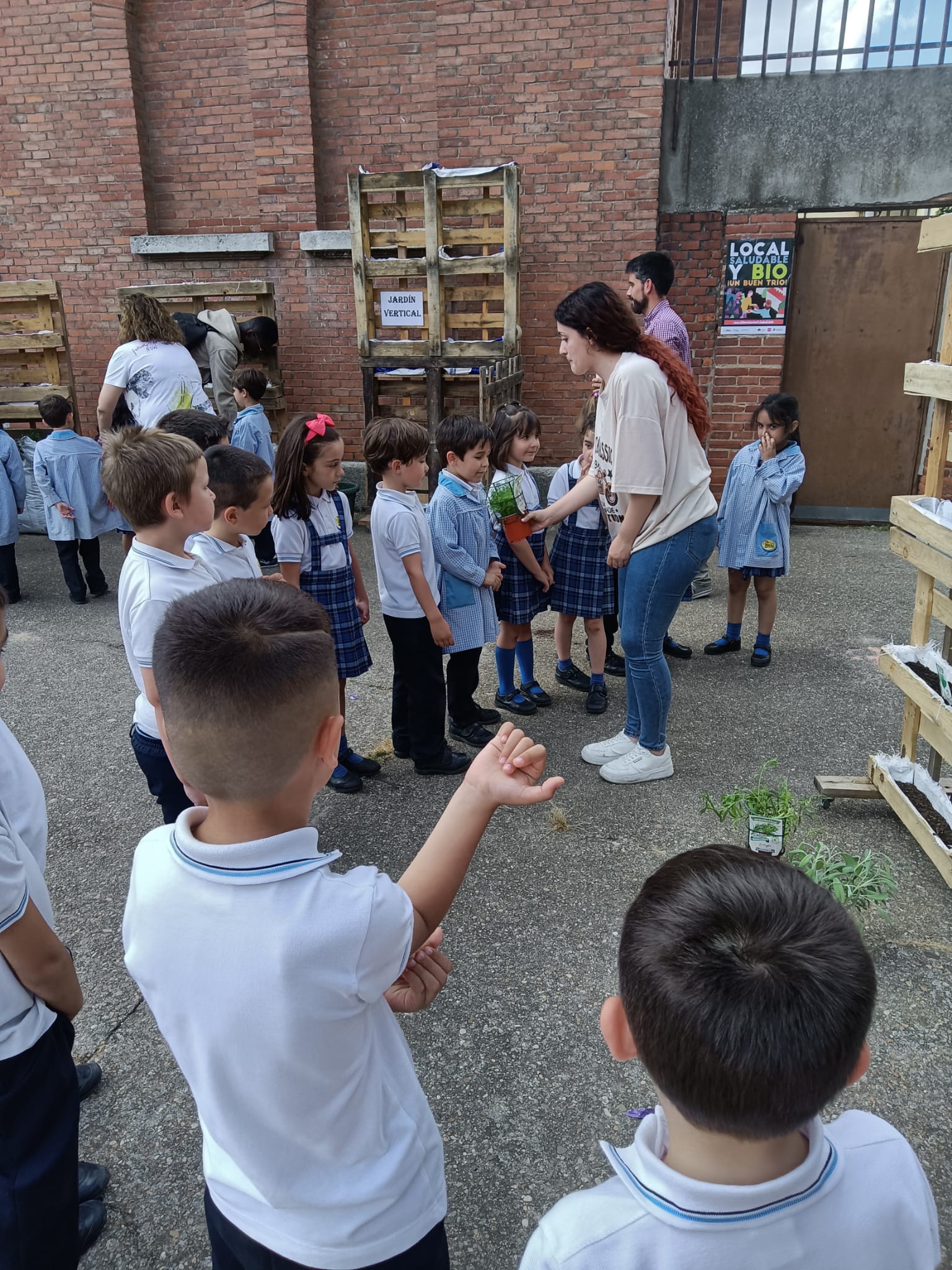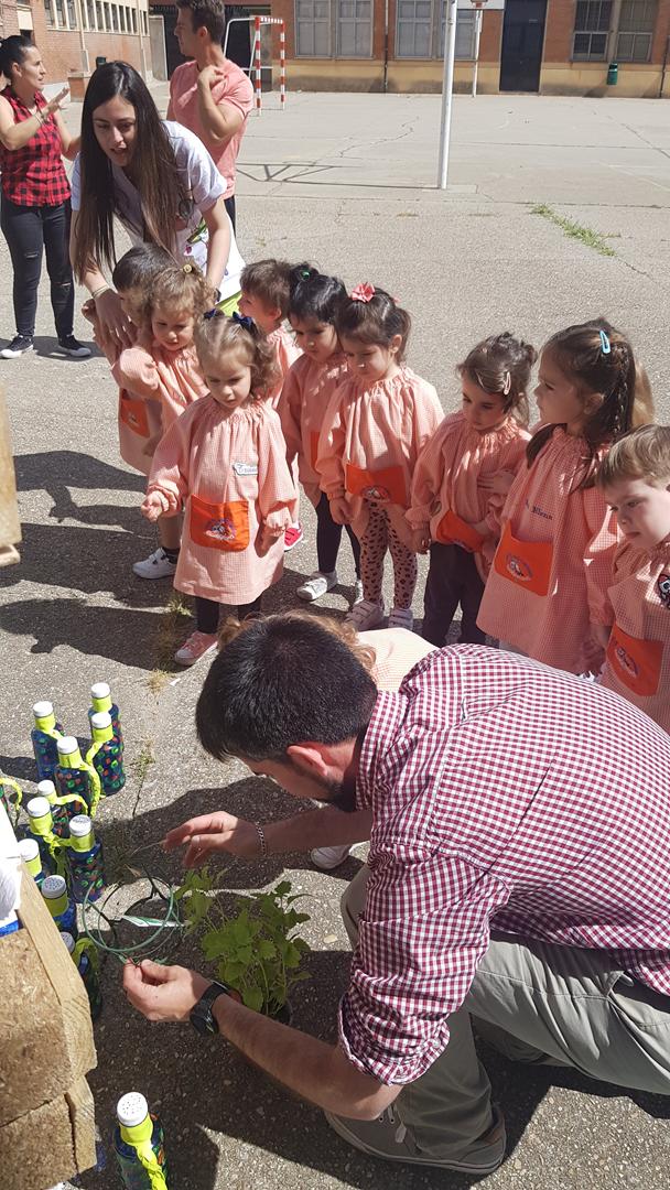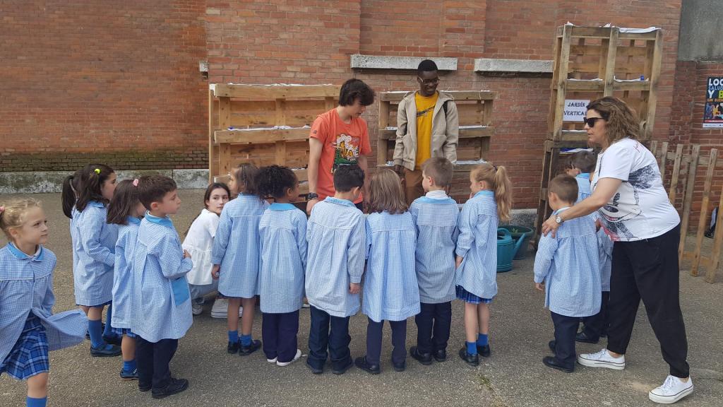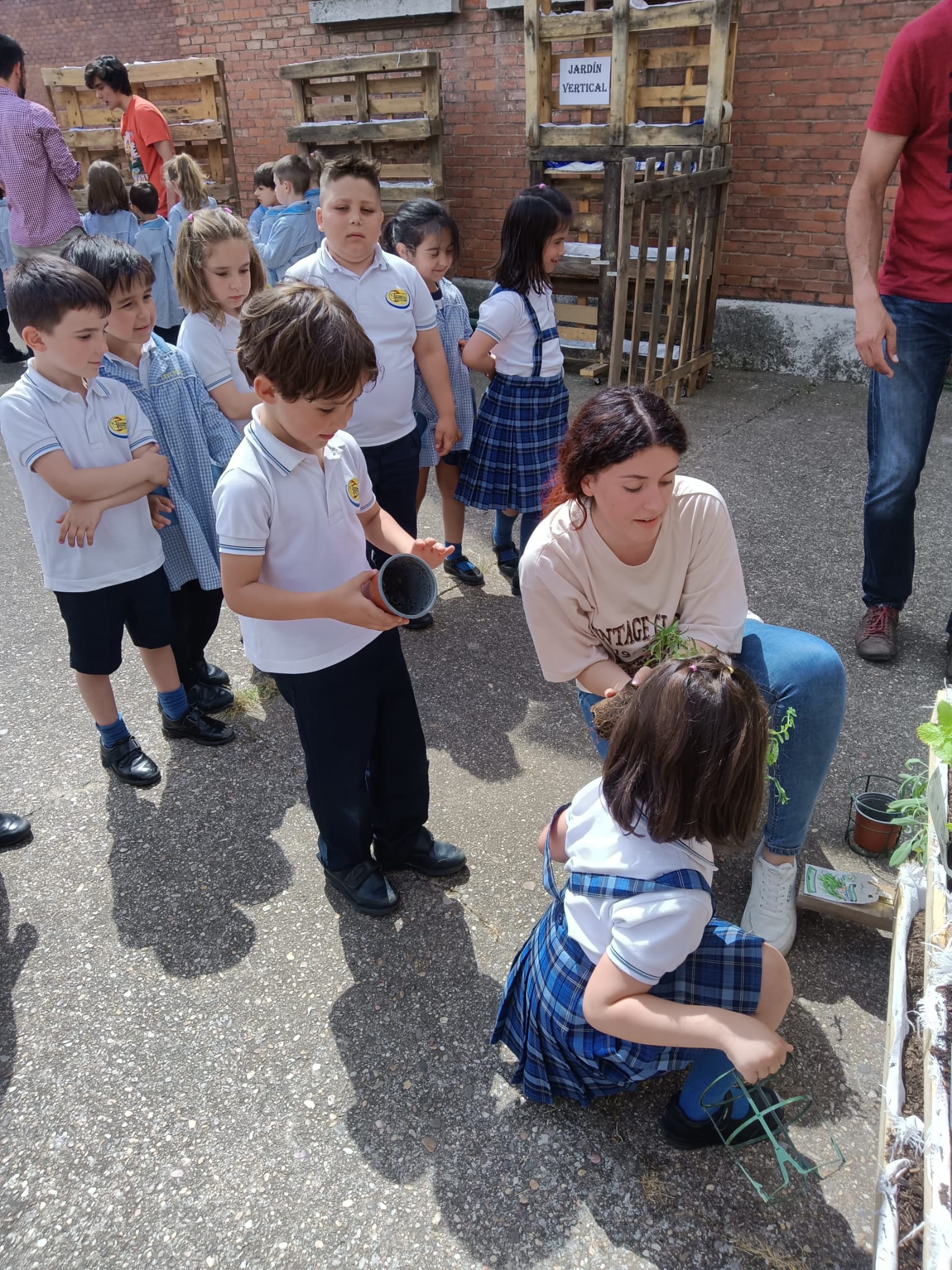 Para concluir, qué mejor imagen que ver a los mayores, alumnos y profesores, explicar a los más pequeños lo que han construido y que con una gran ilusión planten juntos las plantas que dan vida a estos jardines verticales. ¡Sin palabras!