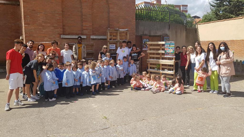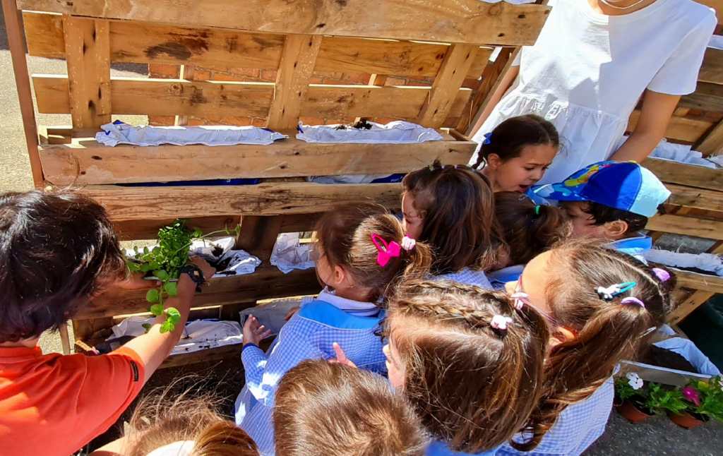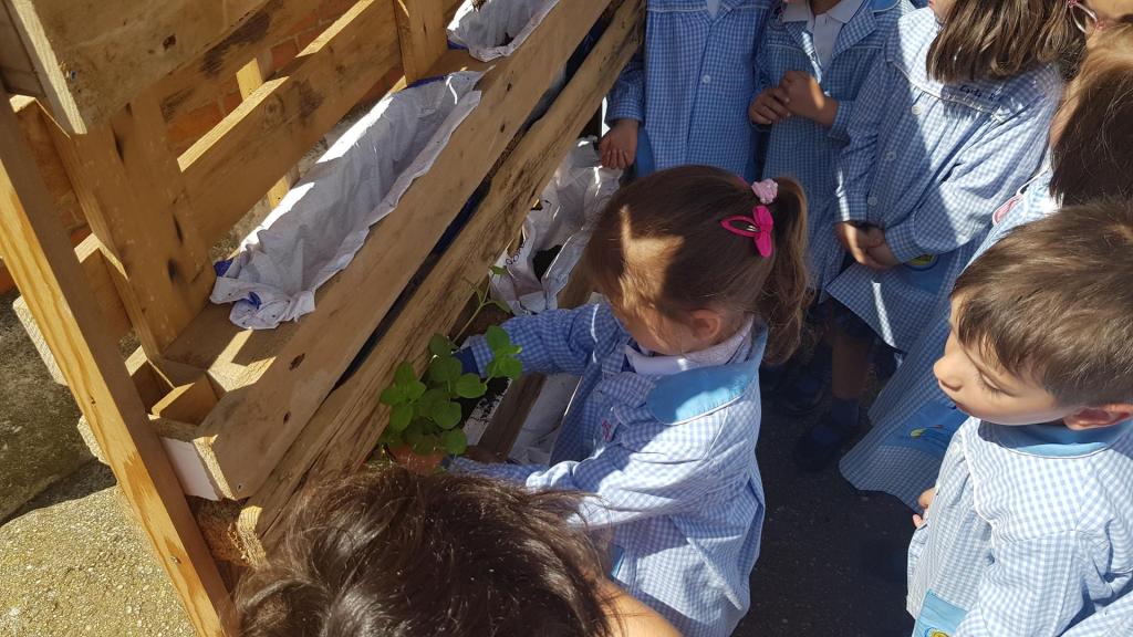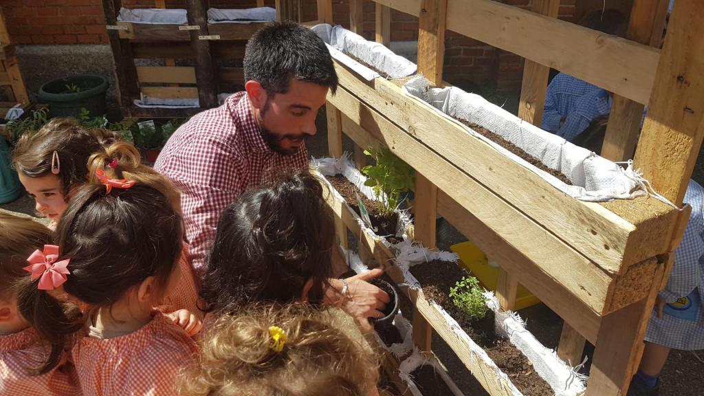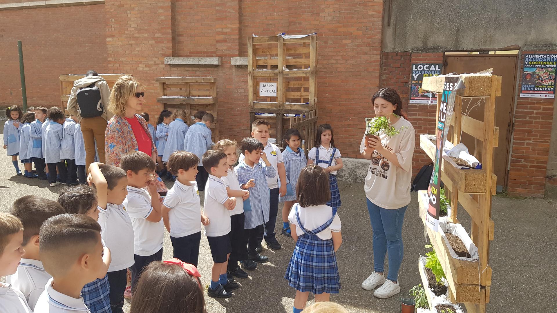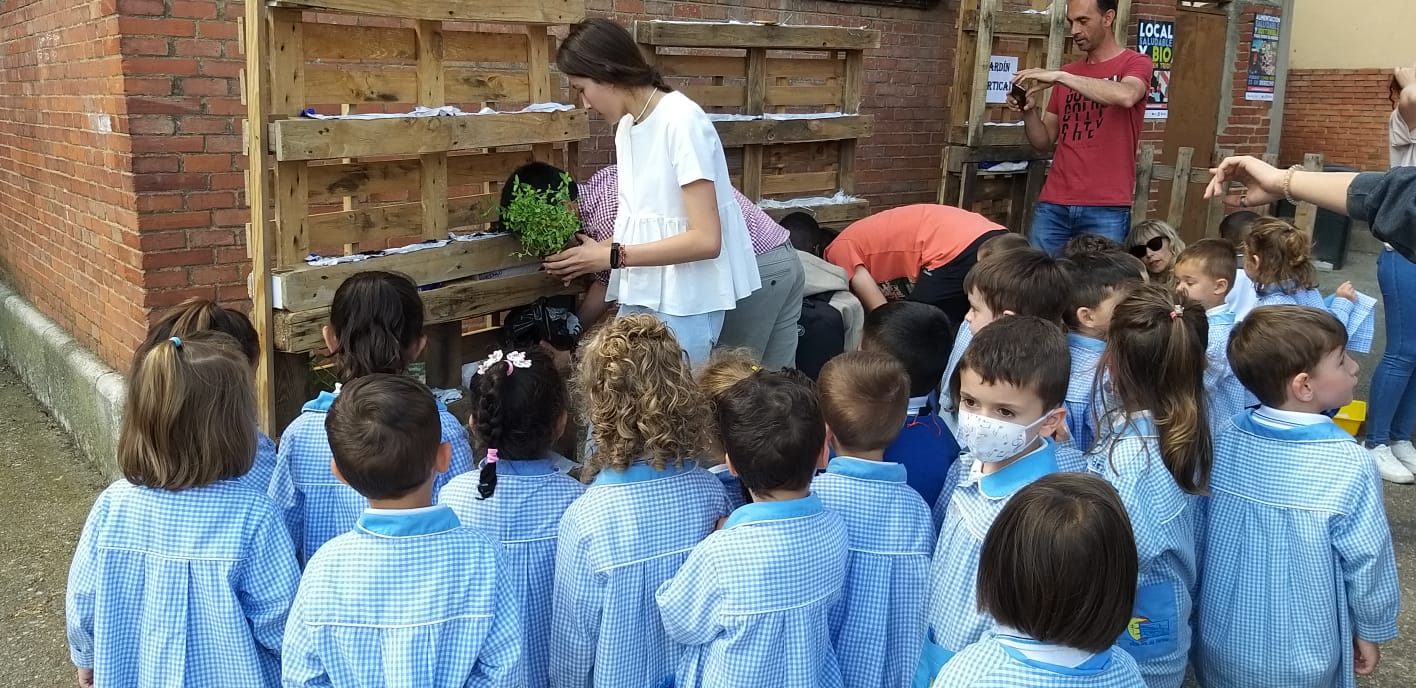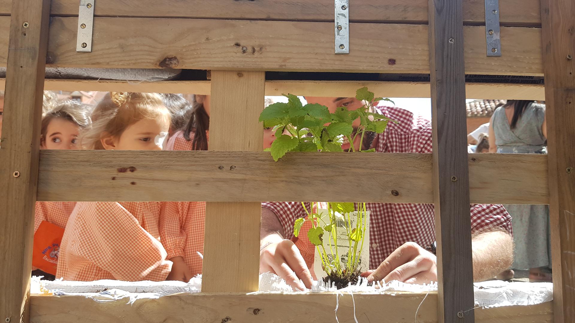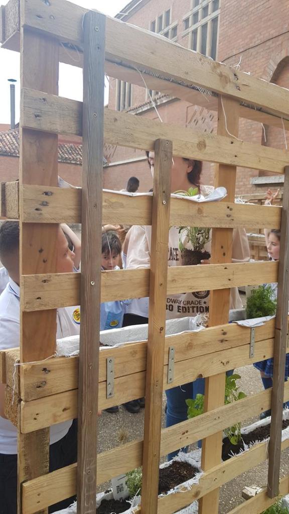 Para concluir, qué mejor imagen que ver a los mayores, alumnos y profesores, explicar a los más pequeños lo que han construido y que con una gran ilusión planten juntos las plantas que dan vida a estos jardines verticales. ¡Sin palabras!