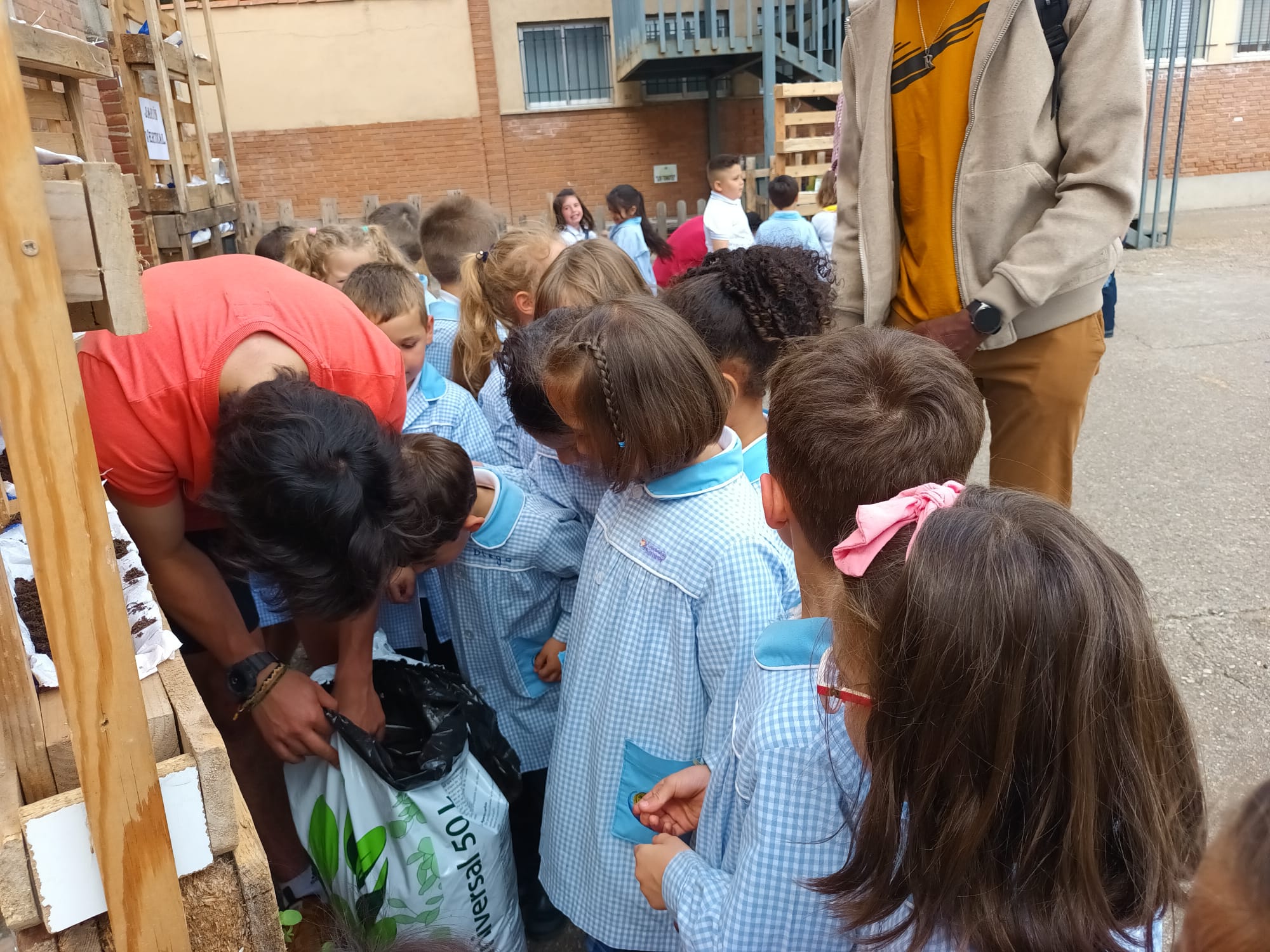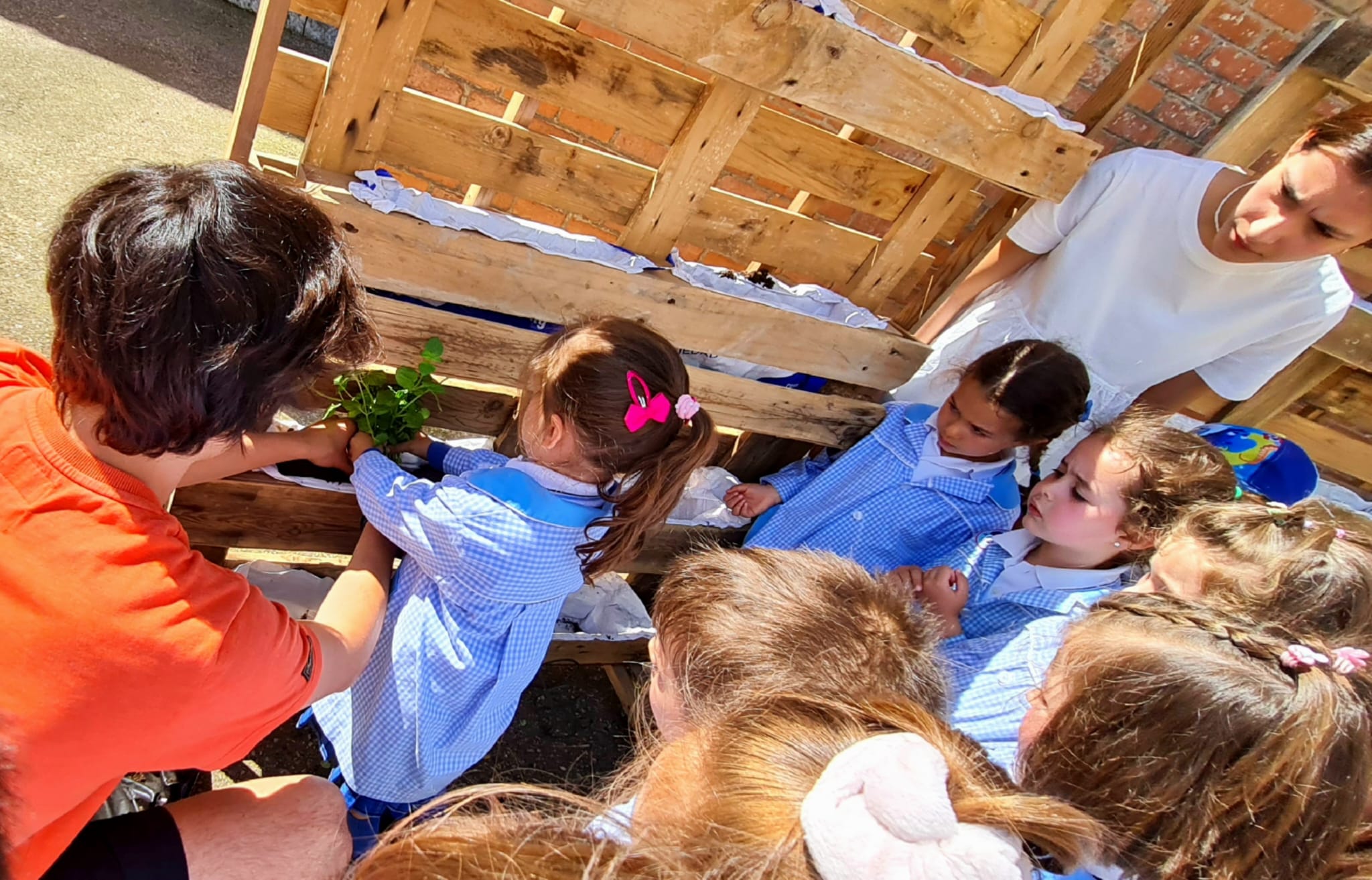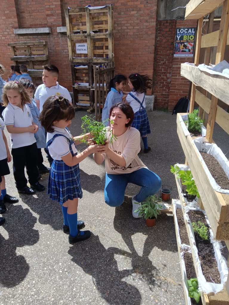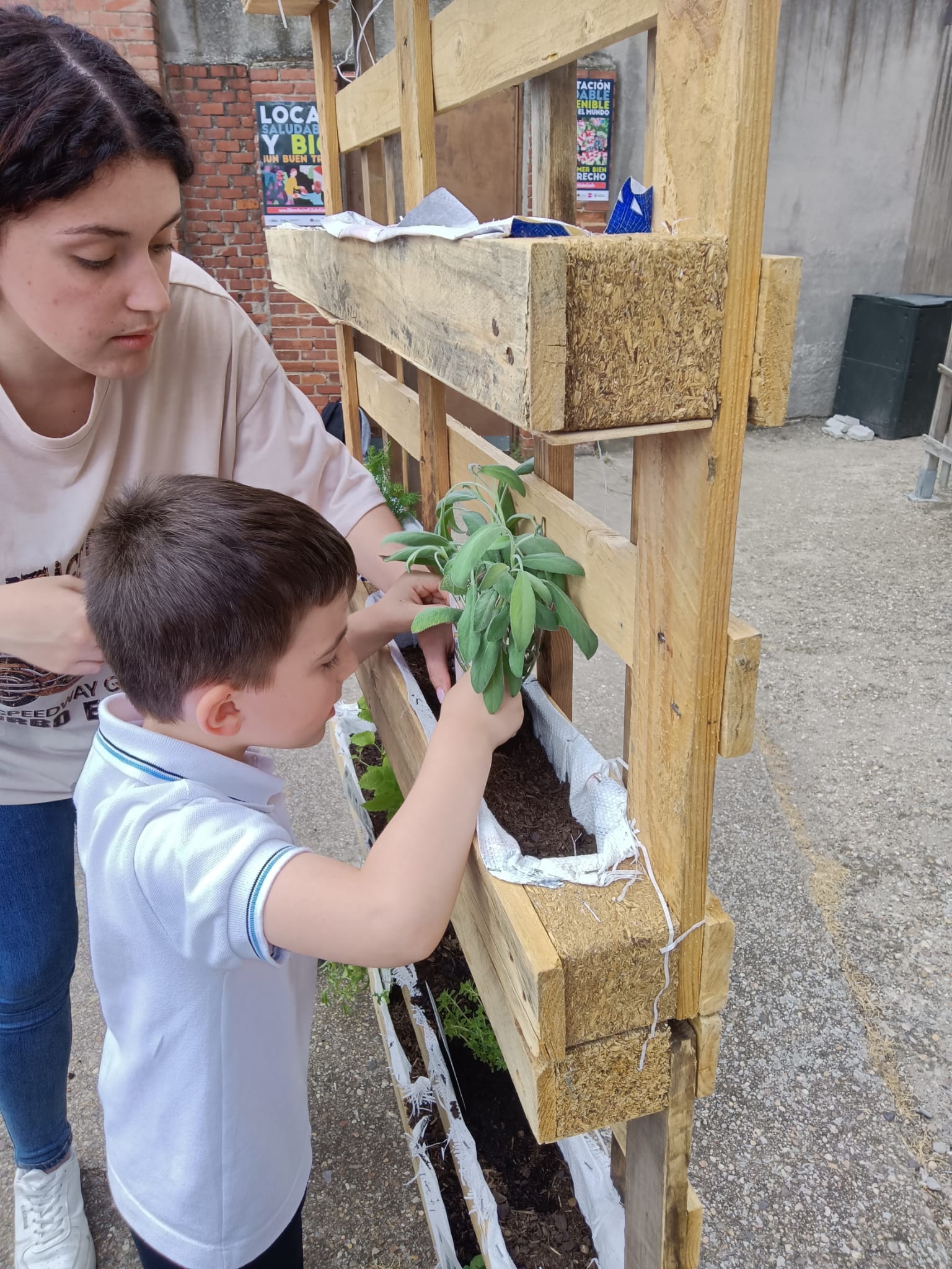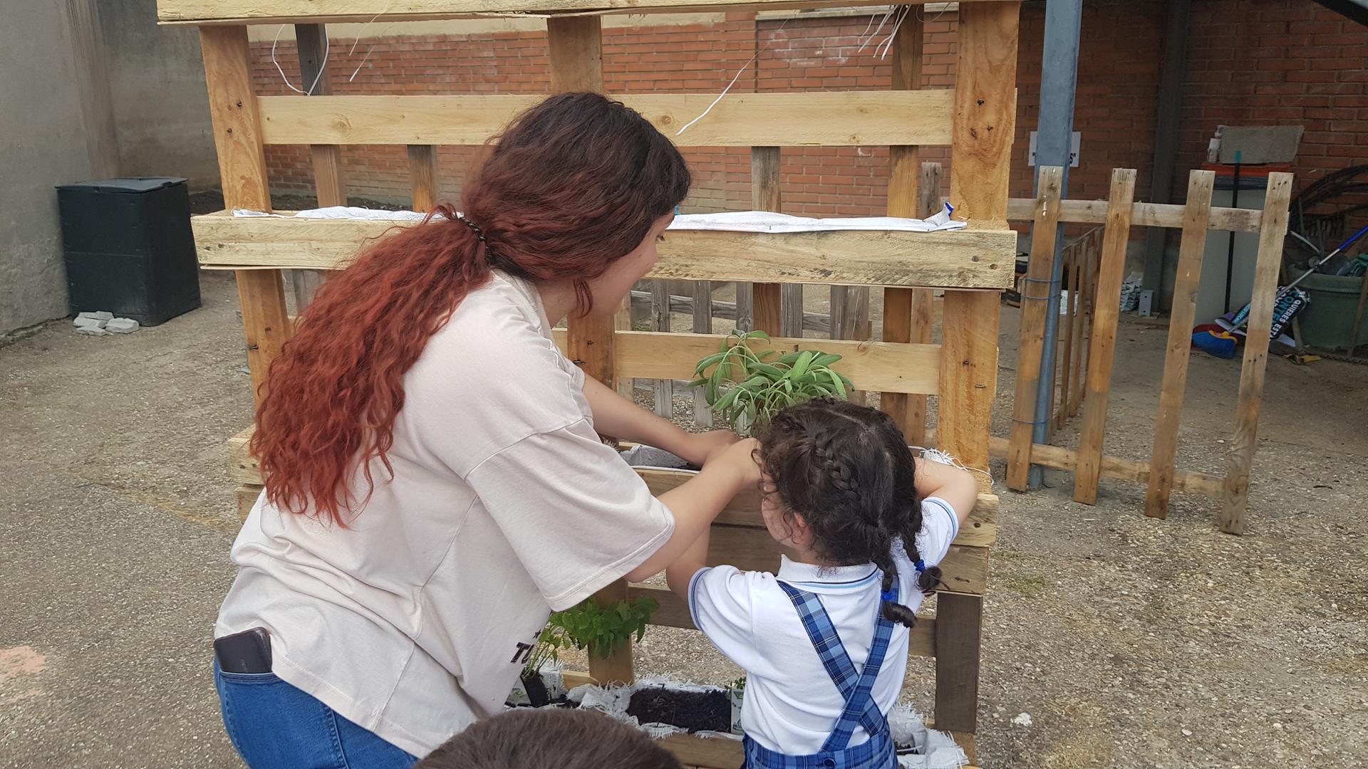Para concluir, qué mejor imagen que ver a los mayores, alumnos y profesores, explicar a los más pequeños lo que han construido y que con una gran ilusión planten juntos las plantas que dan vida a estos jardines verticales. ¡Sin palabras!