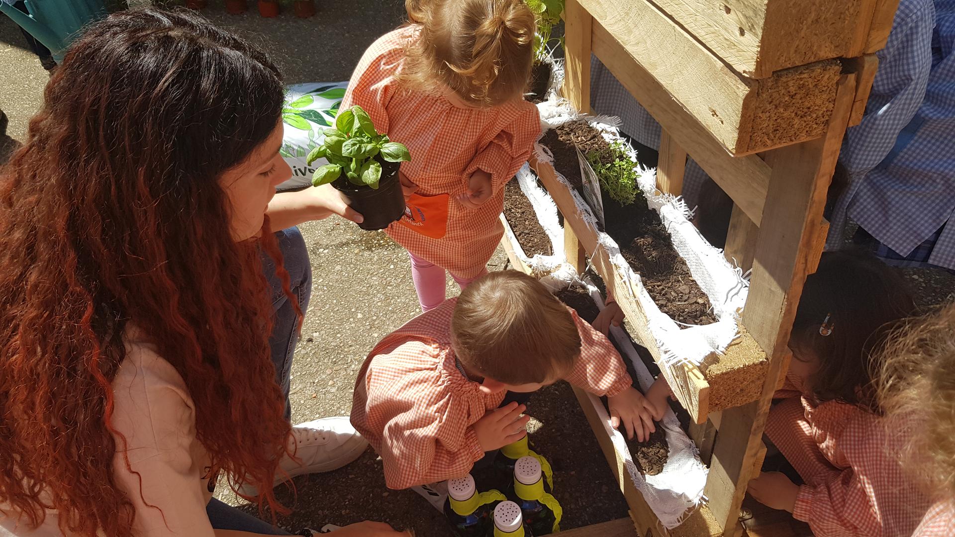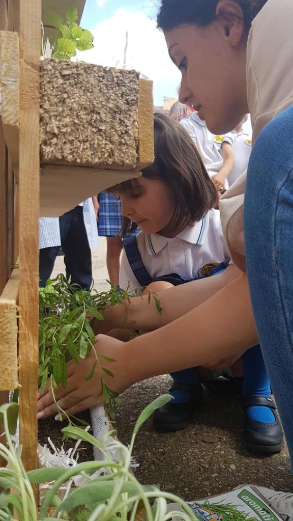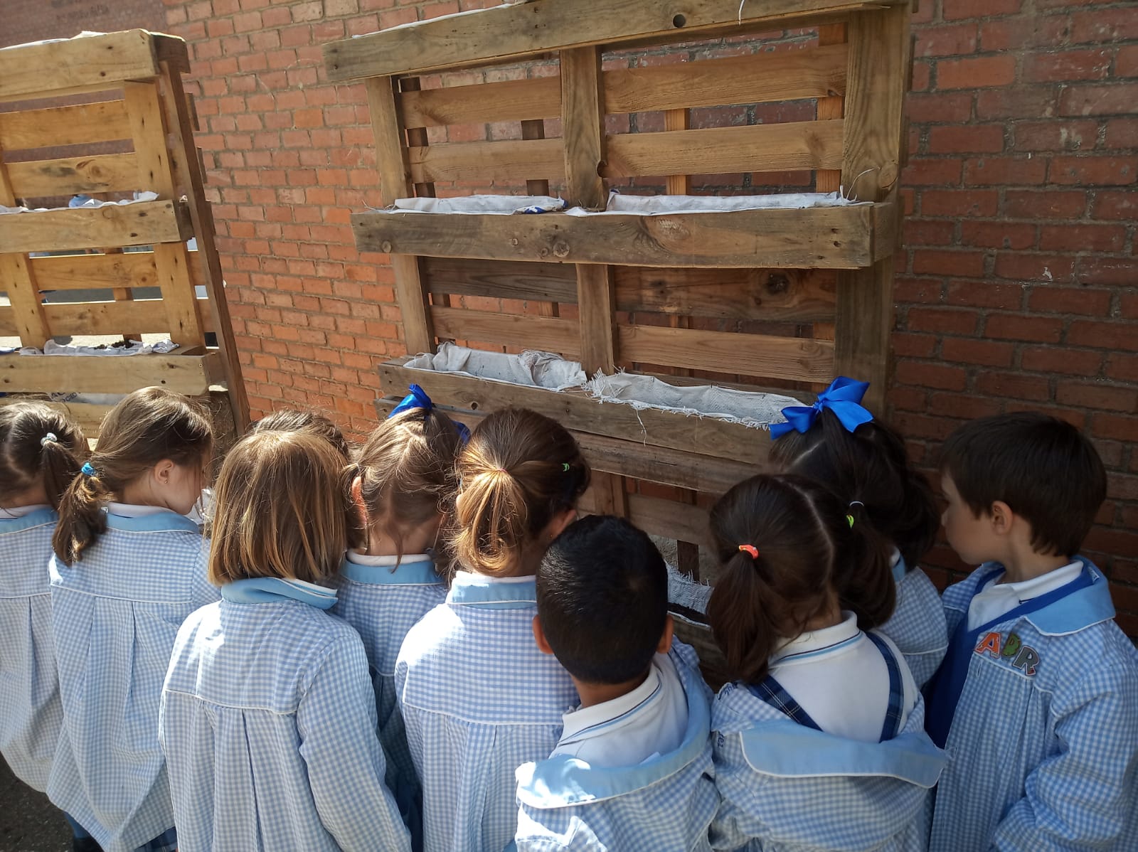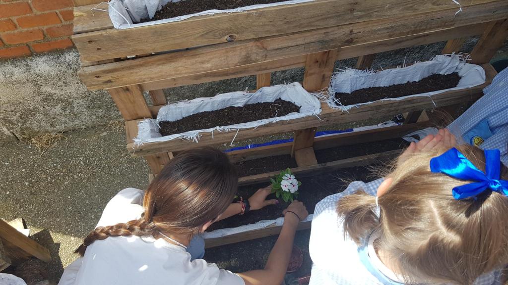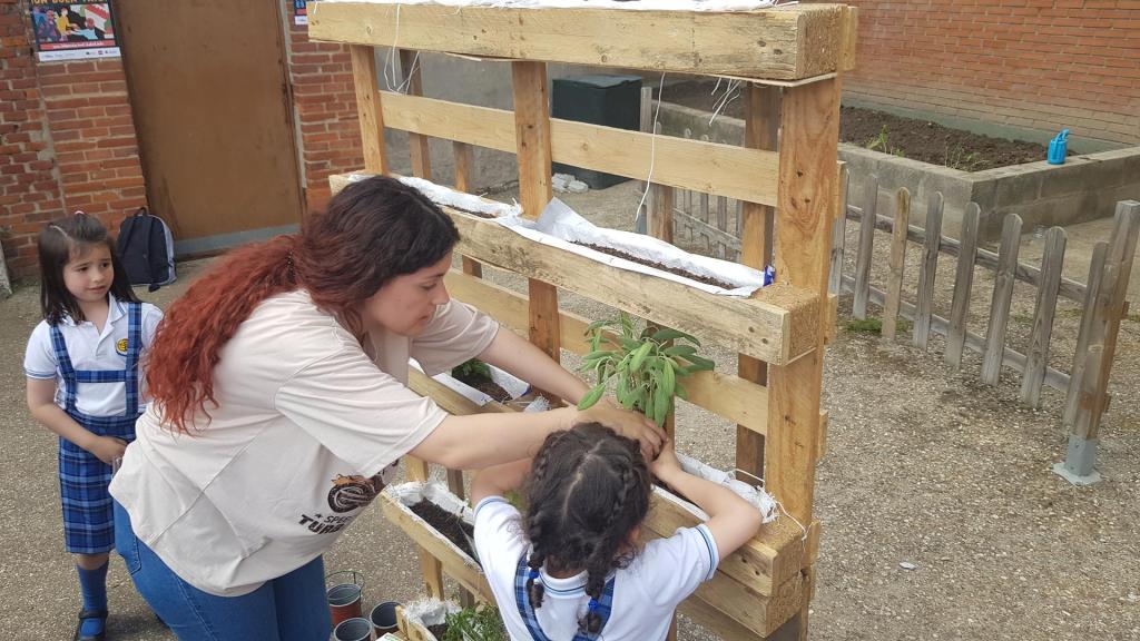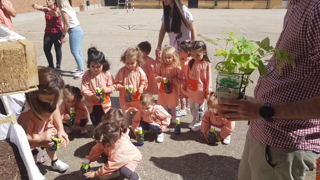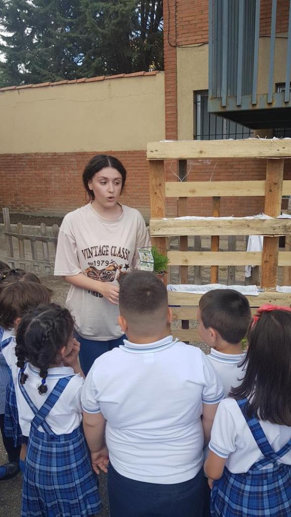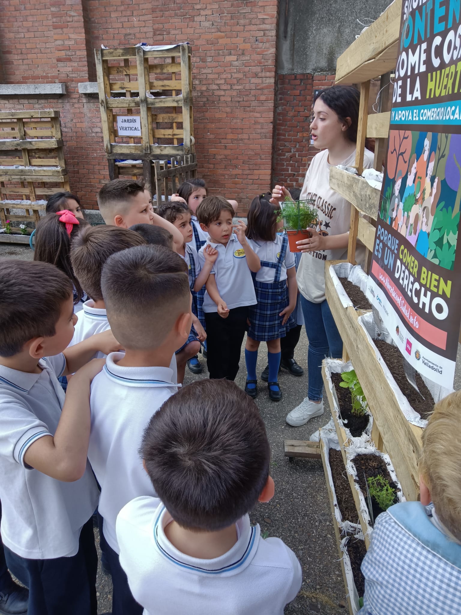 Para concluir, qué mejor imagen que ver a los mayores, alumnos y profesores, explicar a los más pequeños lo que han construido y que con una gran ilusión planten juntos las plantas que dan vida a estos jardines verticales. ¡Sin palabras!