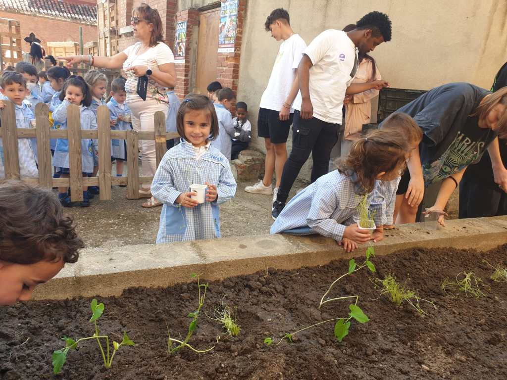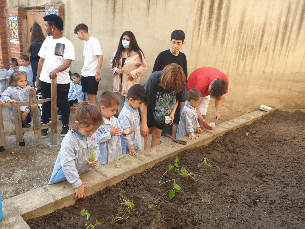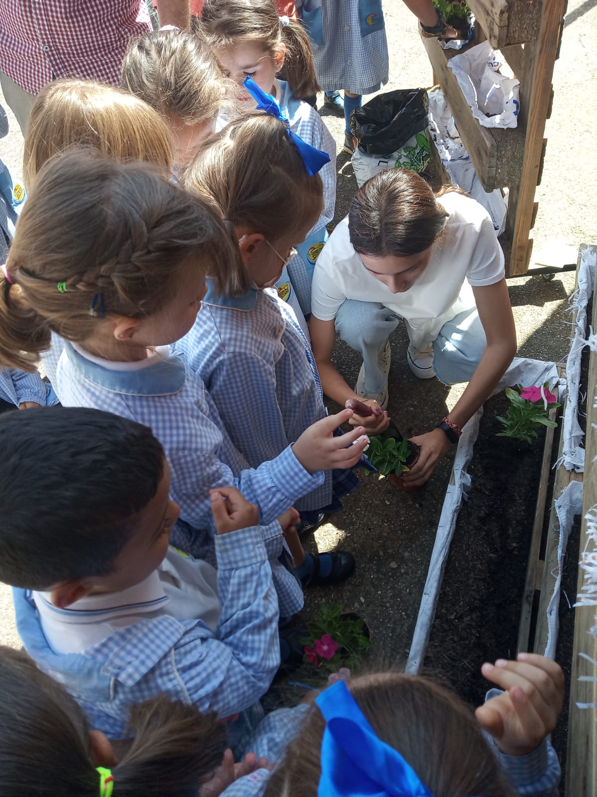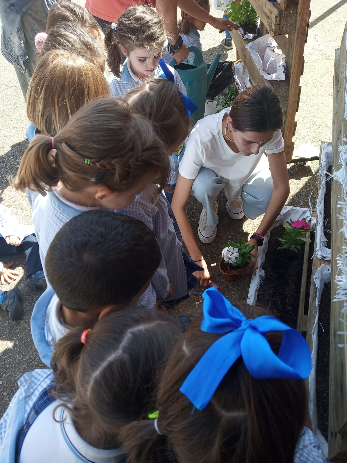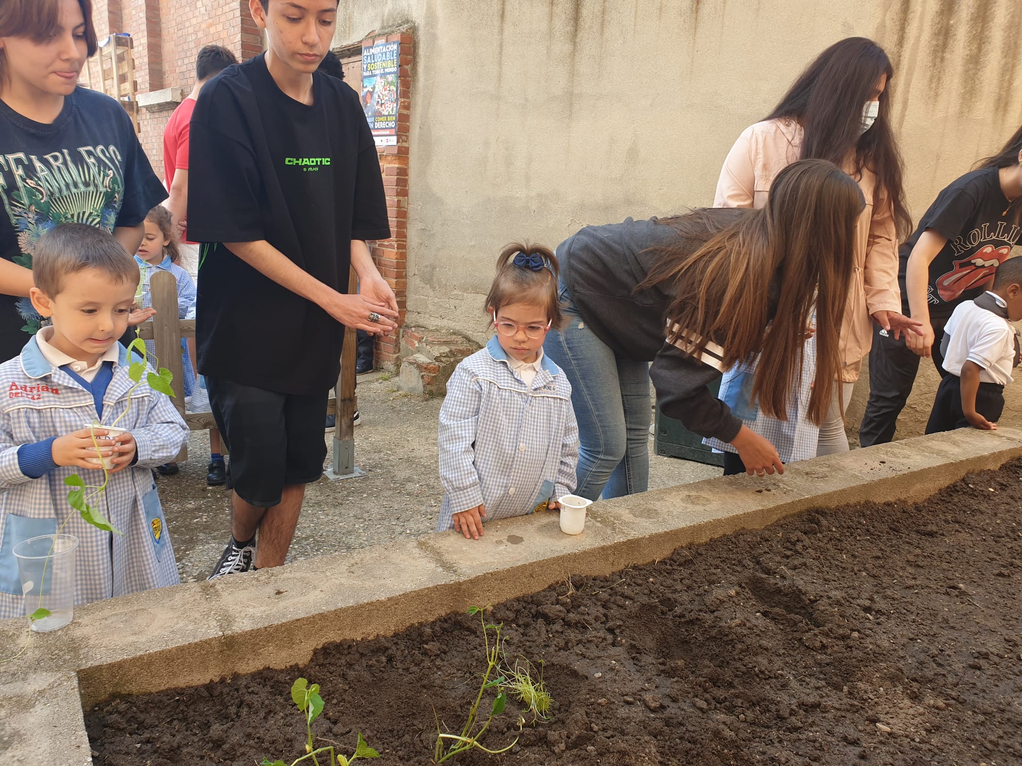 Para comenzar, los alumnos de Educación Infantil, trajeron sus pequeñas plantas que han estado cuidando en el aula durante el curso, para plantarlas en el Huerto Escolar. Otro proyecto que año tras año hace las delicias de los más pequeños. Para ello, en este caso contaron con la inestimable colaboración de los alumnos de 4º ESO, que lo habían estado acondicionando con mucho cariño días antes.
