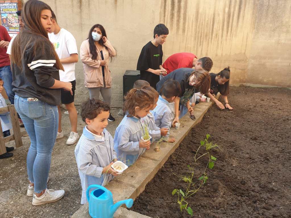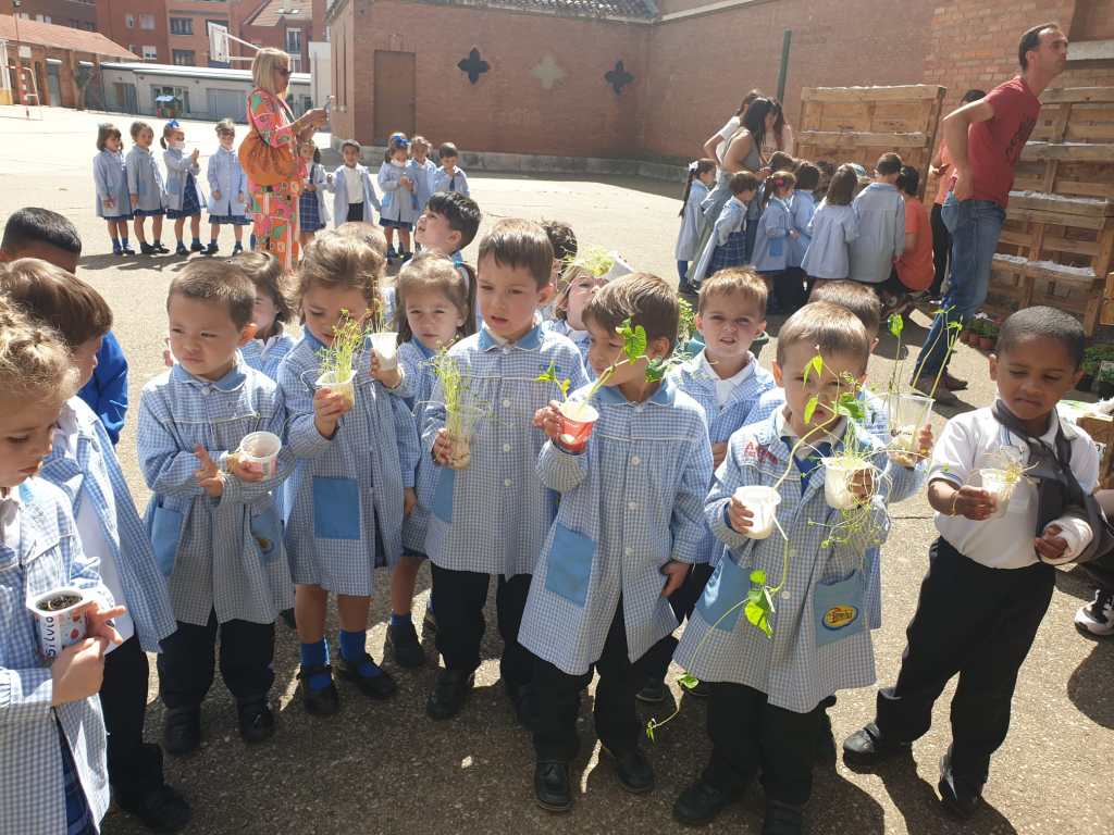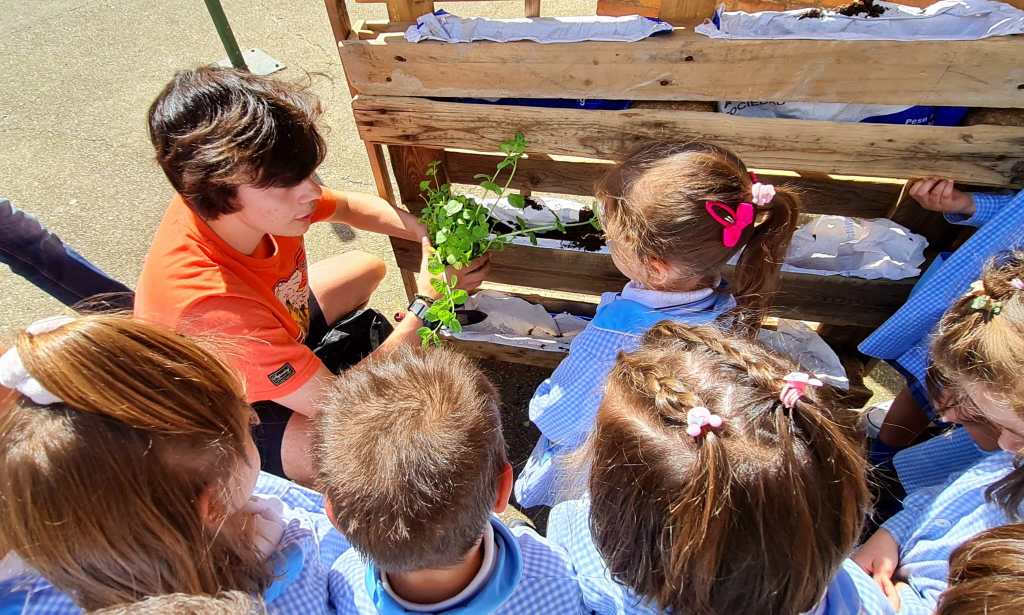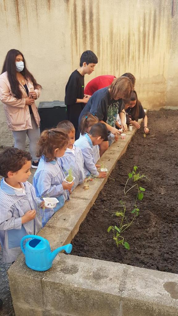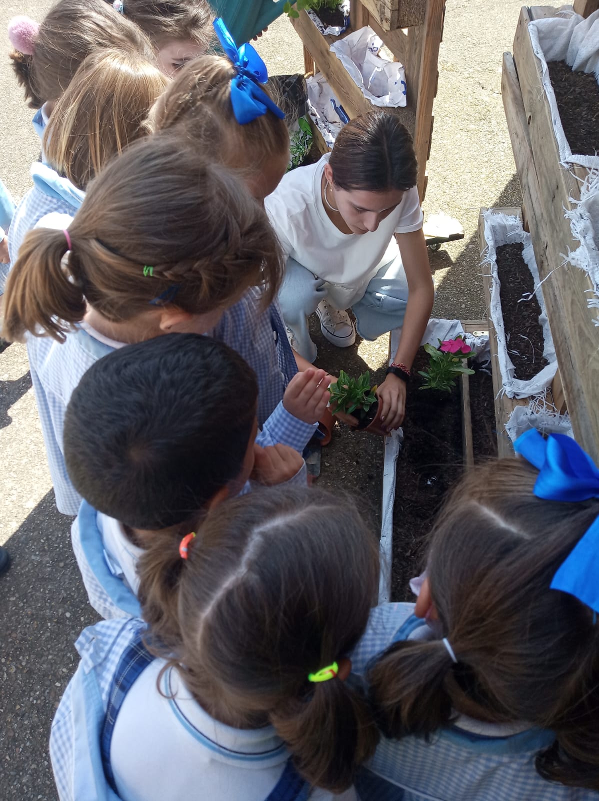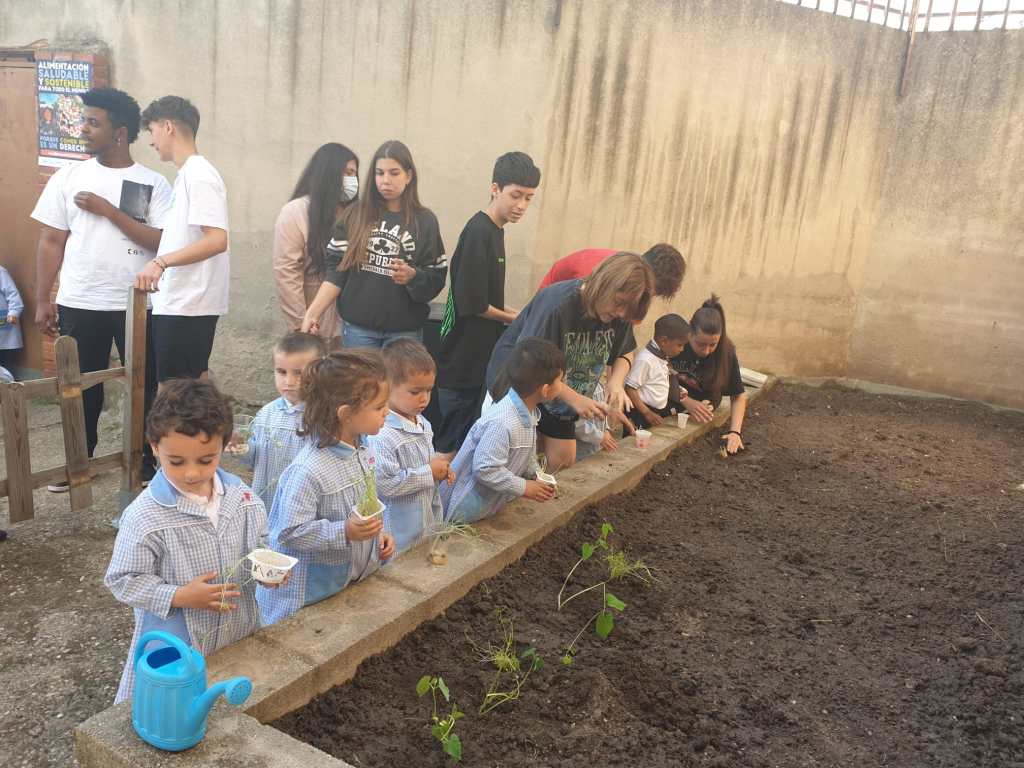 Para comenzar, los alumnos de Educación Infantil, trajeron sus pequeñas plantas que han estado cuidando en el aula durante el curso, para plantarlas en el Huerto Escolar. Otro proyecto que año tras año hace las delicias de los más pequeños. Para ello, en este caso contaron con la inestimable colaboración de los alumnos de 4º ESO, que lo habían estado acondicionando con mucho cariño días antes.