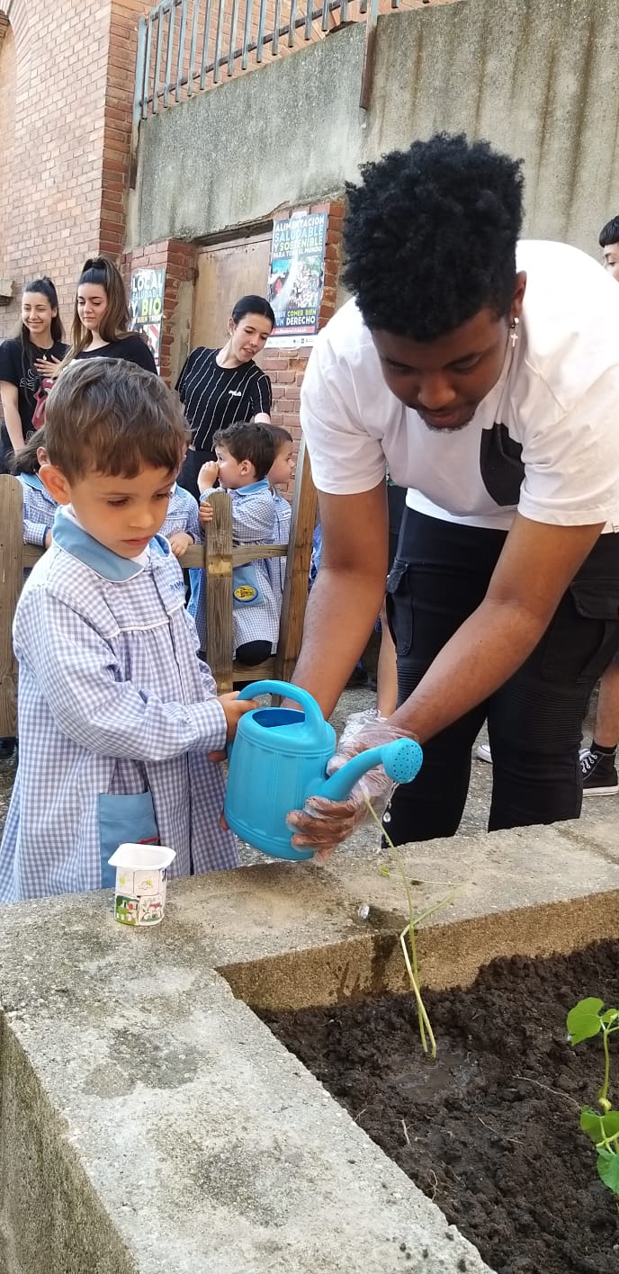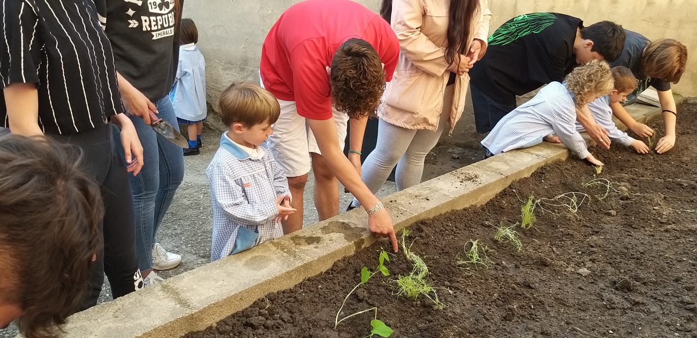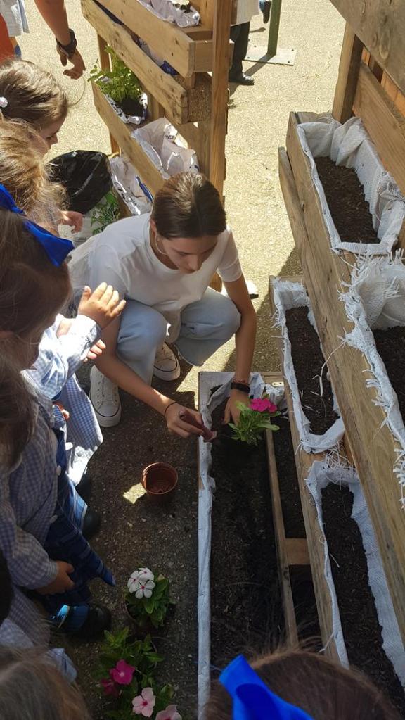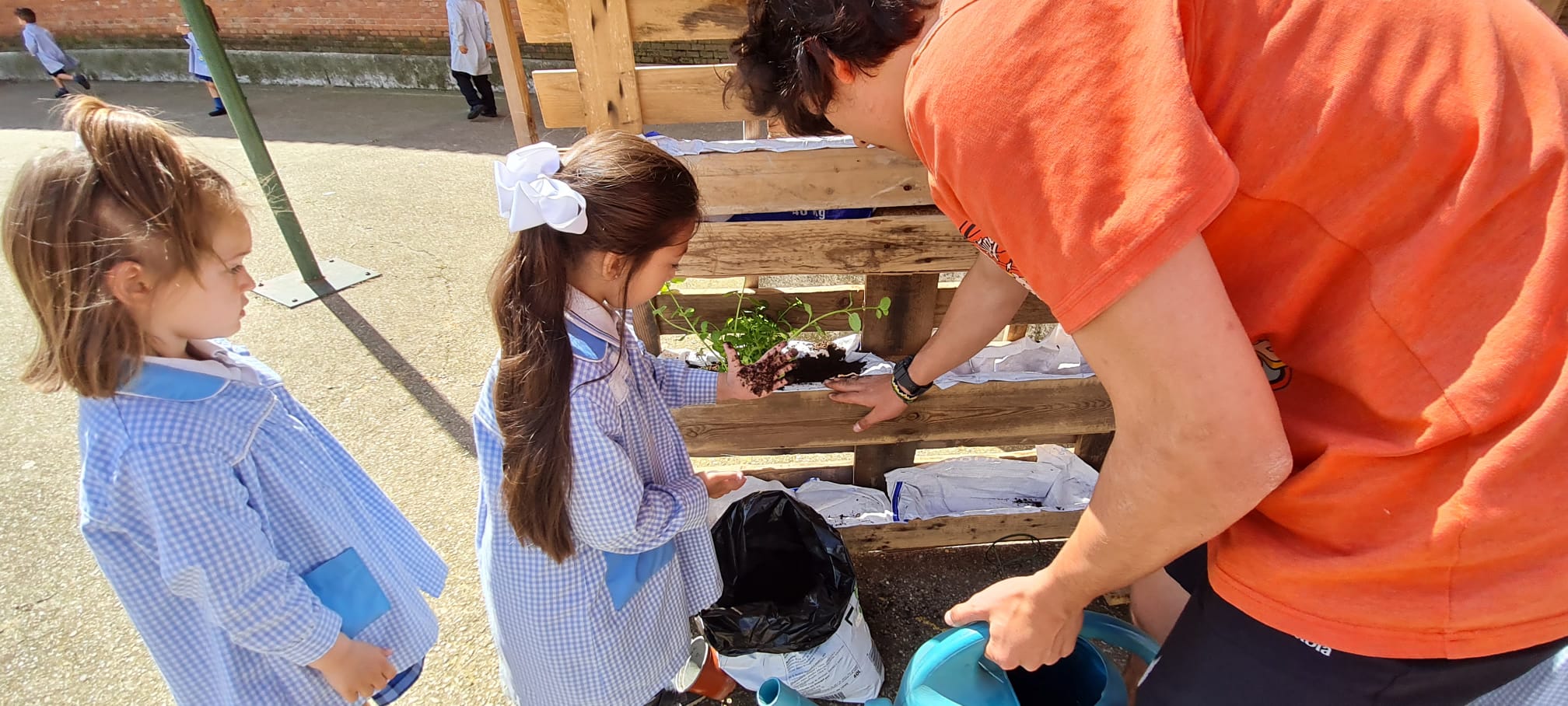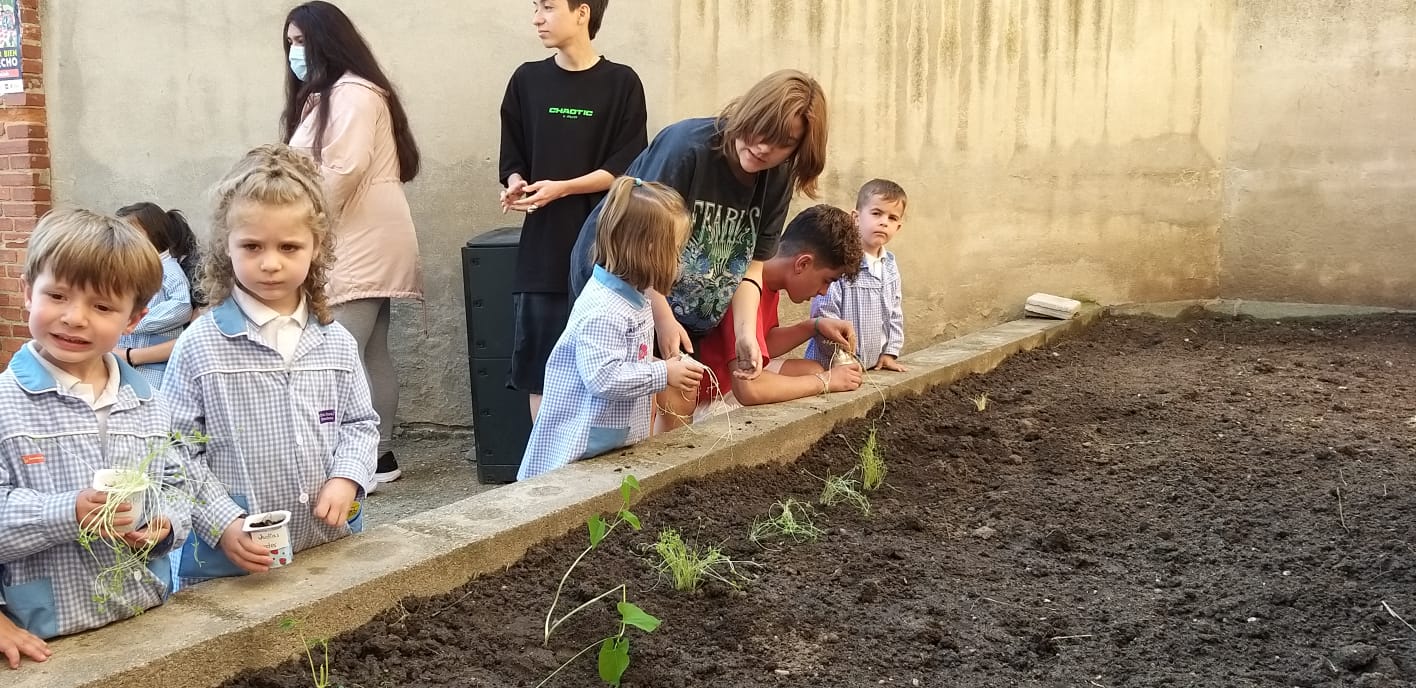 Para comenzar, los alumnos de Educación Infantil, trajeron sus pequeñas plantas que han estado cuidando en el aula durante el curso, para plantarlas en el Huerto Escolar. Otro proyecto que año tras año hace las delicias de los más pequeños. Para ello, en este caso contaron con la inestimable colaboración de los alumnos de 4º ESO, que lo habían estado acondicionando con mucho cariño días antes.