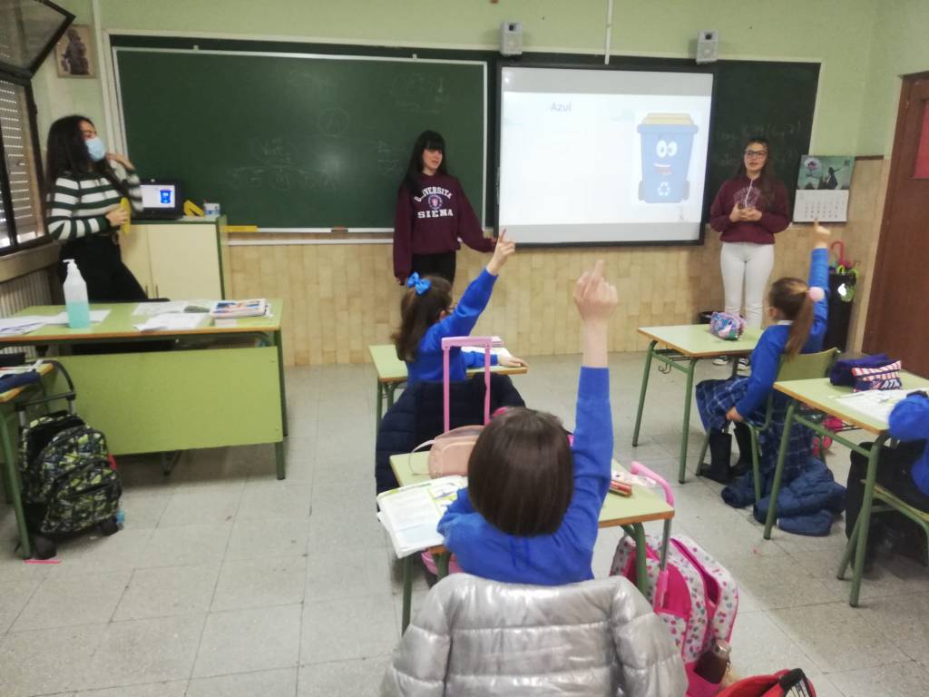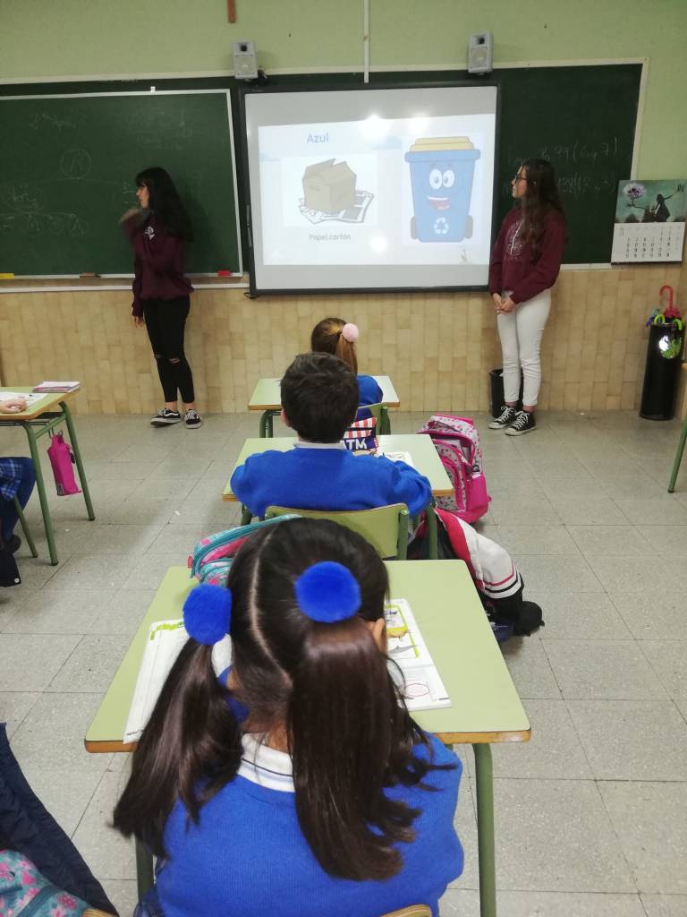 Por todas las clases de Educación Primaria fuimos hablando de los contenedores de reciclaje: de sus usos, de su forma correcta de utilizarlos y de los beneficios que conlleva reciclar.