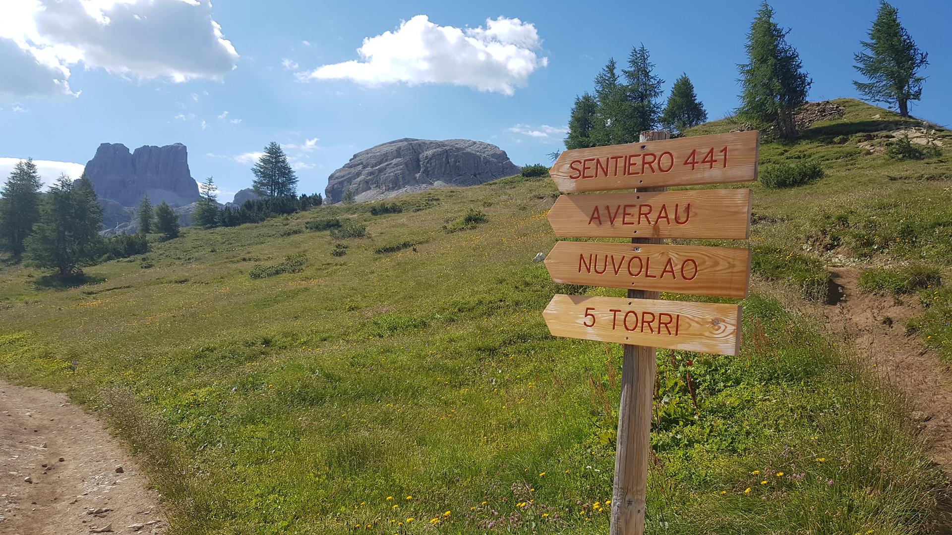 La ruta parte del aparcamienro del Paso de Falzarego a 2109 metros de altitud, donde tomaremos, junto con bastantes senderistas, un sendero bien marcado hasta el Refugio de Averau situado a 2413 metros. Se trata de una ruta bastante turística.