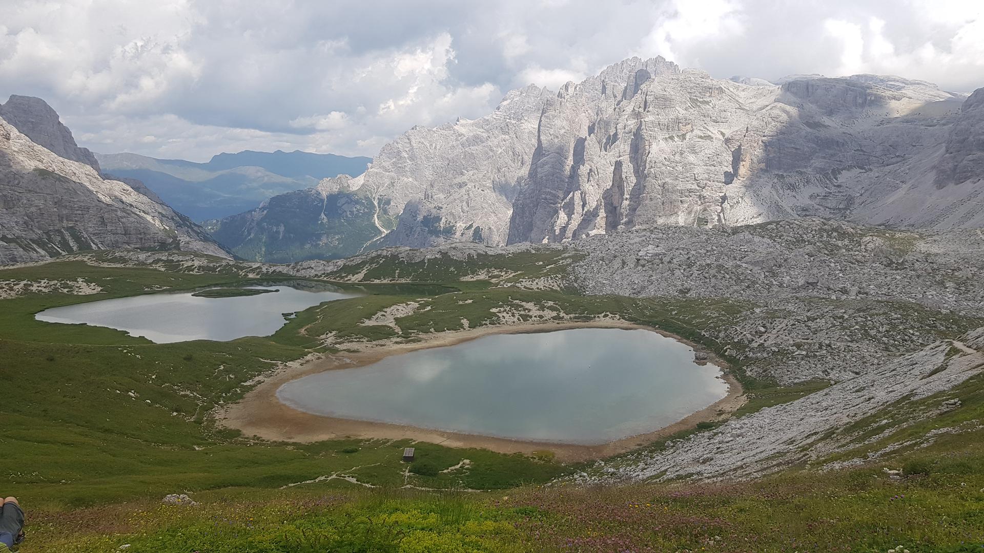 Después de contemplar algunos restos de la I Guerra Mundial, descendemos nuevamente hasta el collado y bajaremos varios metros de desnivel a traves de un facil camino dejando a nuestra derecha los lagos de Piani Inferiori y Piani Superiori. El azul de estos lagos hace que las fotos salgan preciosas.