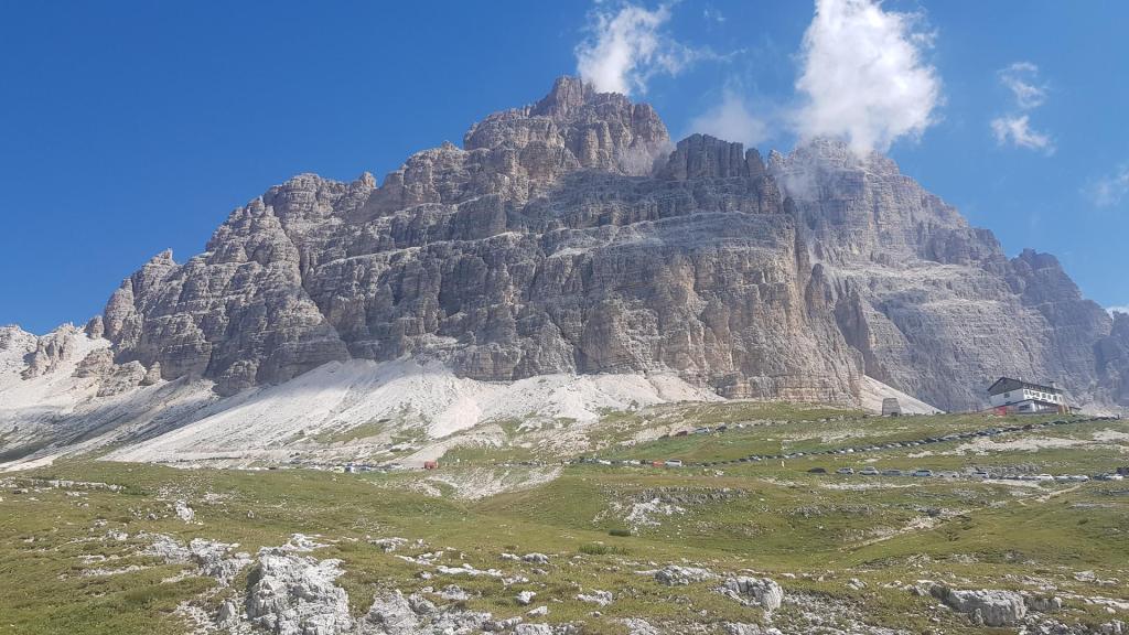 Sólo unos minutos más y llegamos al Refugio Locatelli, a 2405 metros de altitud, donde podemos admirar sus famosas vistas de las Tres Cimas de Lavaredo. ¡Impresionantes!