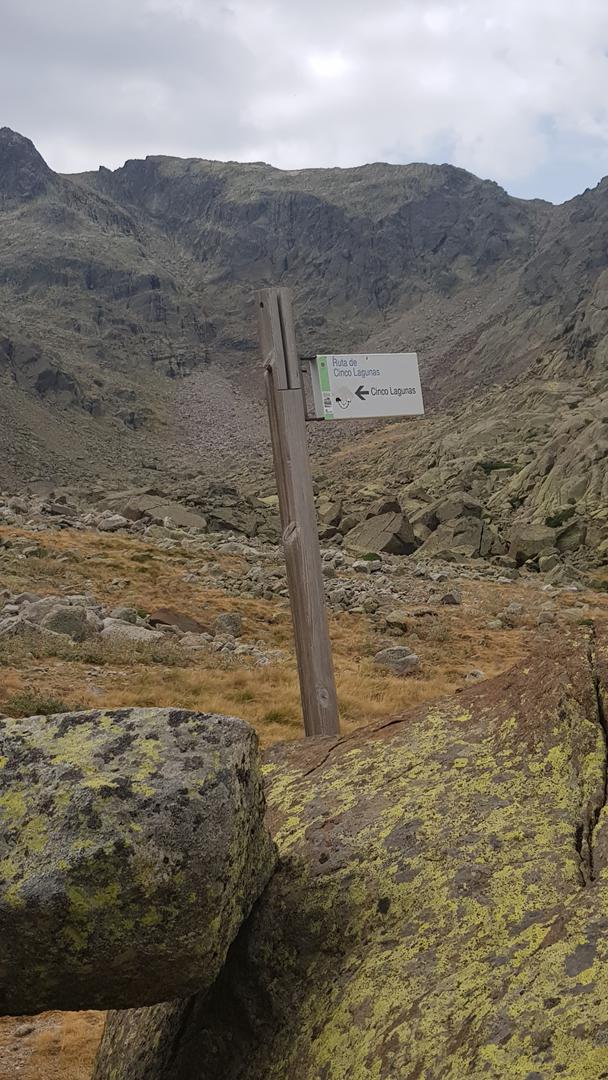 Seguimos subienda hasta una intersección donde encontramos un cartel (1940 metros de altitud) de súbida a 5 lagunas y los hitos … Siempre los hitos…