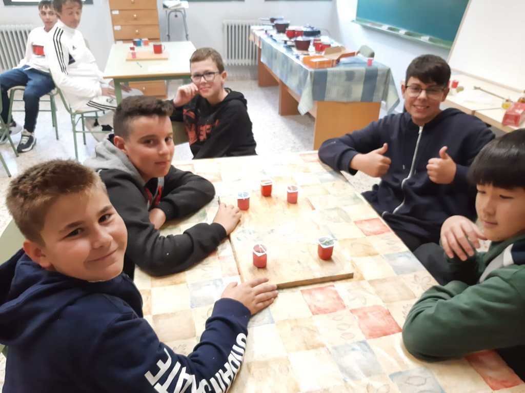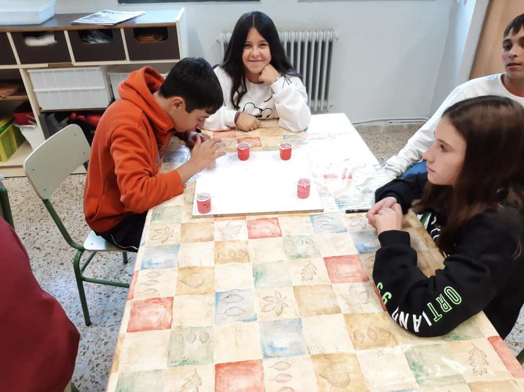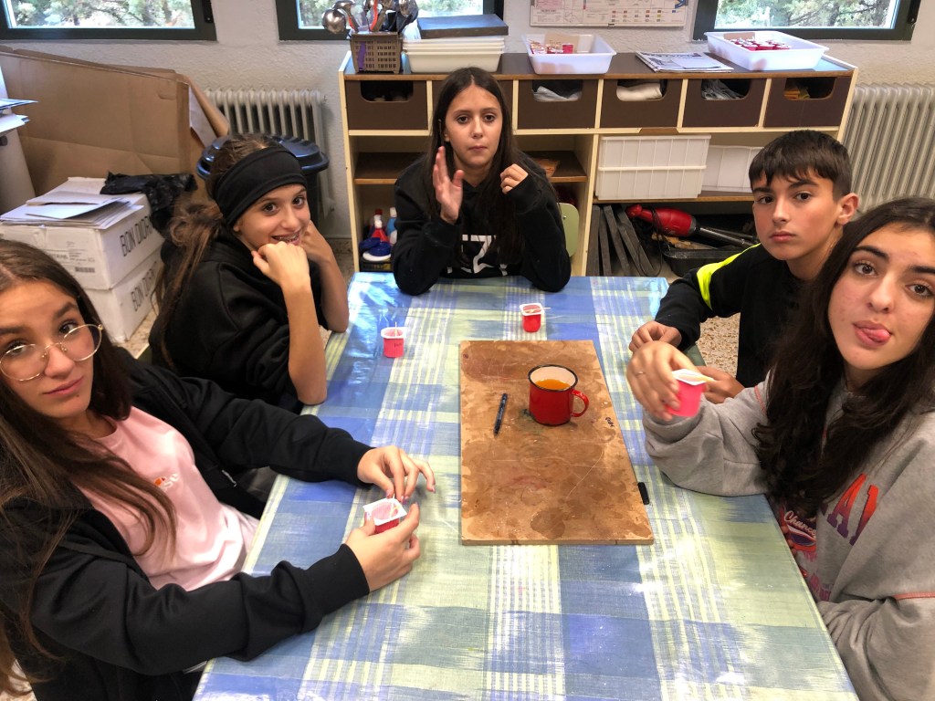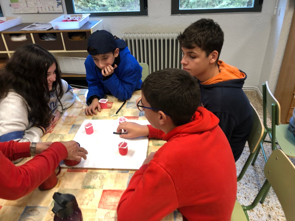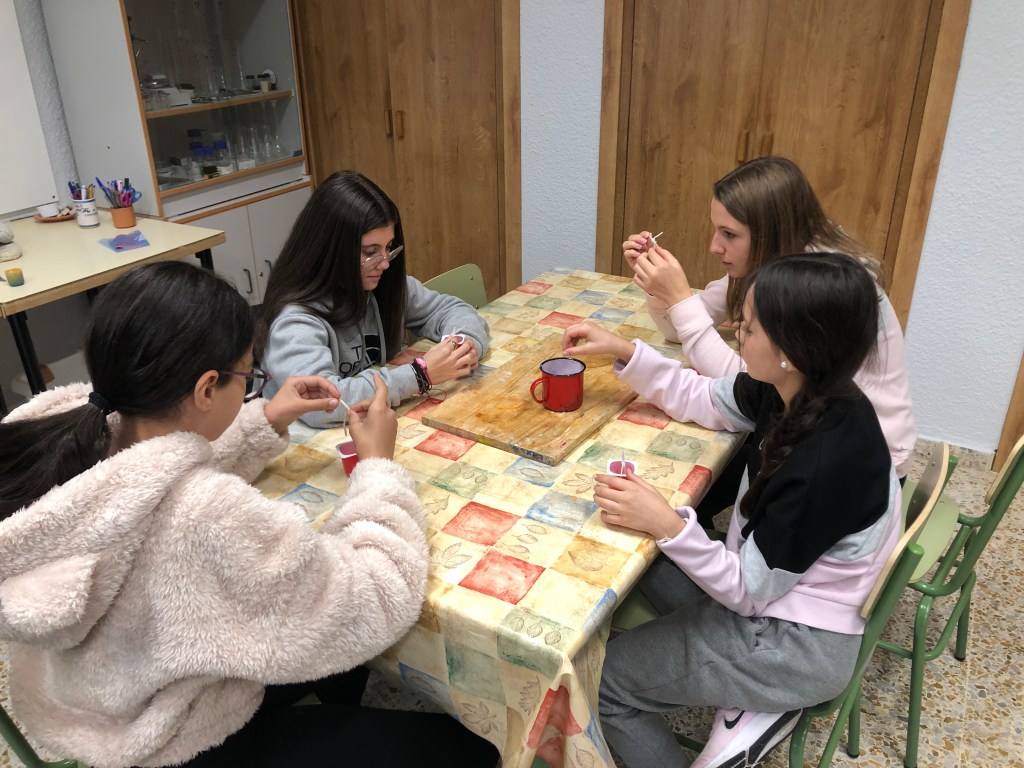 Después de entrar en calor y con ropa seca, se realiza el análisis del agua del embalse midiendo el ph y la turbidez de la misma gracias a una muestra que han cogido in situ los educadores del centro. Con la comida y un ratito de tiempo libre, continuamos la tarde con dos talleres: uno de geocaching y otro de elaboración de velas de parafina.