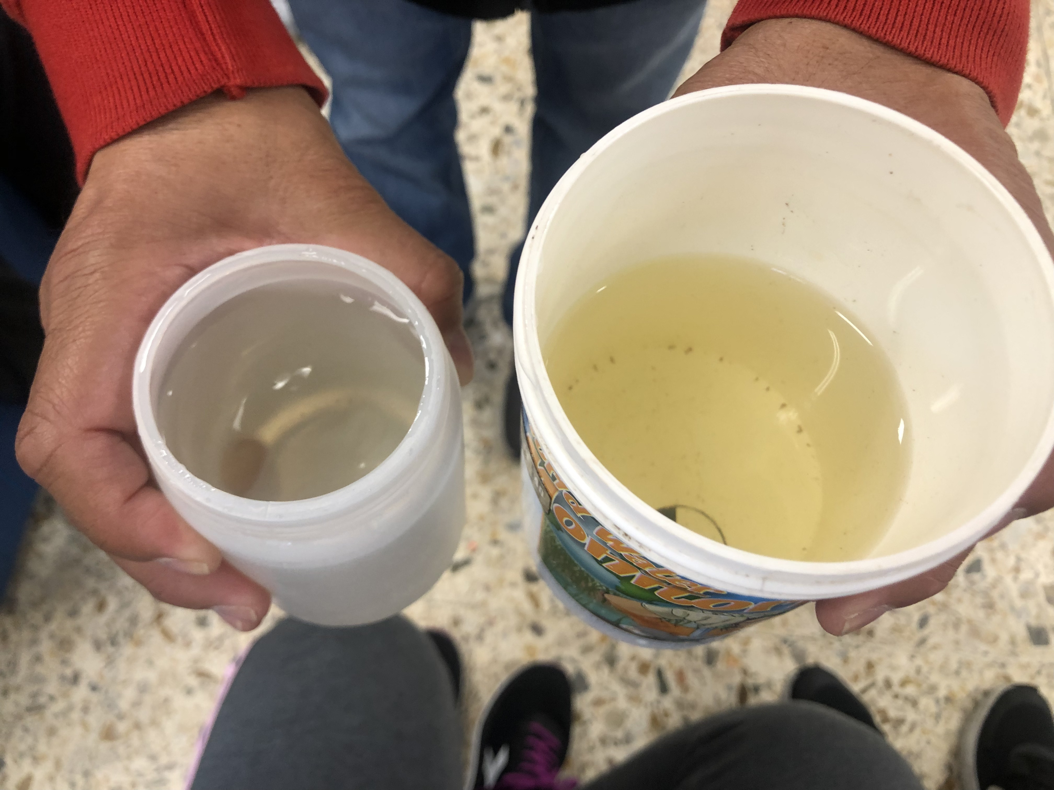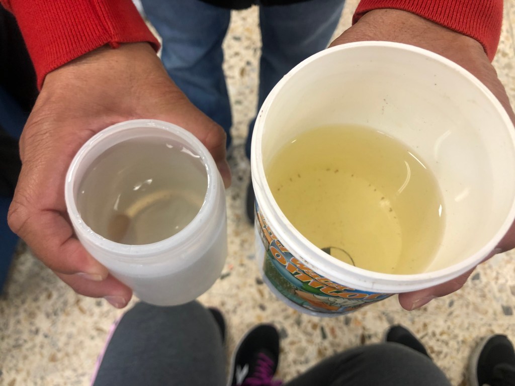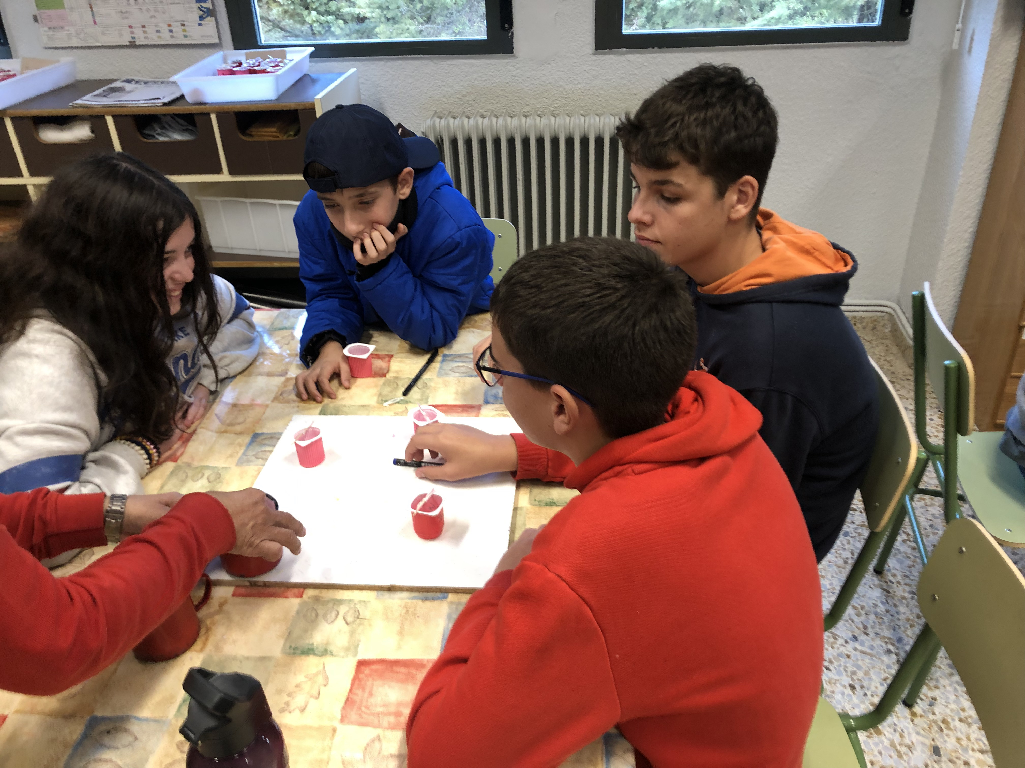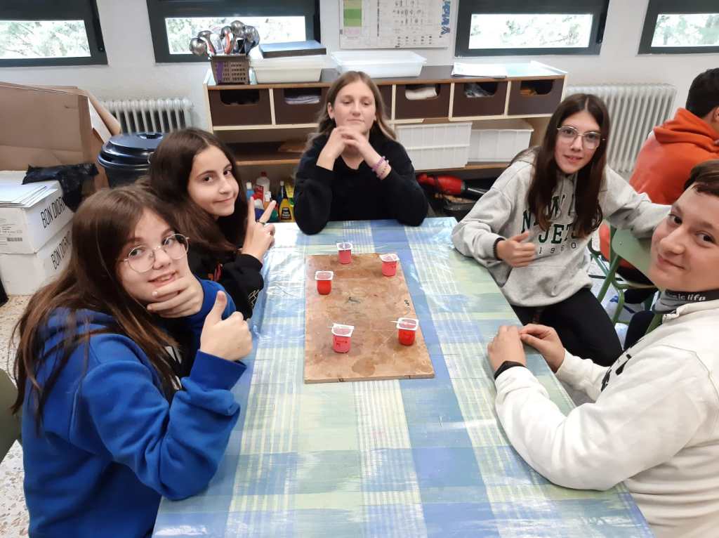 Después de entrar en calor y con ropa seca, se realiza el análisis del agua del embalse midiendo el ph y la turbidez de la misma gracias a una muestra que han cogido in situ los educadores del centro. Con la comida y un ratito de tiempo libre, continuamos la tarde con dos talleres: uno de geocaching y otro de elaboración de velas de parafina.