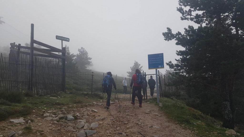 La salida la realizamos desde el Puerto de Navacerrada, situado a 1857 metros de altitud, con un frio que no esperábamos y bajo una niebla persistente que nos ha acompañado desde nuestra salida hasta el aparcamiento.