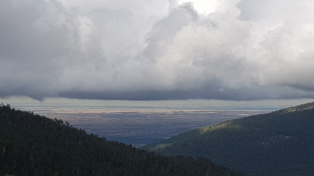 Según bajamos, mirando hacia el Sur podemos contemplar como inmensos telones de niebla se levantan para contemplar un magnífico paisaje.
