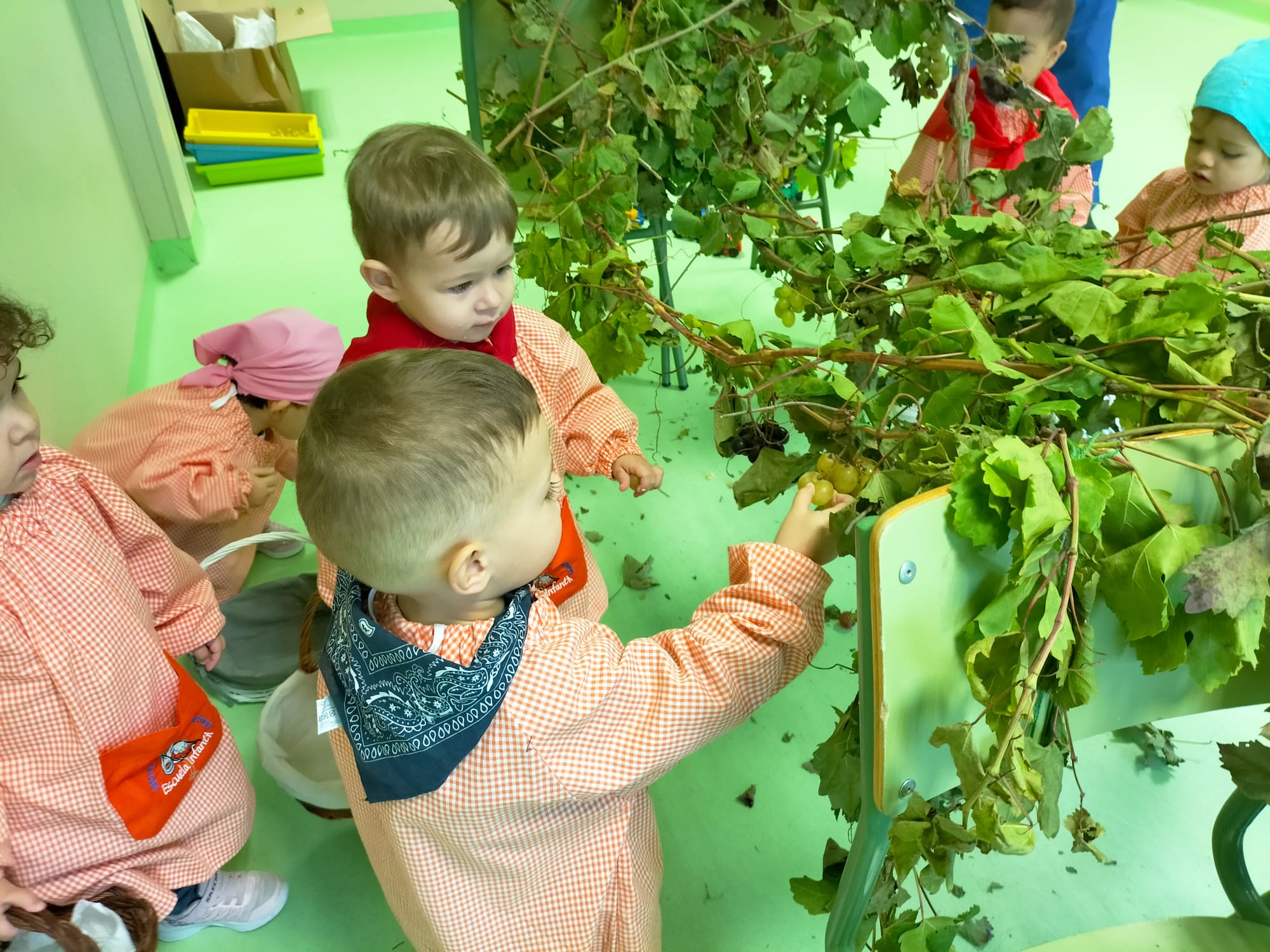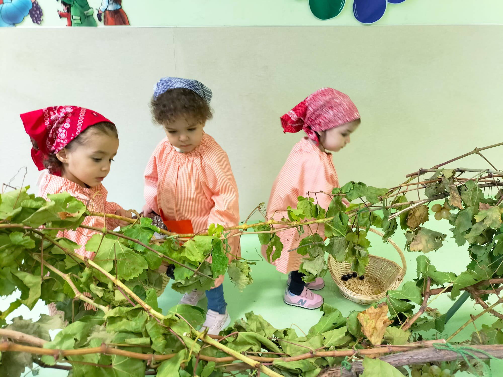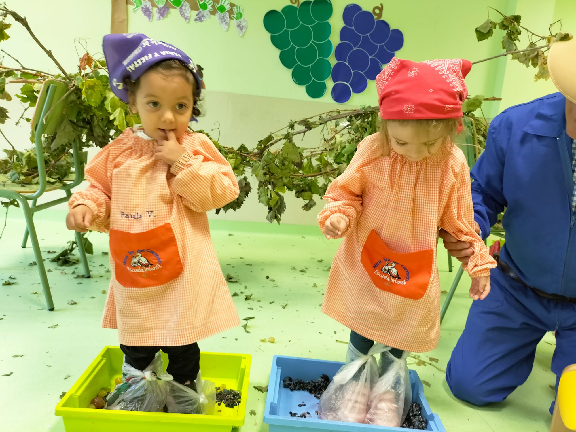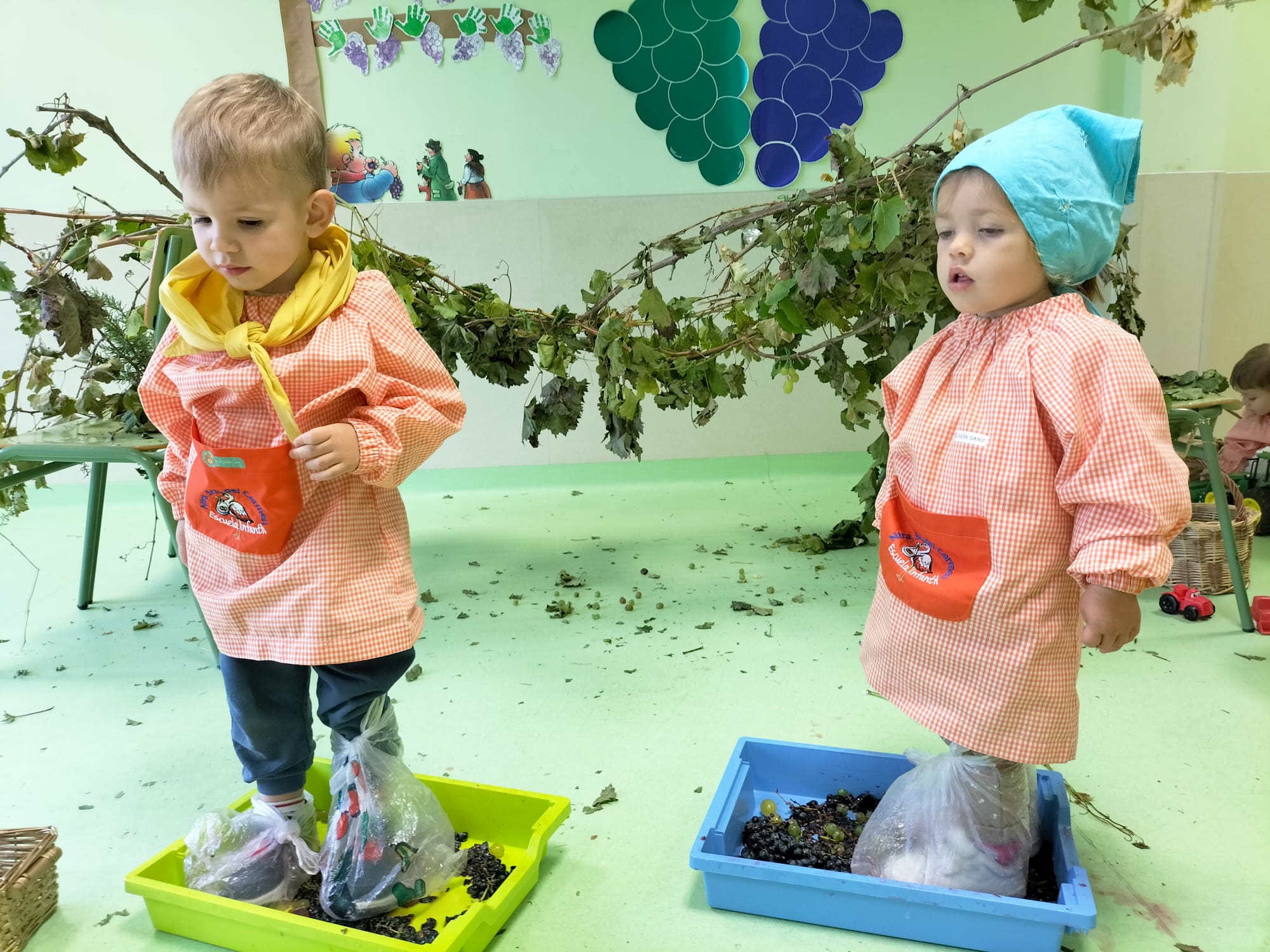 !Vendimiamos! Recogemos las uvas de la Parra y las guardamos en las cestas.