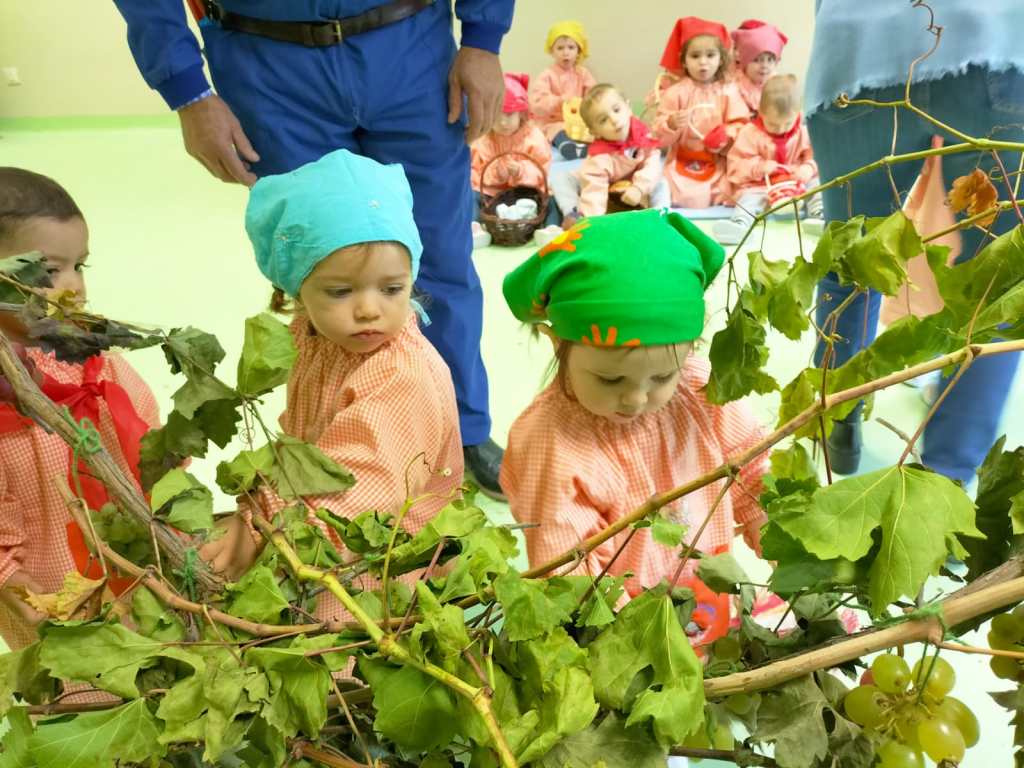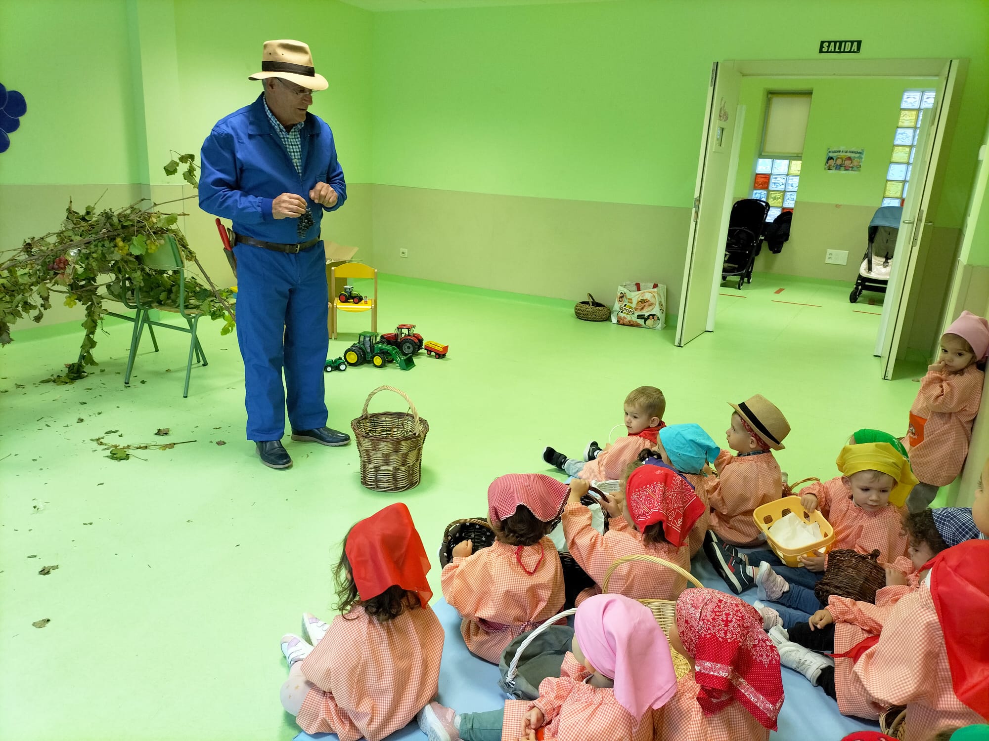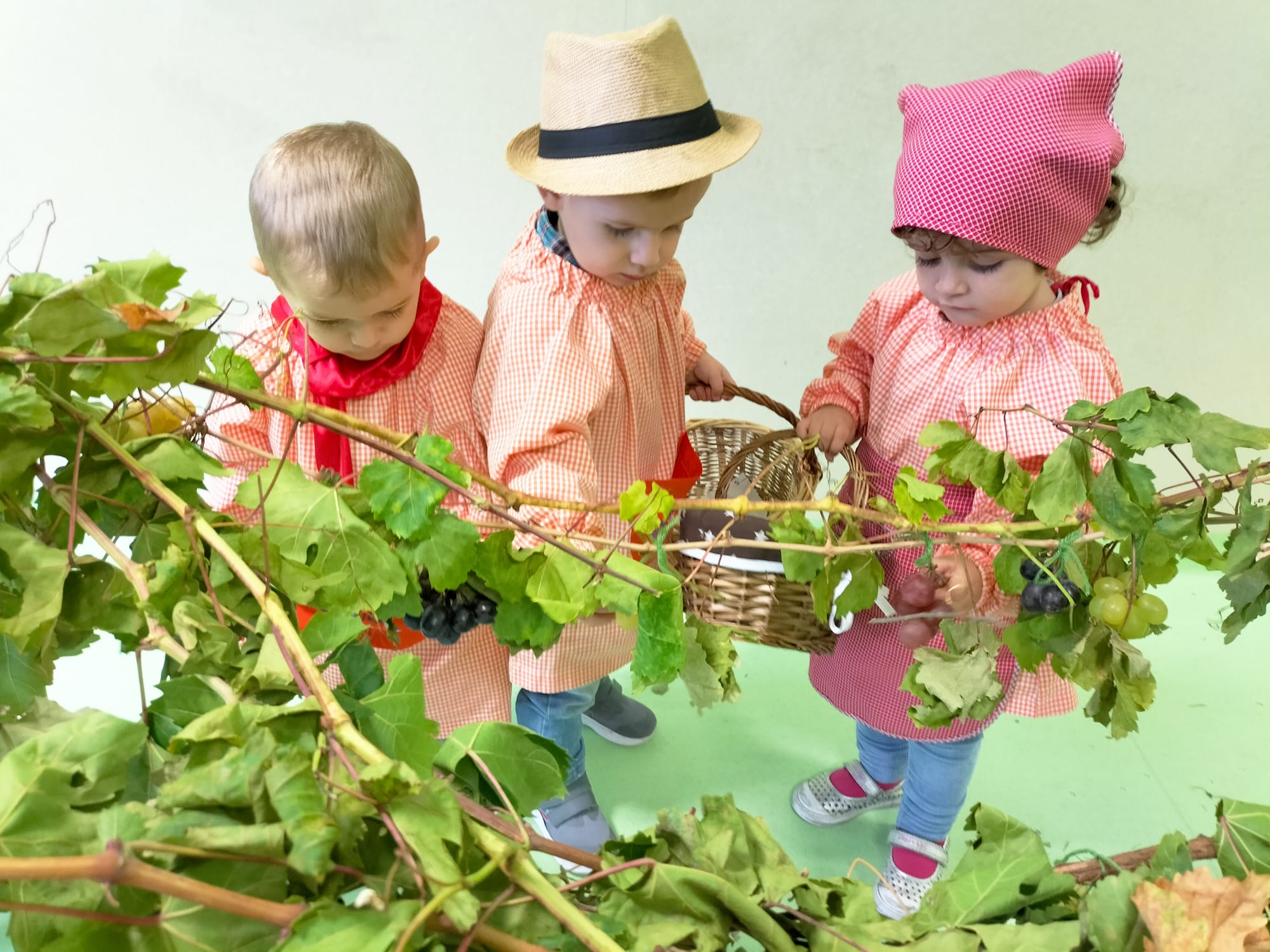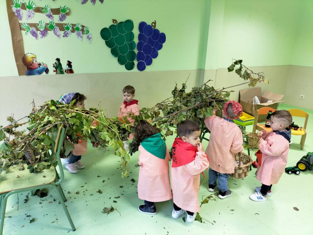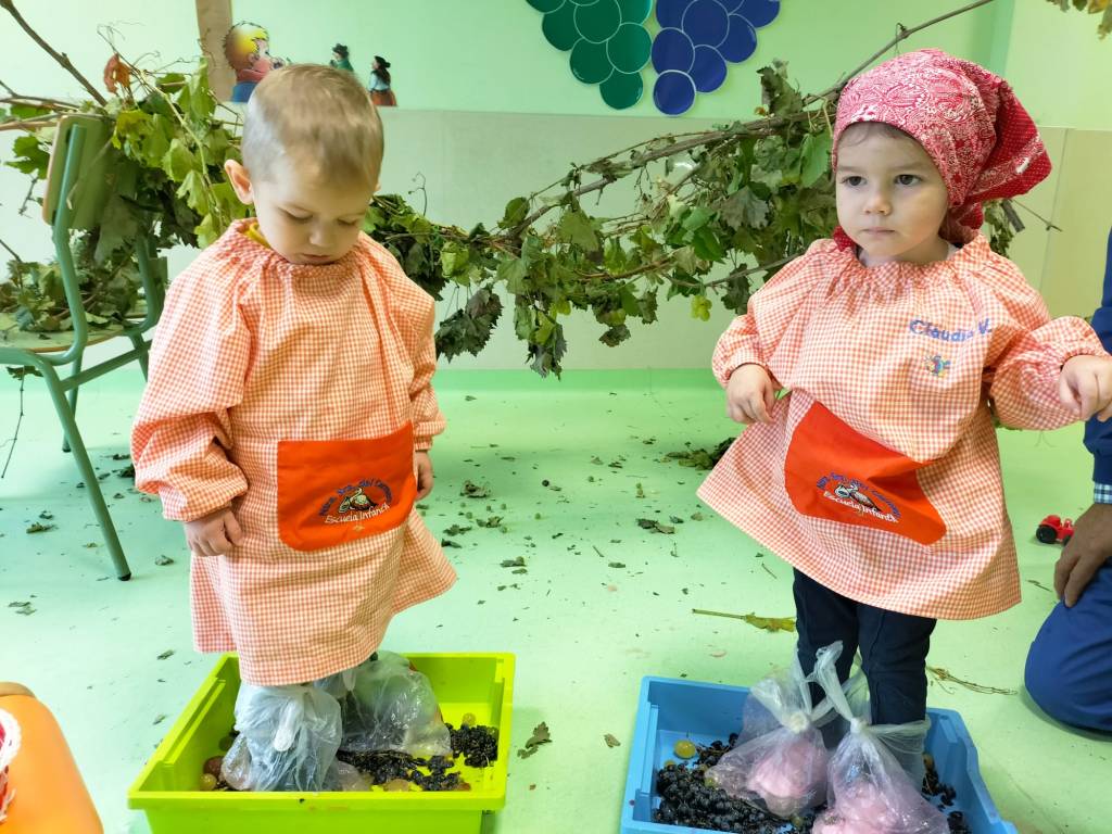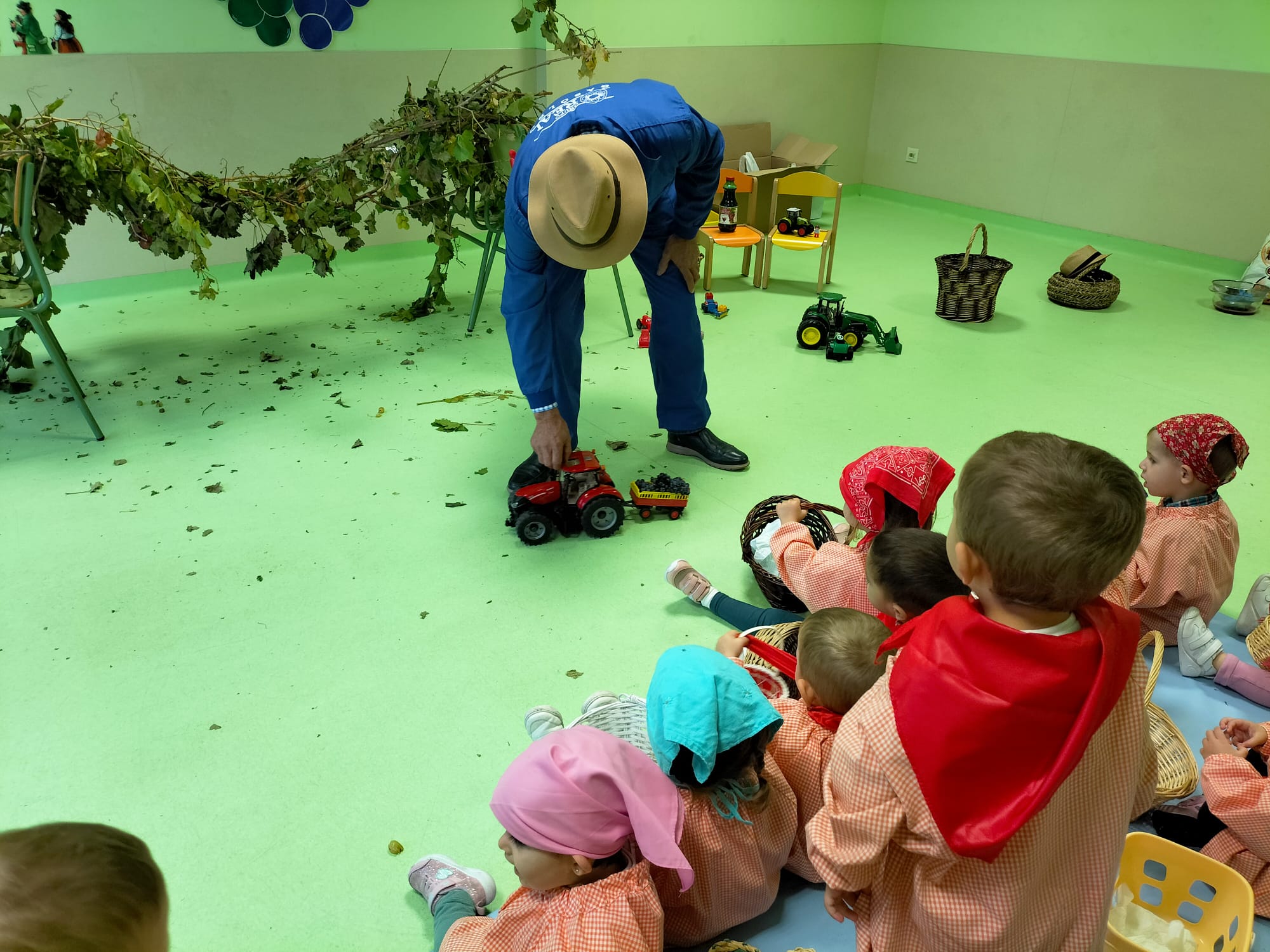 !Vendimiamos! Recogemos las uvas de la Parra y las guardamos en las cestas.