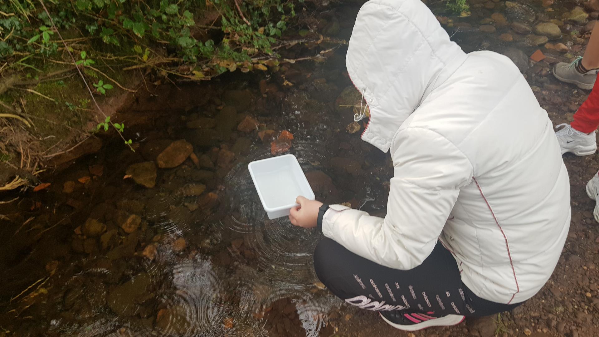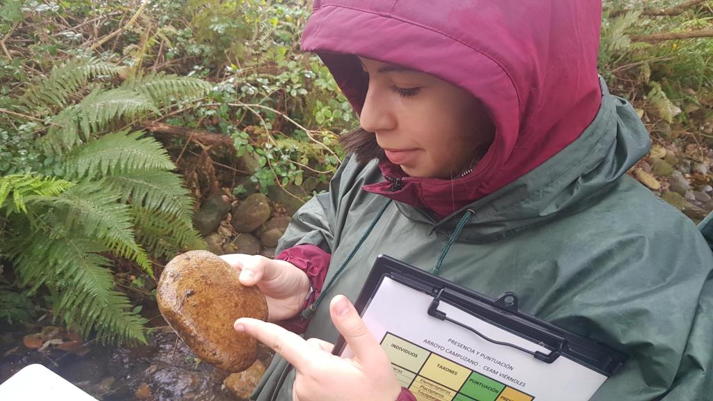 El taller de «Conoce tu rio» se desarrolla en un pequeño arroyo cerca del programa en que evaluamos la calidad de sus aguas a través principalmente de la biodiversidad presente en el mismo. Aunque ha estado lloviendo las capas han hecho que el taller se realizara con normalidad.