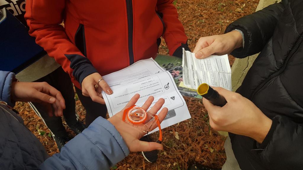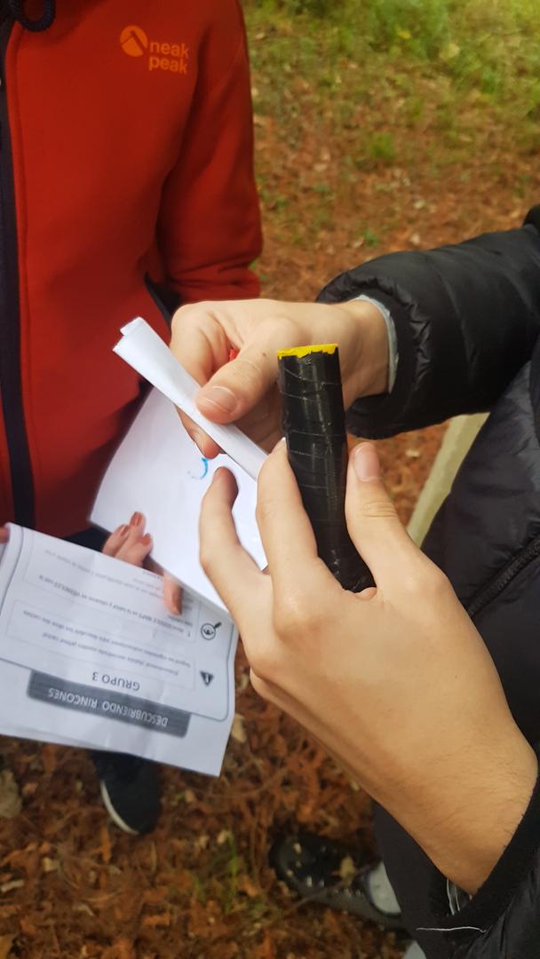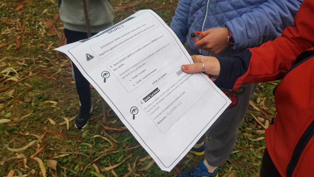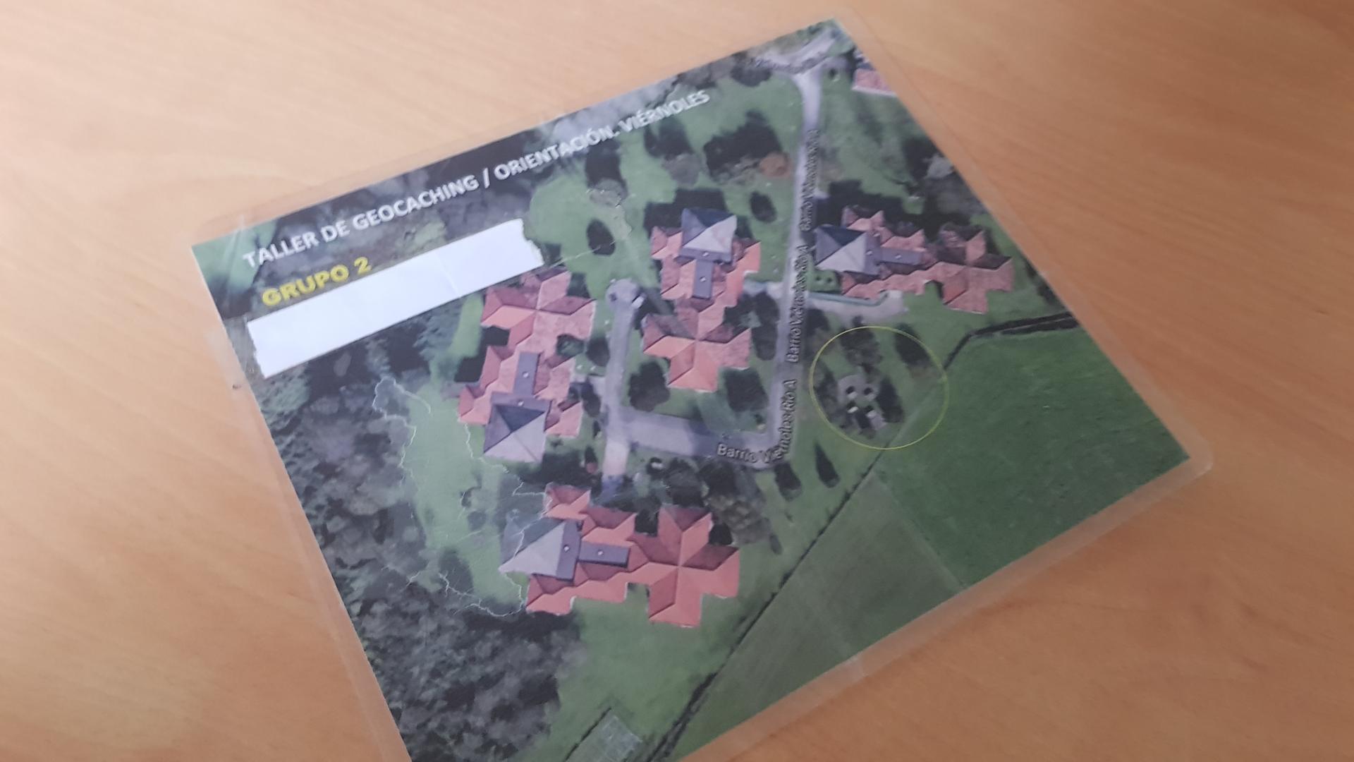 El taller de geocaching lo hemos realizado al aire libre alrededor del Centro. Nos han escondido y hemos tenido que encontrar los llamados “caches o tesoros”, con la ayuda de un plano del lugar, una brújula y una serie de pistas que nos iban suministrando.