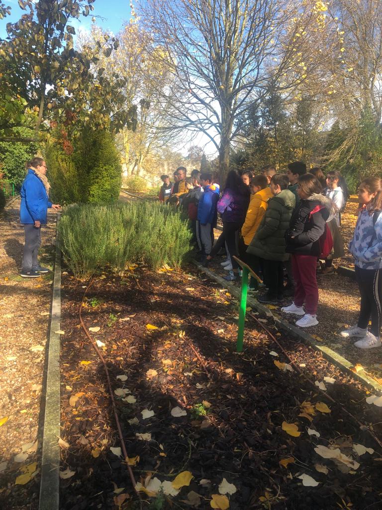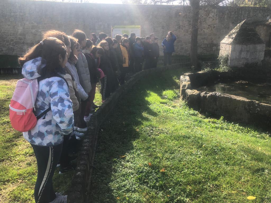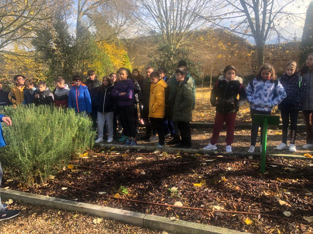 Salimos y nos explican Las Arcas Reales que abastecen de agua el monasterio. Los animales bebían de la charca y las personas desde el caño. Entramos en el jardín botánico donde nos explican los distintos tipos de especies aromáticas y medicinales que se dan en la zona. También nos explican desde las ruinas del monasterio, para conocer como era originariamente el monasterio.