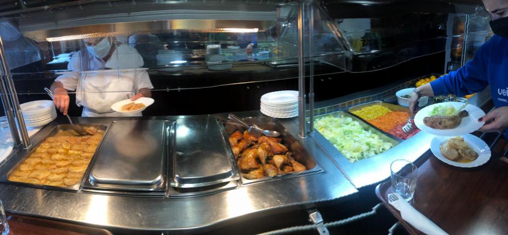Menú del día: patatas a la importancia , pollo asado , ensalada y fruta. ¡Riquísimo!
