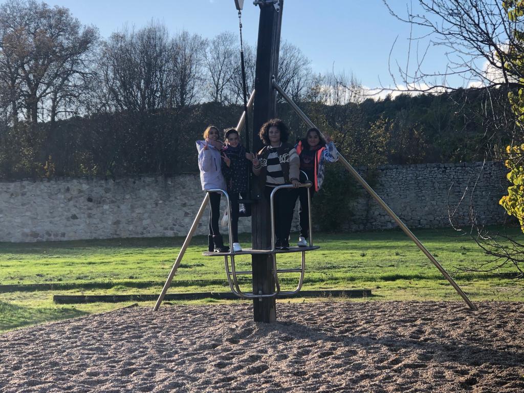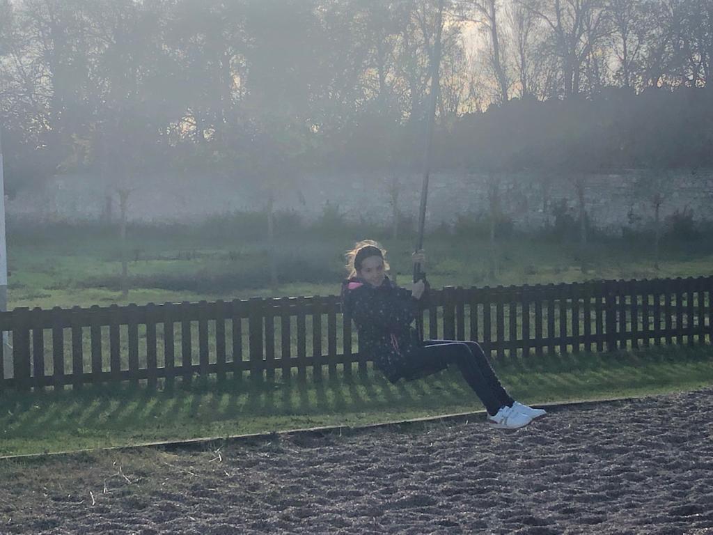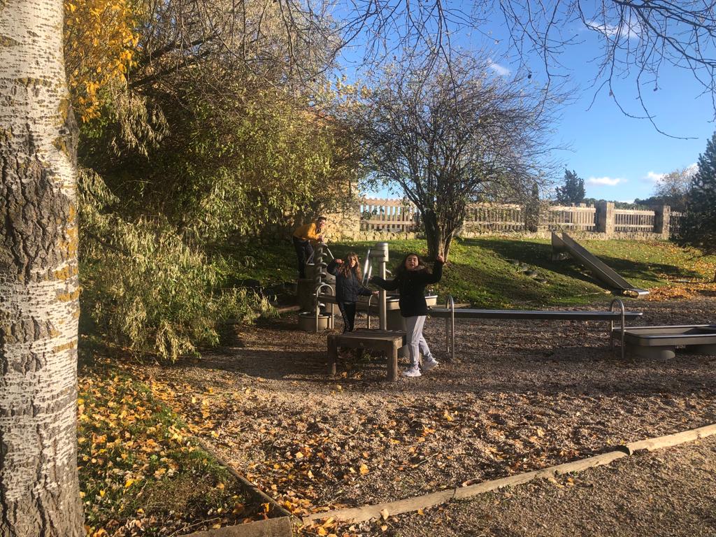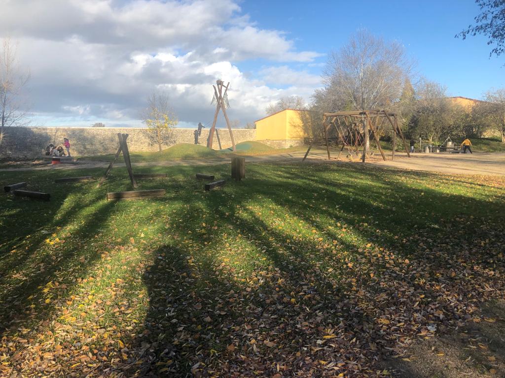 Después de lavarnos los dientes nos vamos a los columpios a disfrutar de la tarde al aire libre. De momento estamos teniendo mucha suerte porque no está lloviendo.